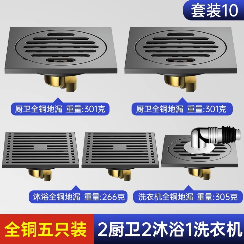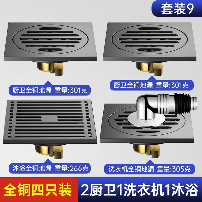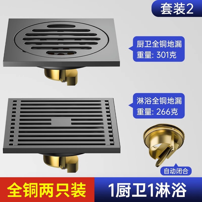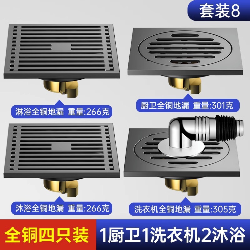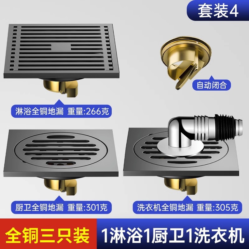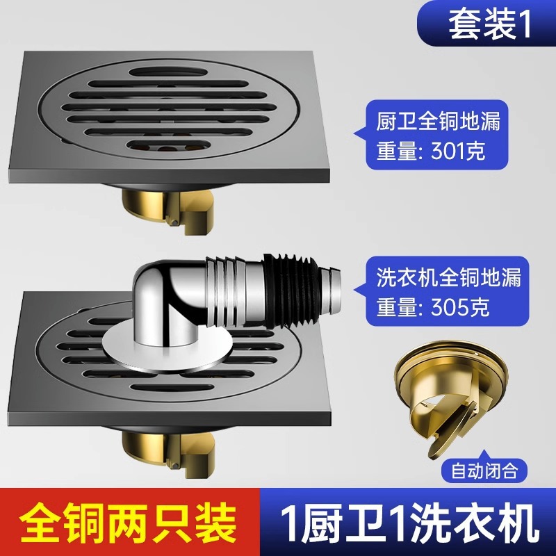 沃尔德浴室长条地漏地流全铜防臭器不锈钢卫生间洗衣机下水二合一