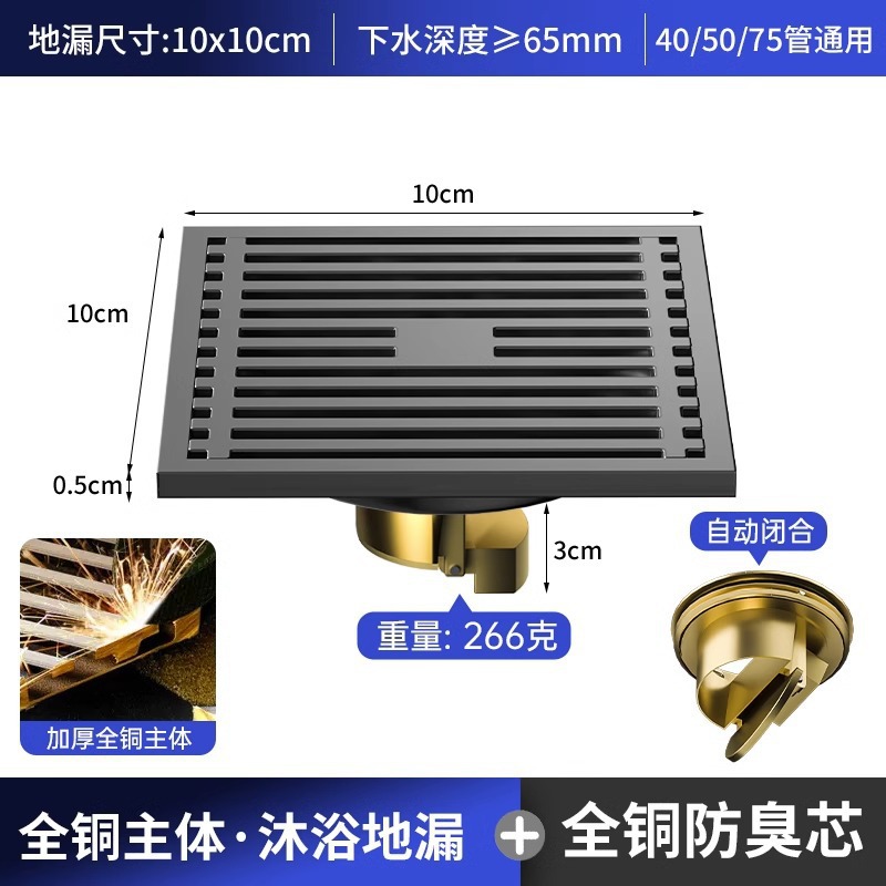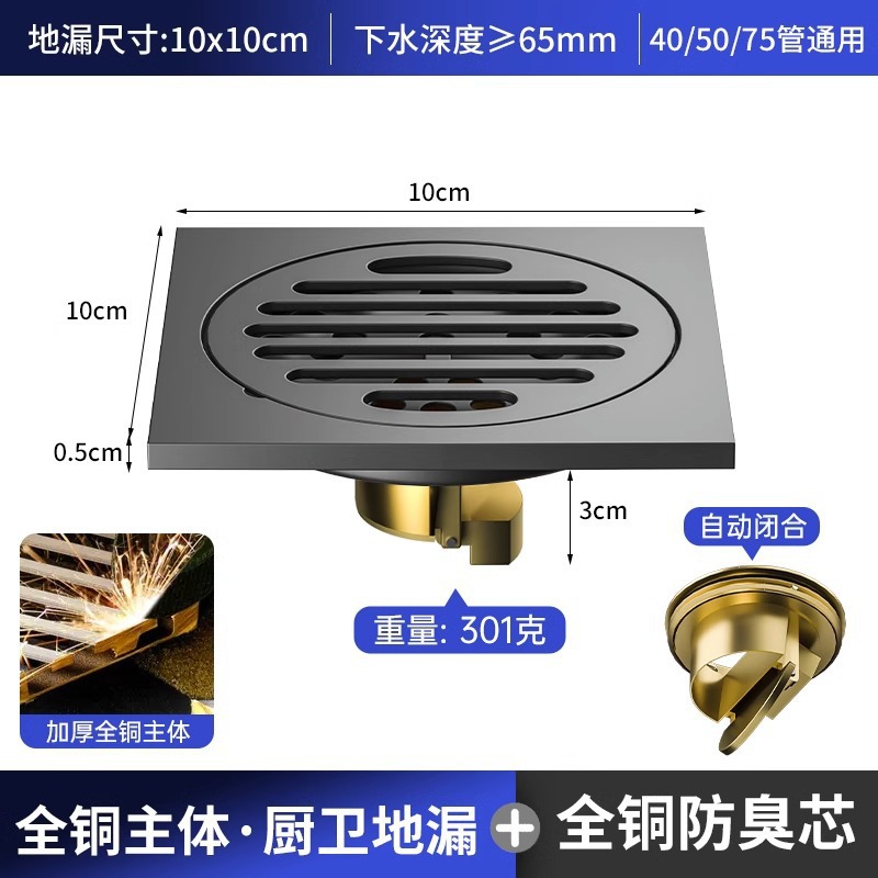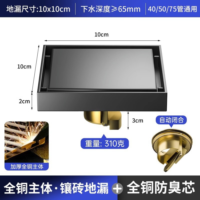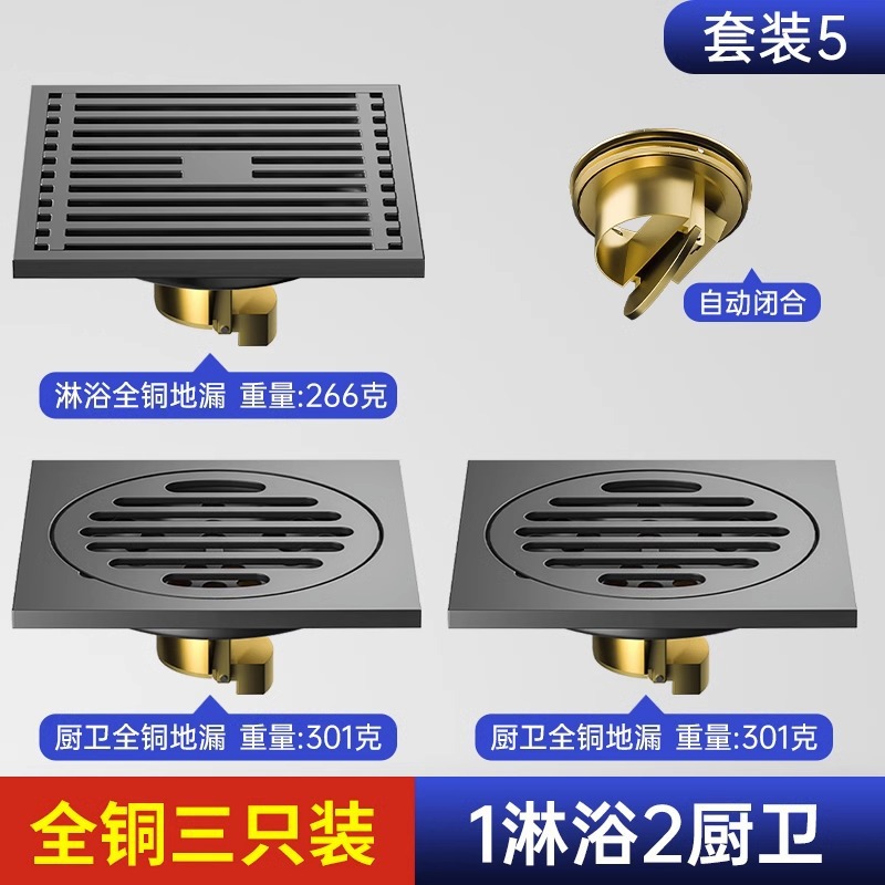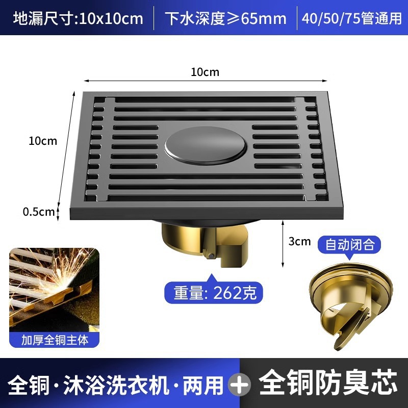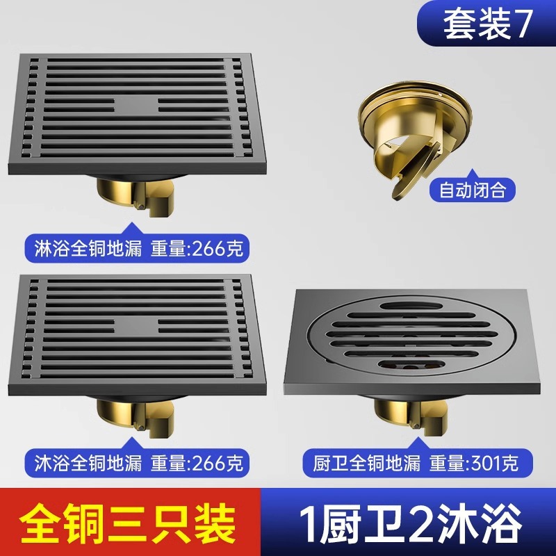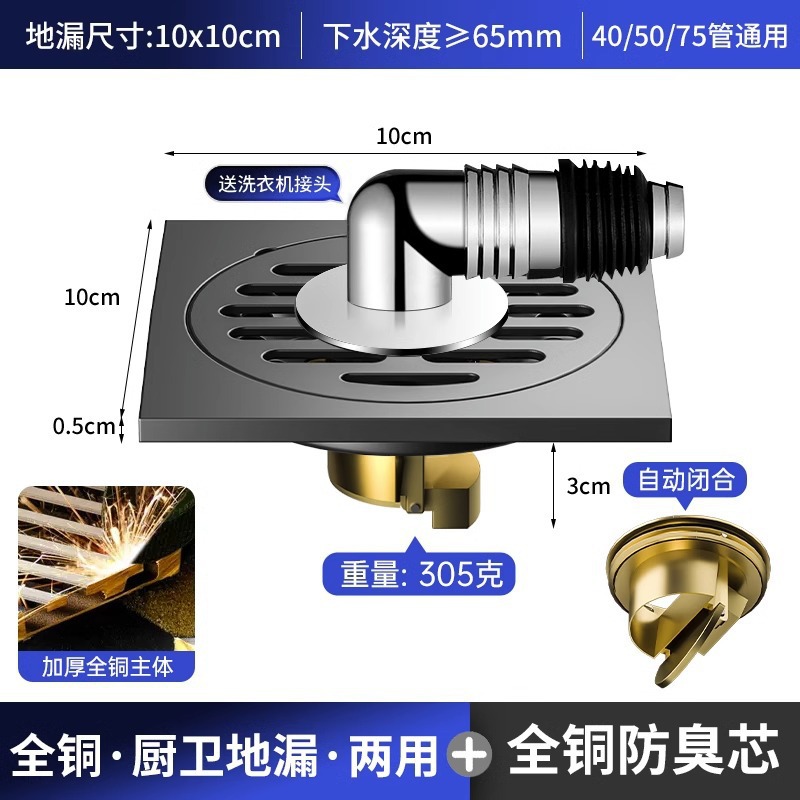 沃尔德浴室长条地漏地流全铜防臭器不锈钢卫生间洗衣机下水二合一