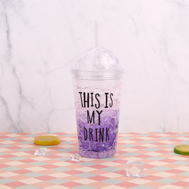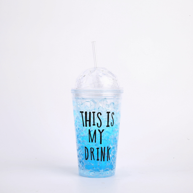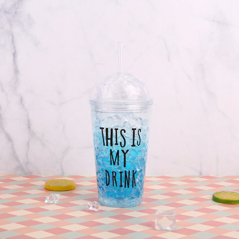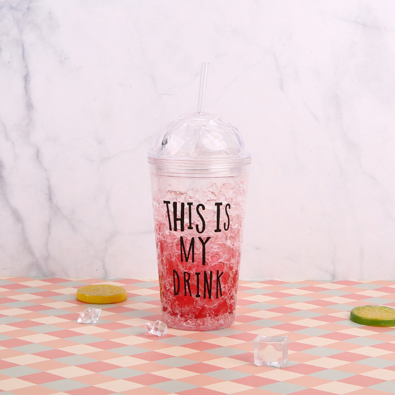 夏日创意冰杯可爱双层吸管塑料水杯学生冷饮随手冰酷杯厂家直供