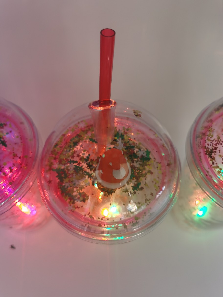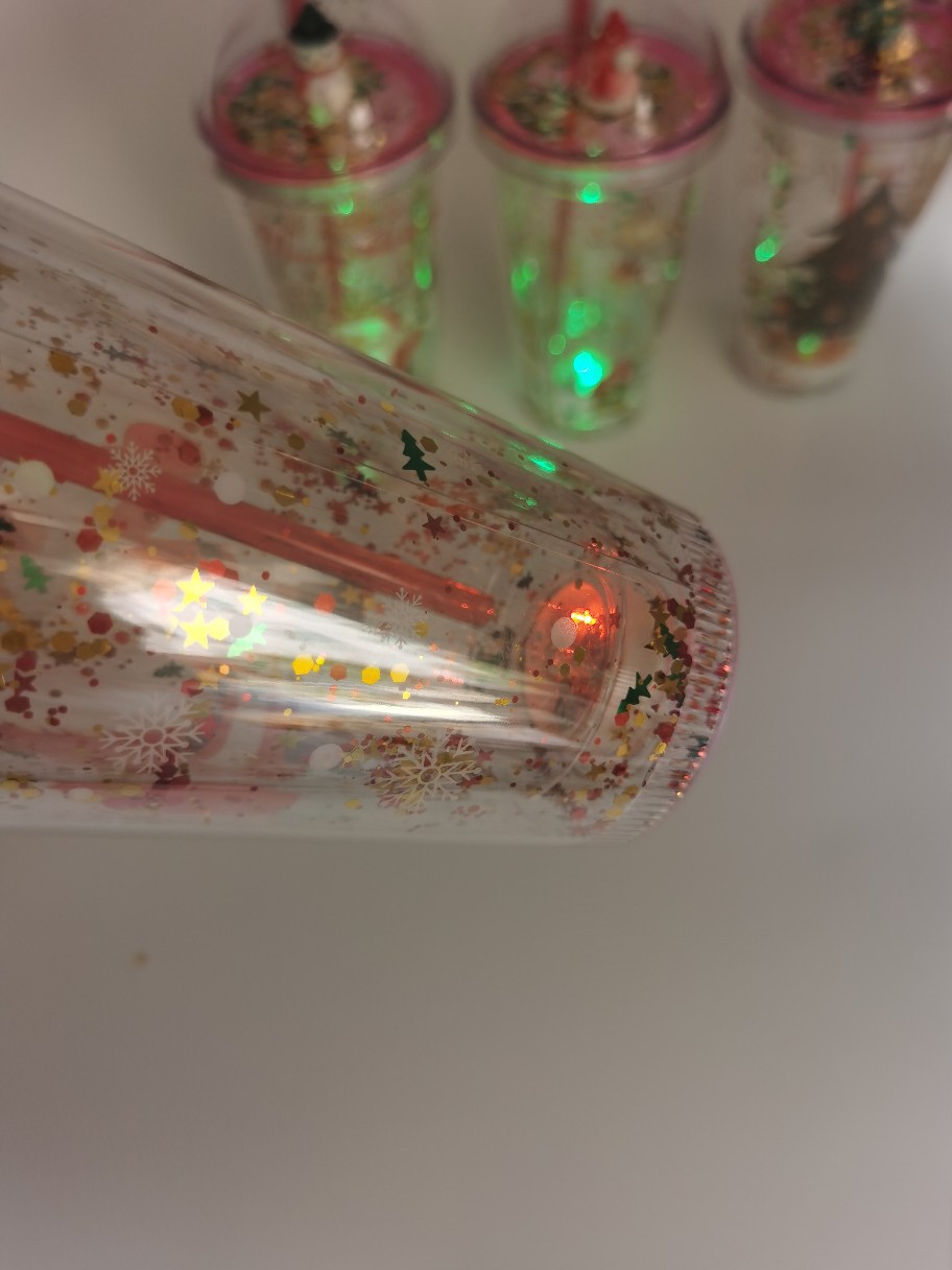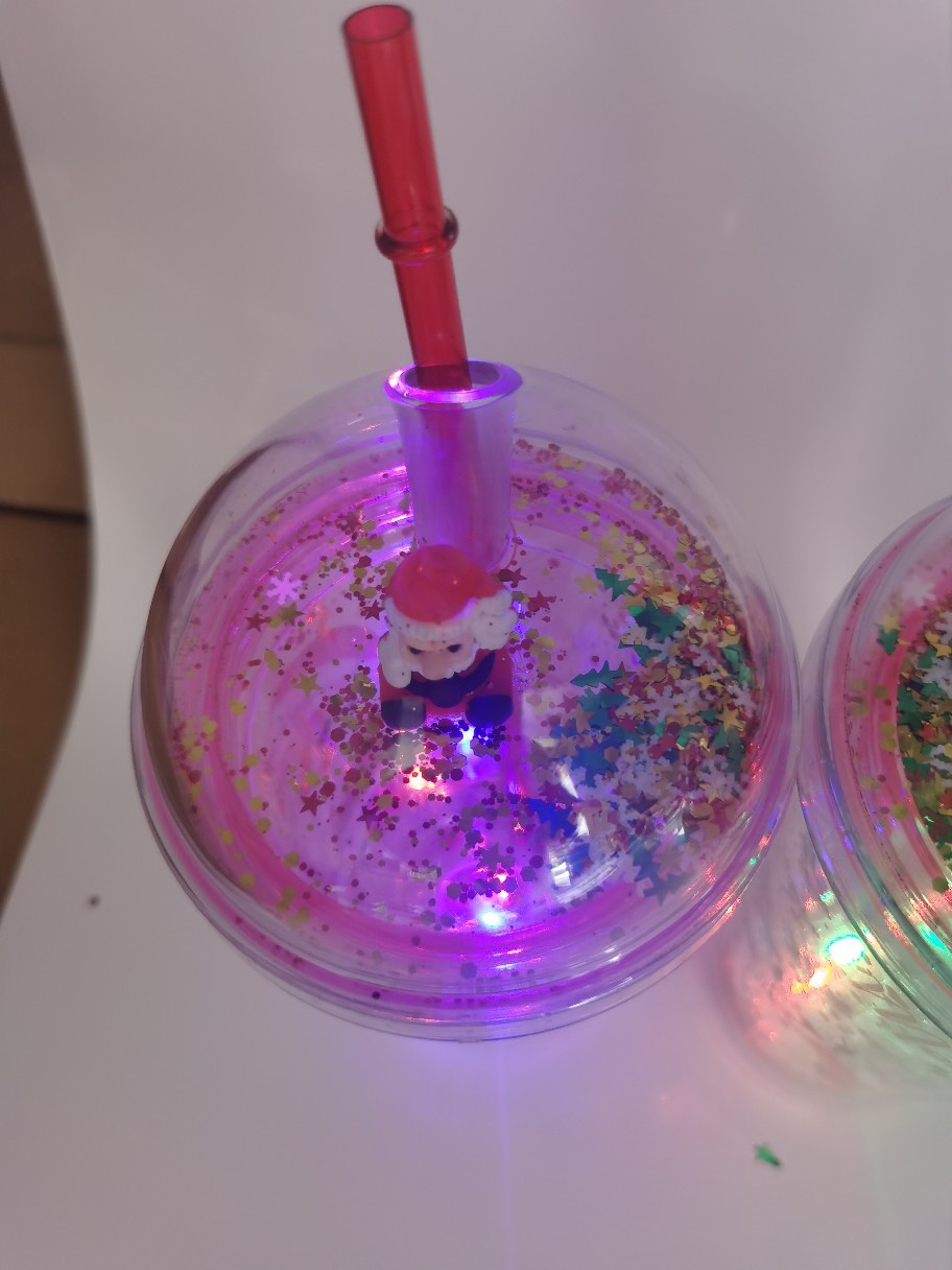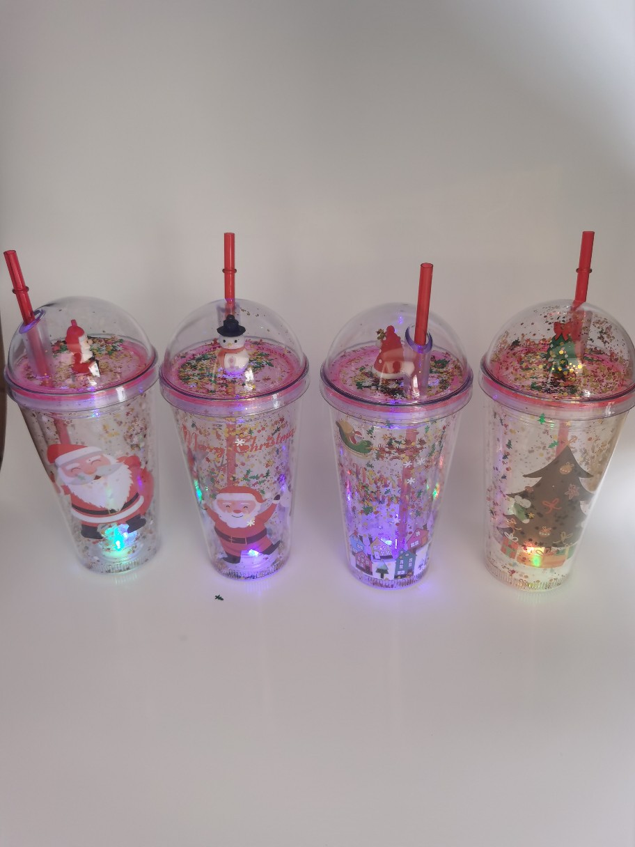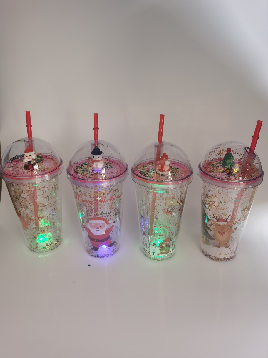 圣诞老人公仔塑料双层吸管杯塑料冰杯冰酷被碎冰杯圣诞塑料灯杯