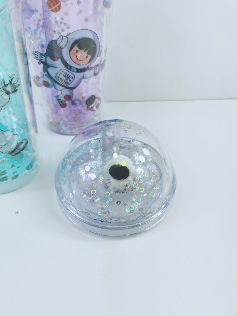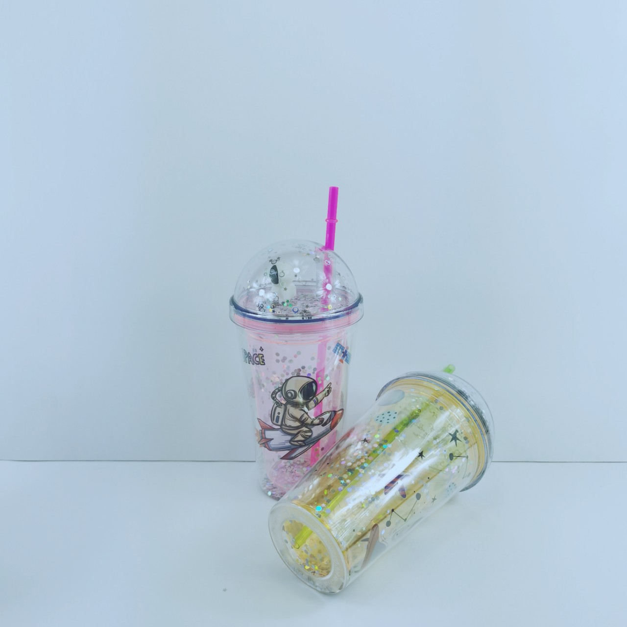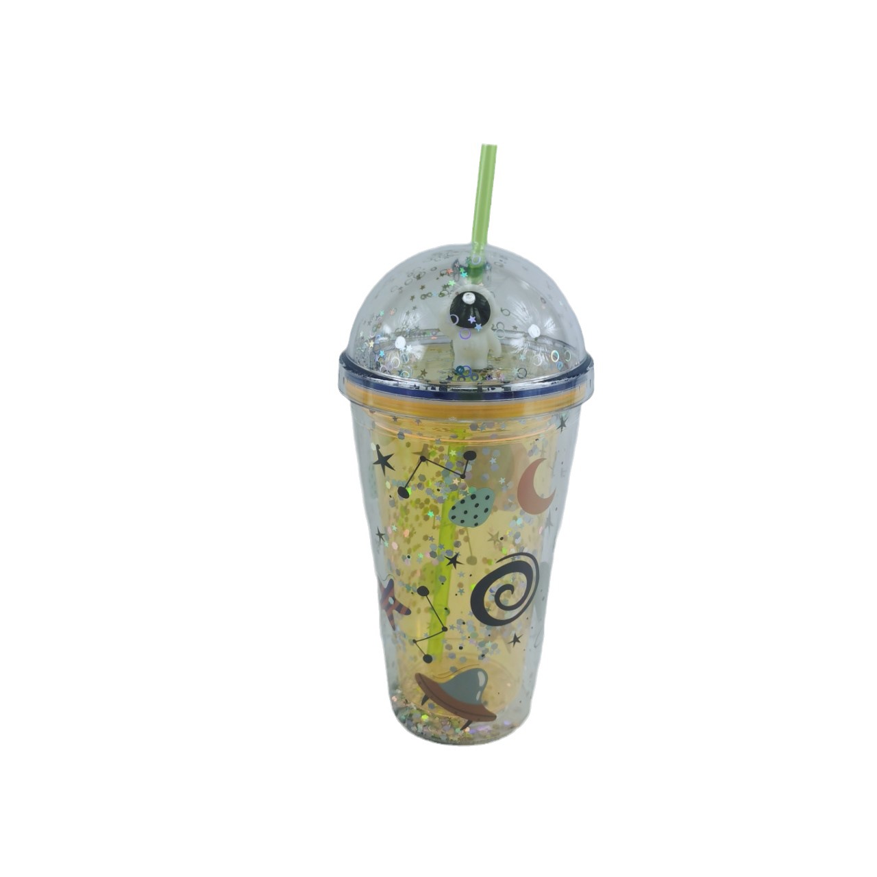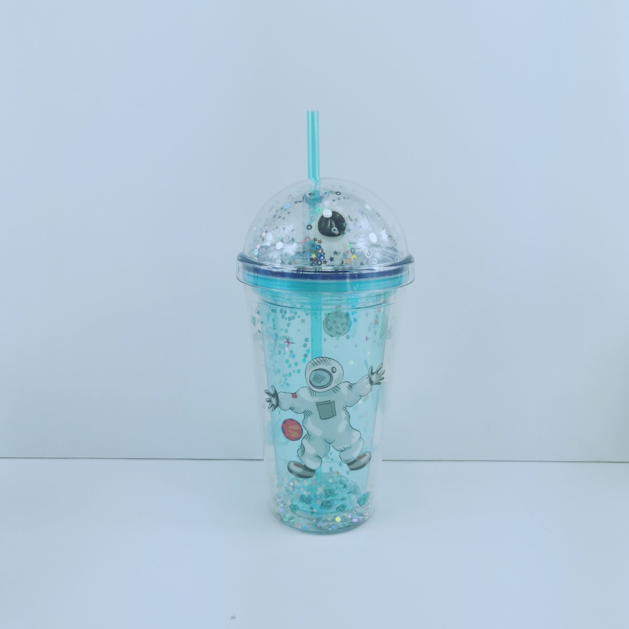 新款太空人双层透明吸管塑料杯卡通宇航员公仔水杯冰杯礼品杯批发