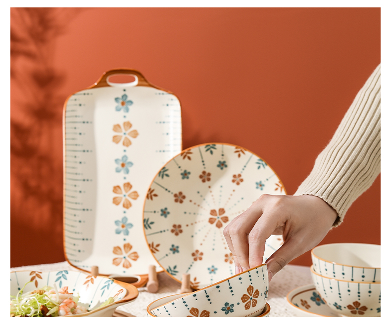 田园风秋意清新陶瓷碗盘套装釉下彩高颜值细砂家用耐高温乔迁餐具