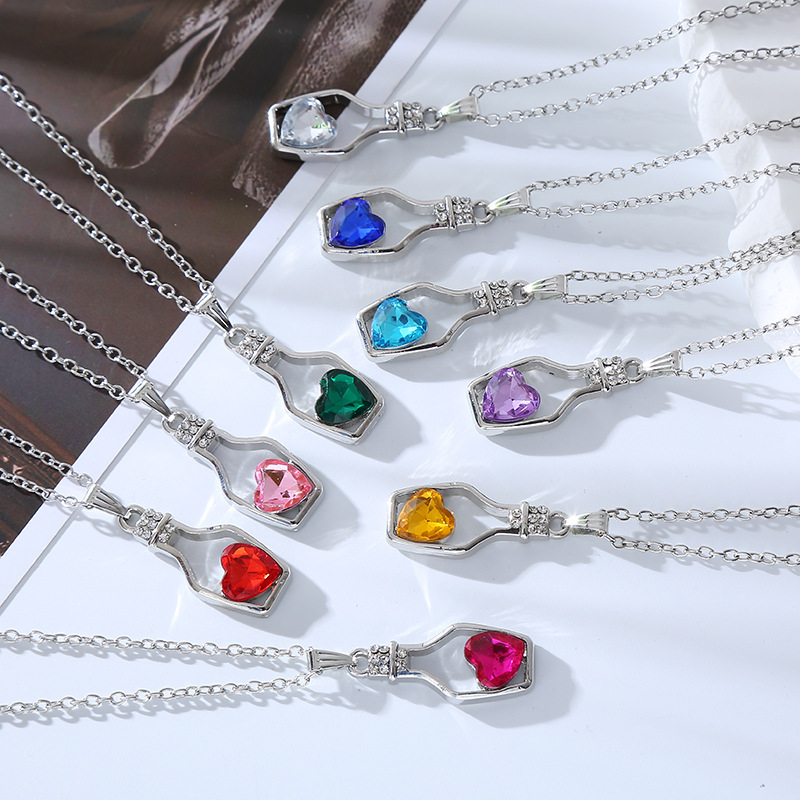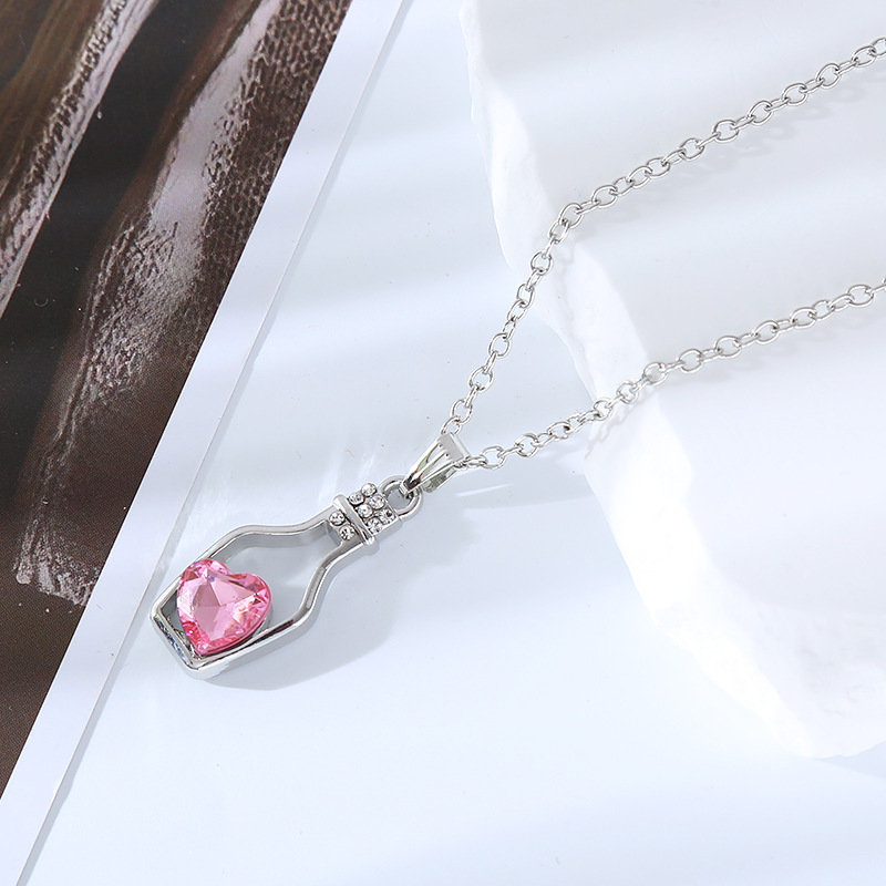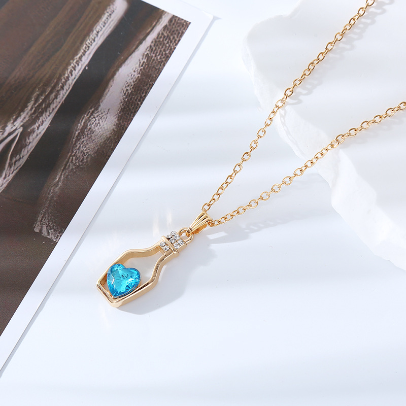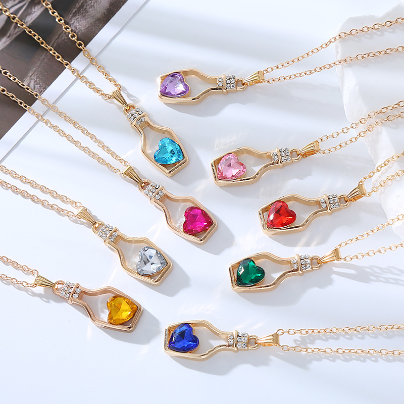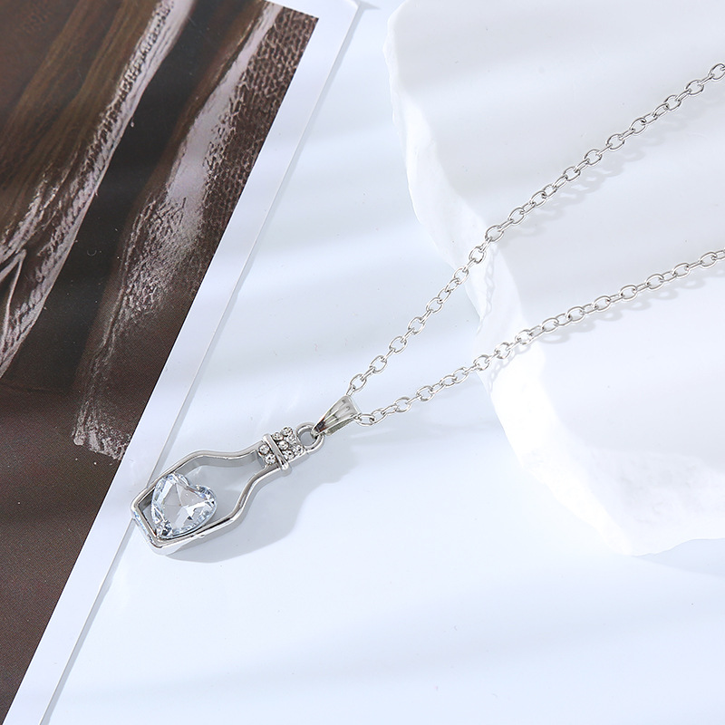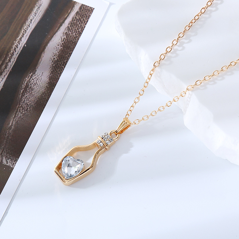 跨境创意时尚流行爱心水晶项链轻奢潮流合金电镀镶钻漂流瓶吊坠女