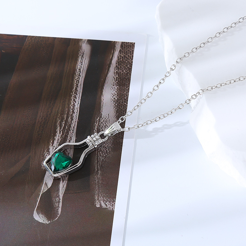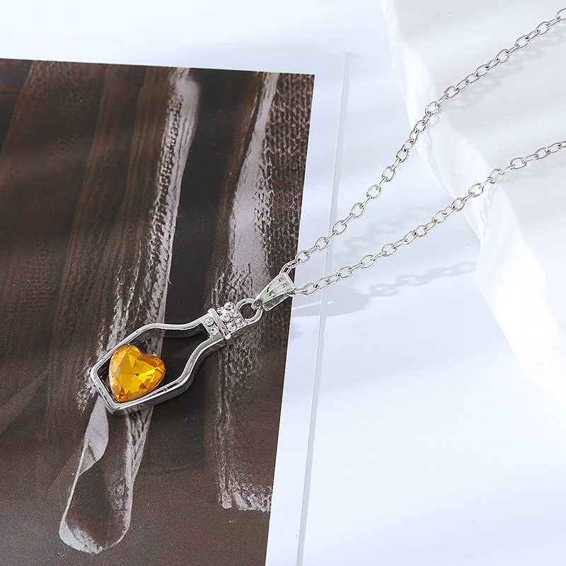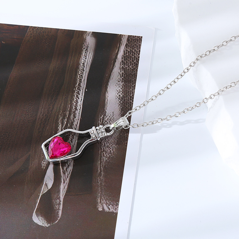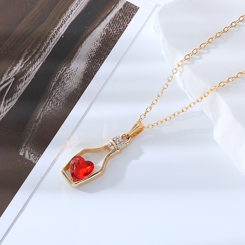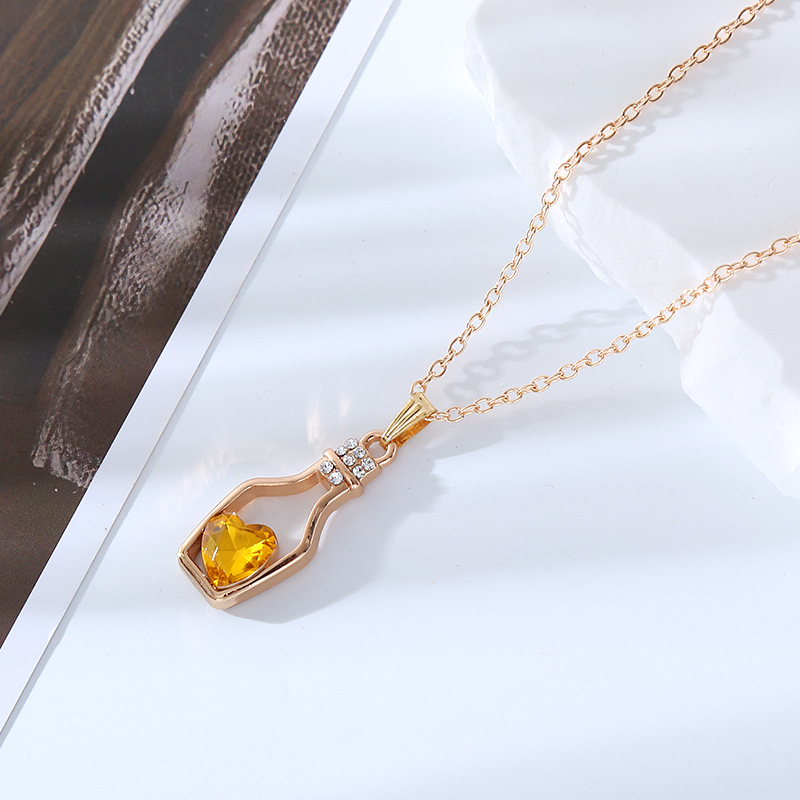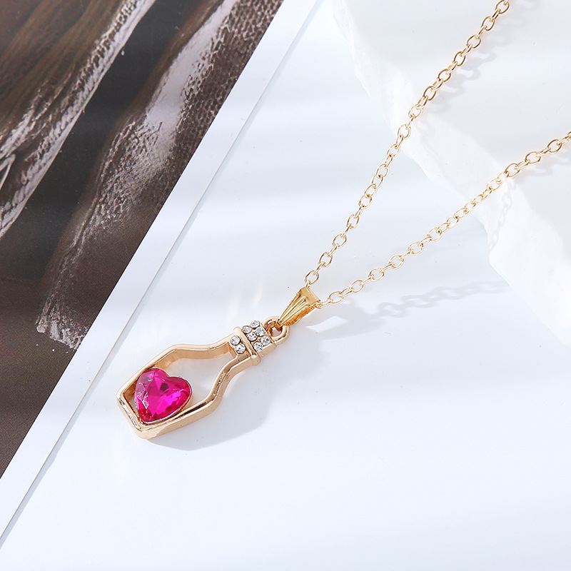跨境创意时尚流行爱心水晶项链轻奢潮流合金电镀镶钻漂流瓶吊坠女