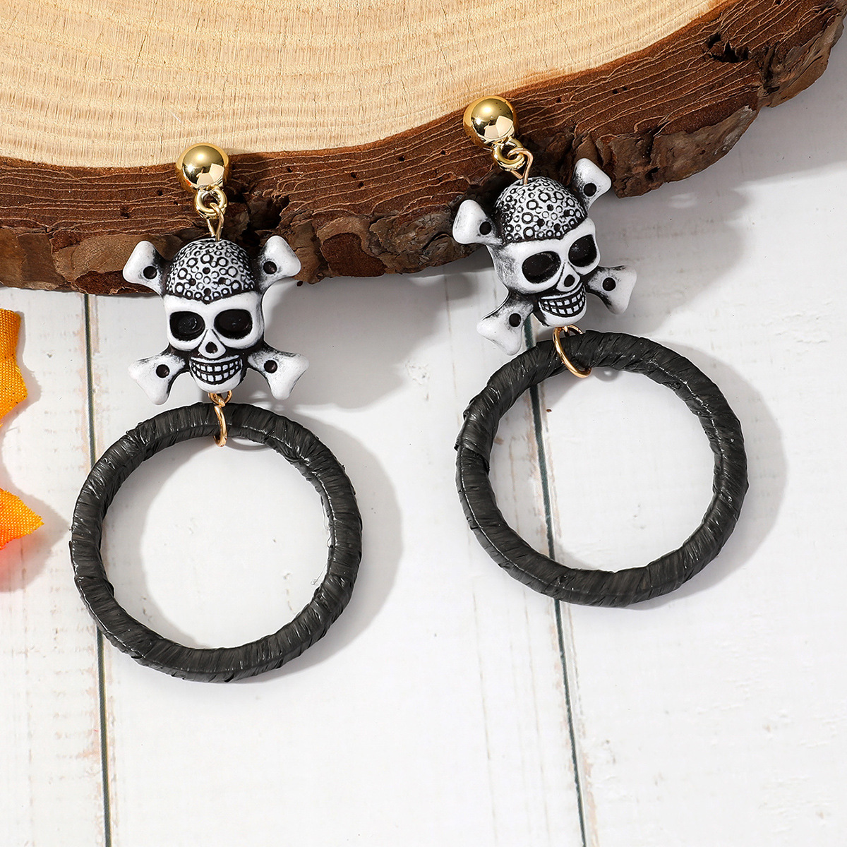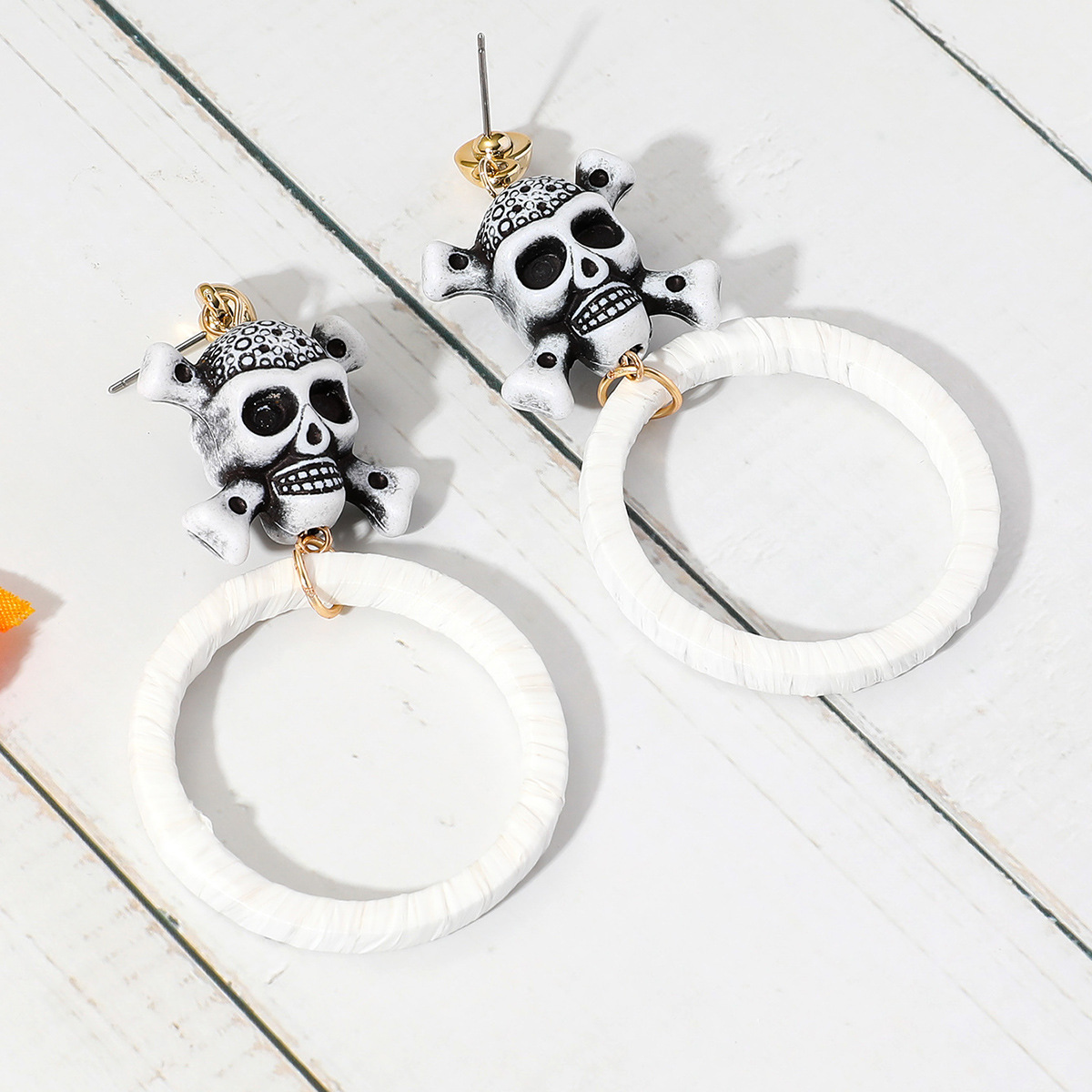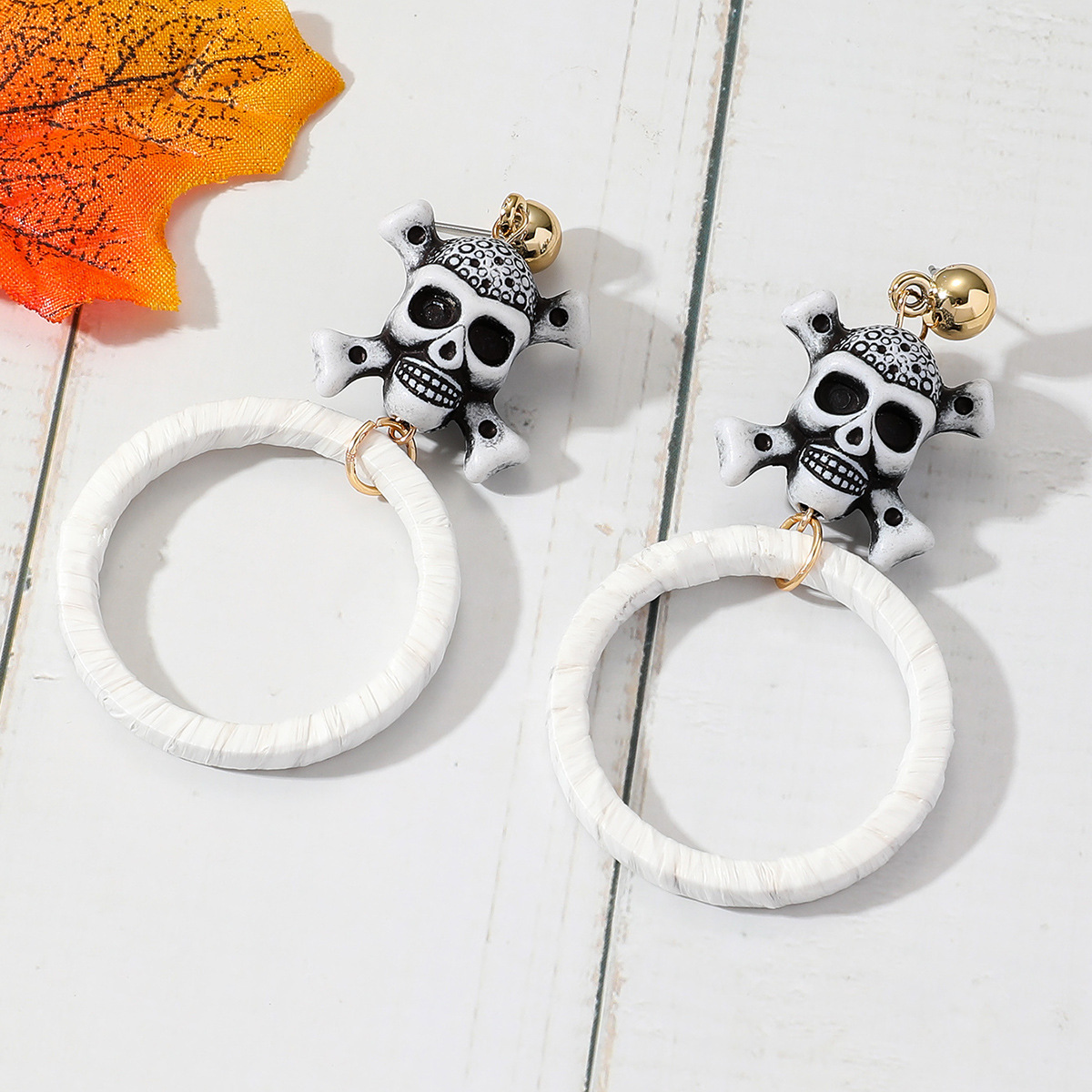 跨境新款骷髅耳环欧美耳饰女时尚圆形耳坠万圣节派对风格饰品批发