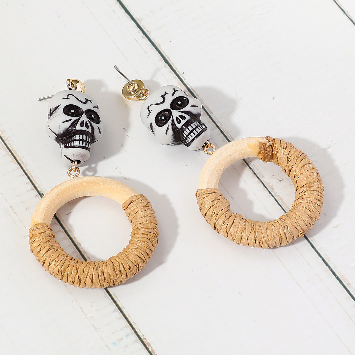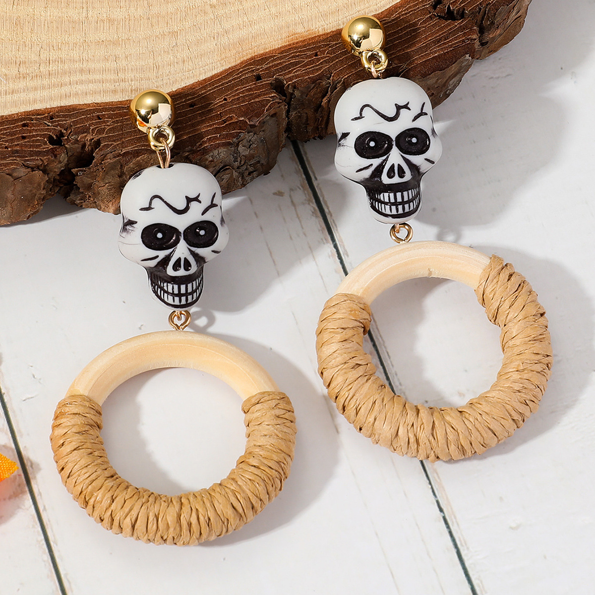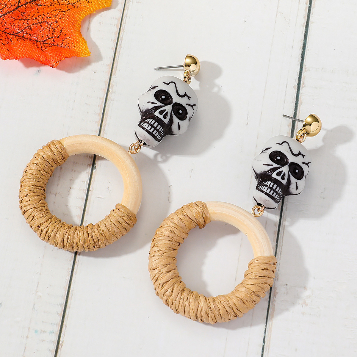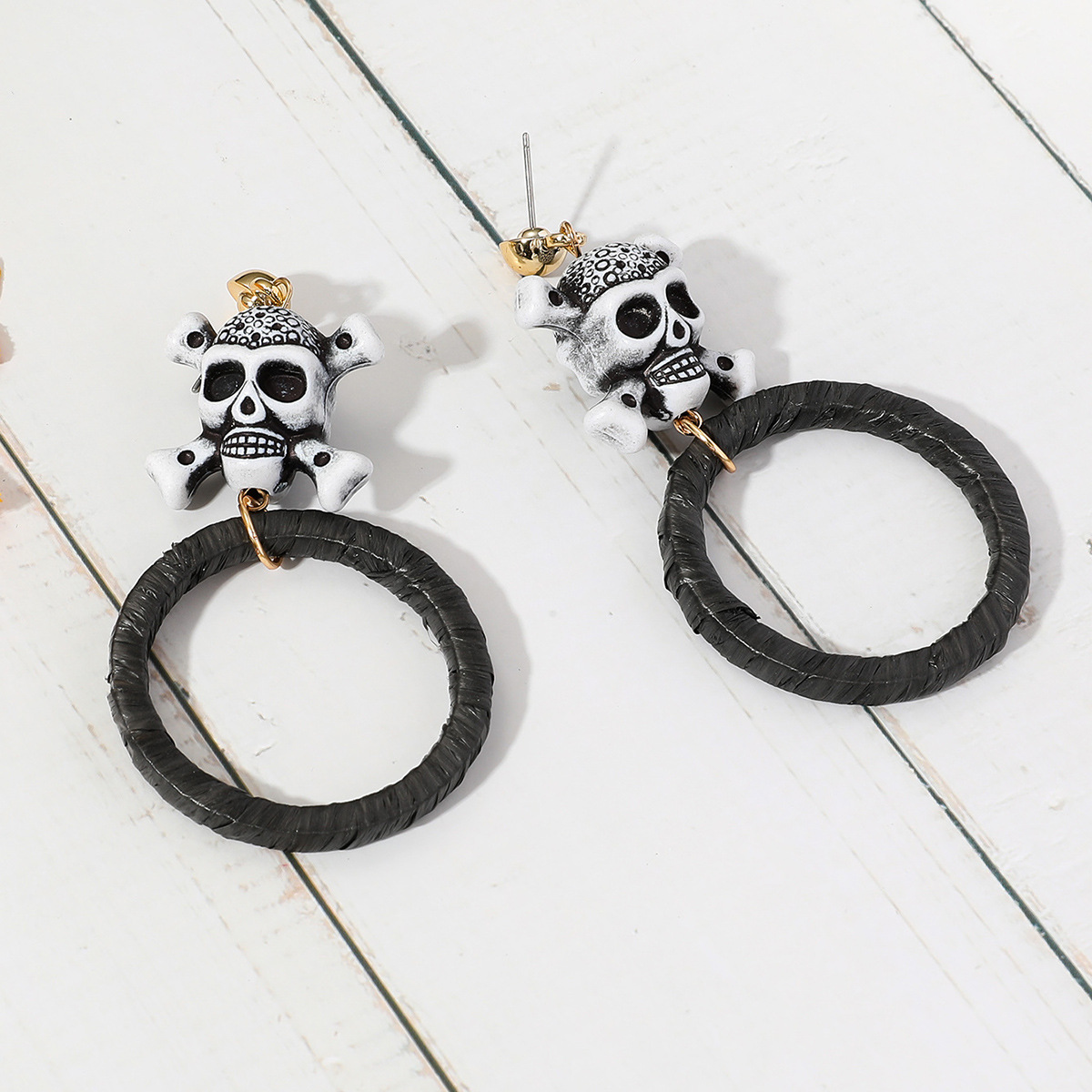 跨境新款骷髅耳环欧美耳饰女时尚圆形耳坠万圣节派对风格饰品批发