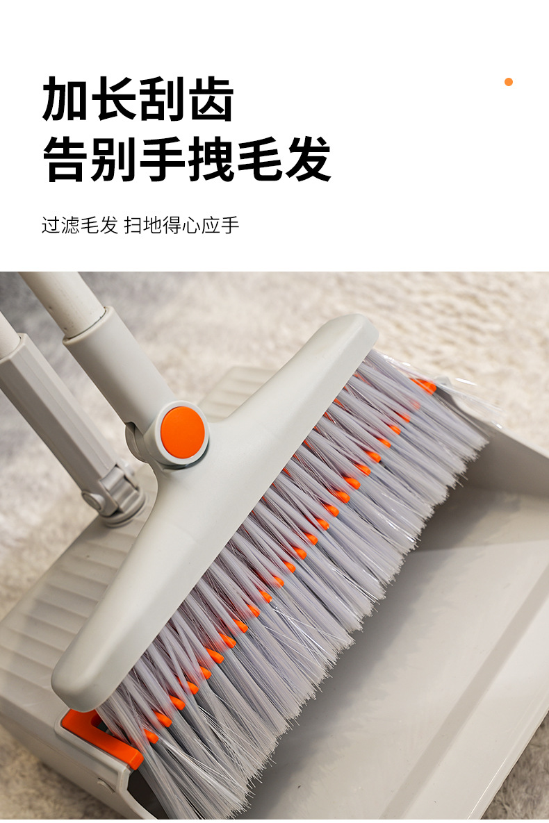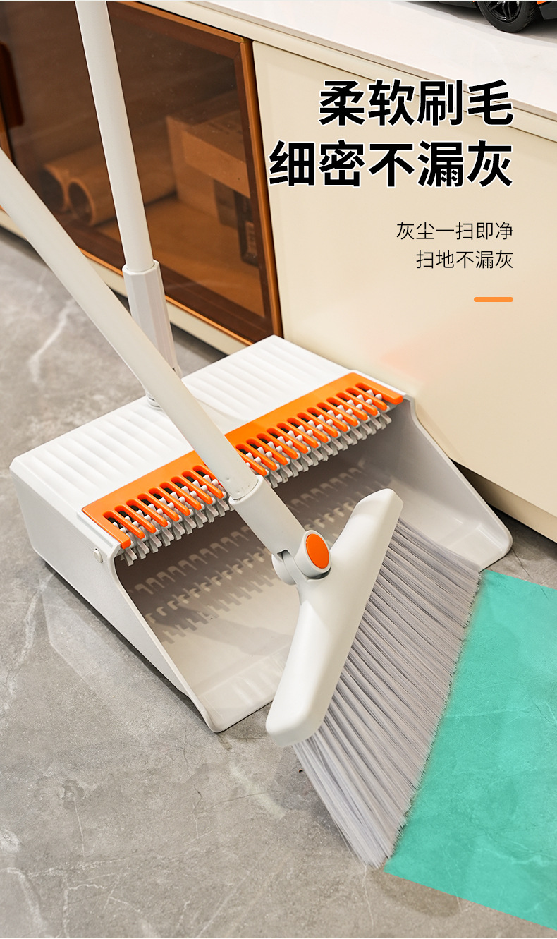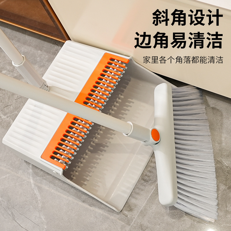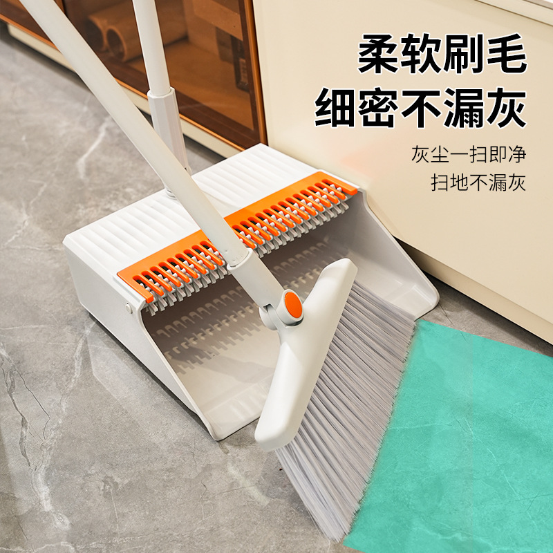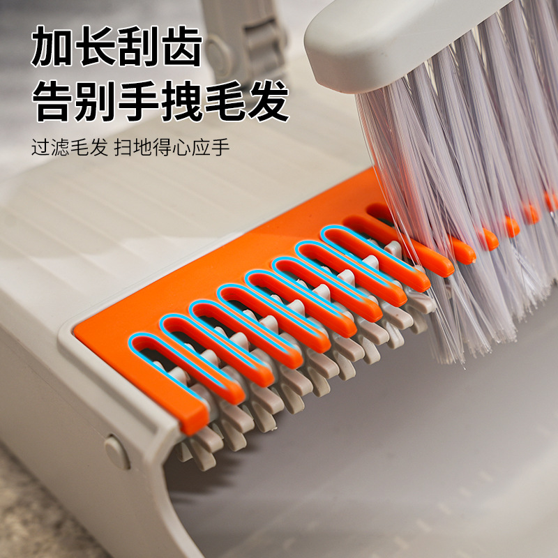 家用扫把簸箕套装滚轮刮齿折叠撮箕可旋转软毛扫把畚斗组合两件套
