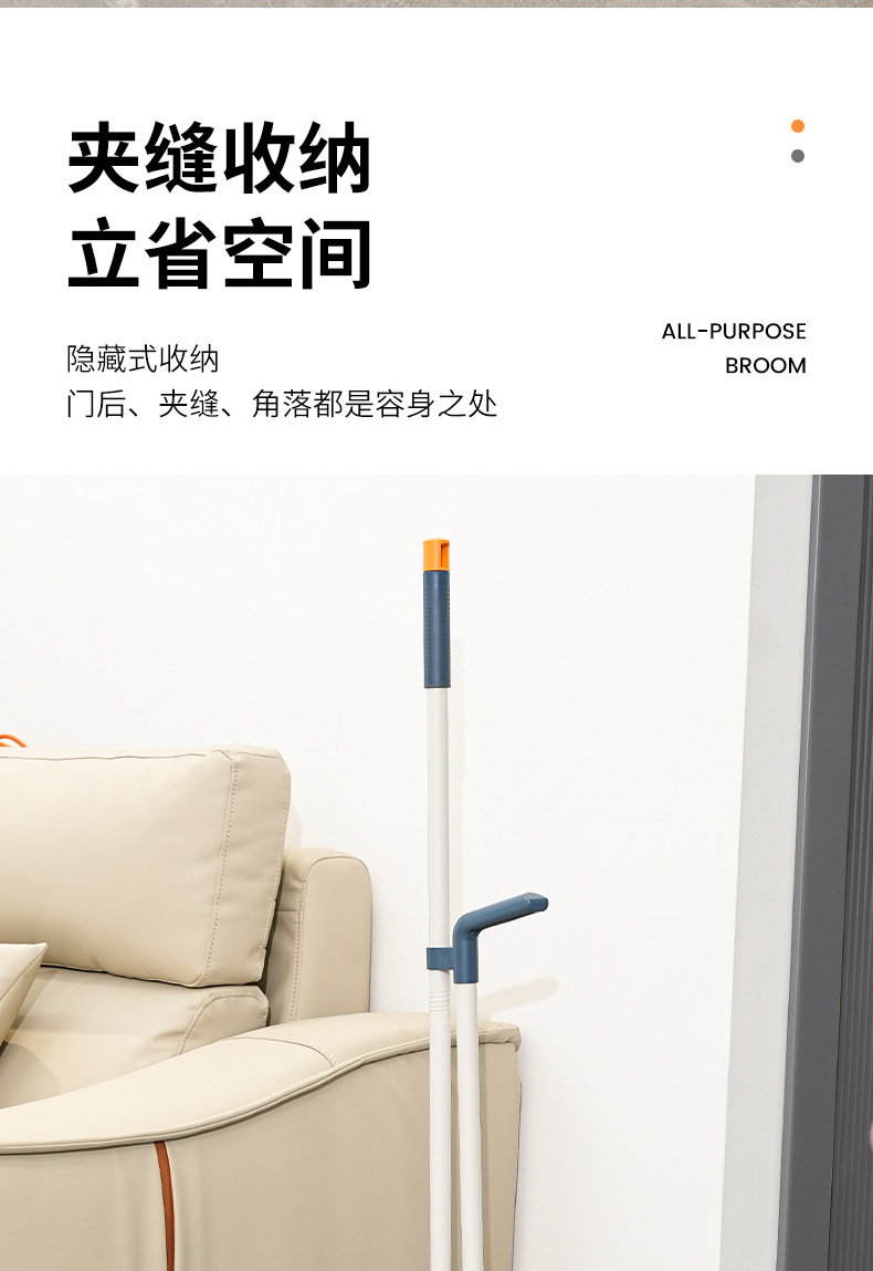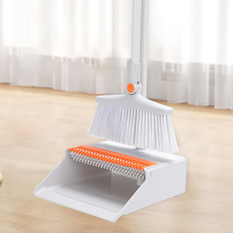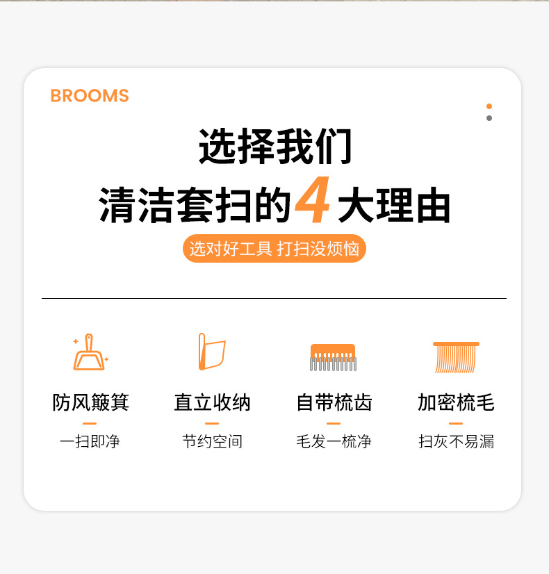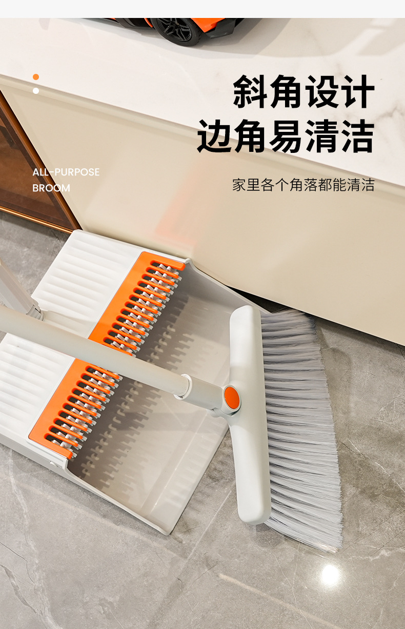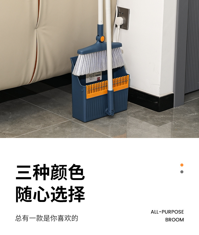 家用扫把簸箕套装滚轮刮齿折叠撮箕可旋转软毛扫把畚斗组合两件套