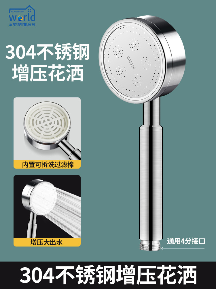 304不锈钢增压淋浴花洒喷头洗澡水龙头浴室淋雨沐浴霸加压莲蓬头