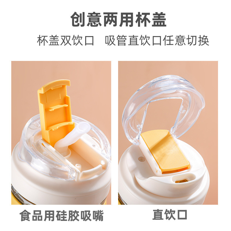 新款双饮玻璃杯大容量可爱时尚网红创意咖啡便携吸管高颜值水杯