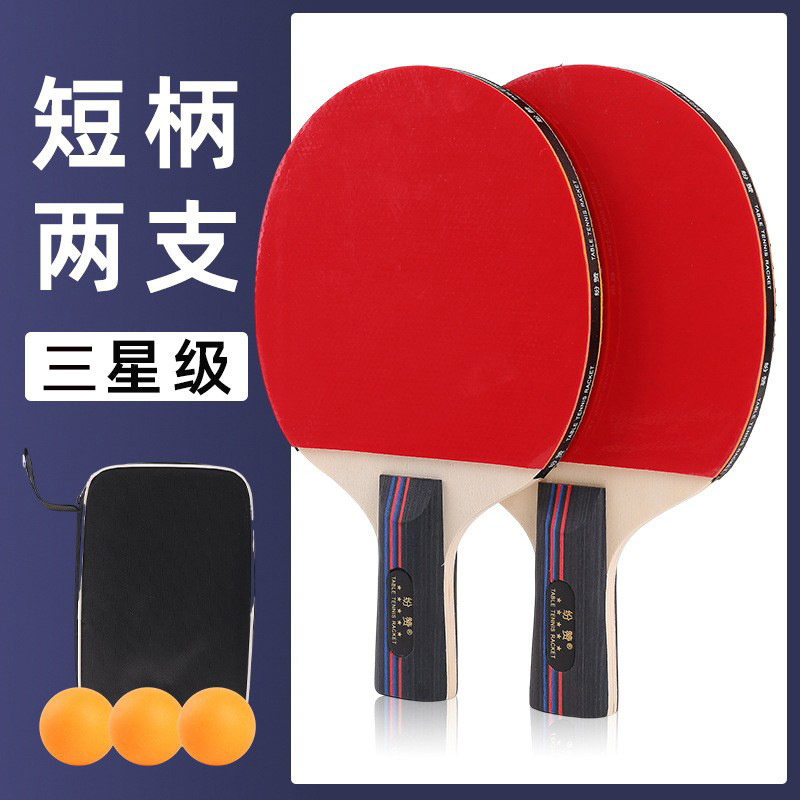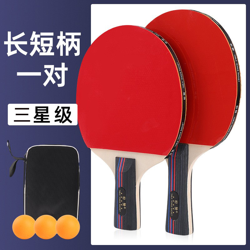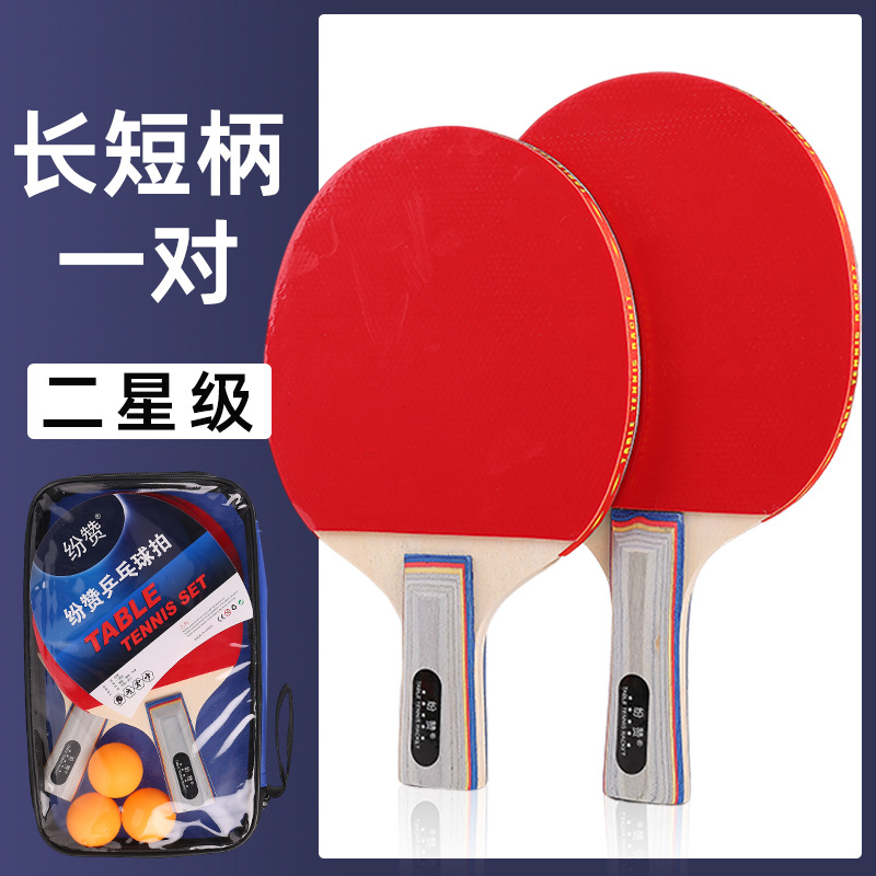 正品三四星级乒乓球拍套装初学者学生训练横拍直拍高弹力乒乓球拍