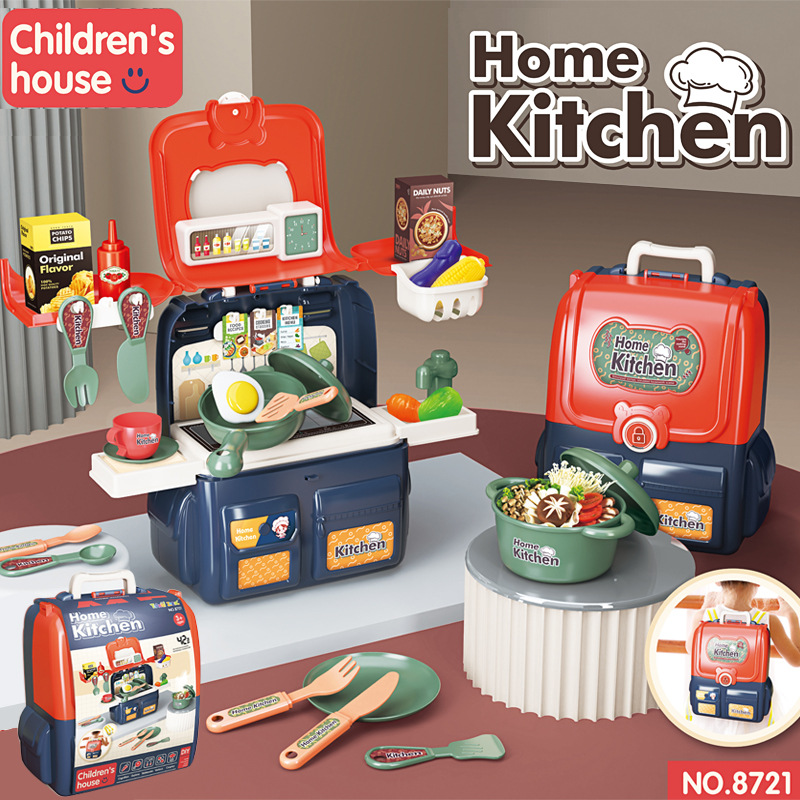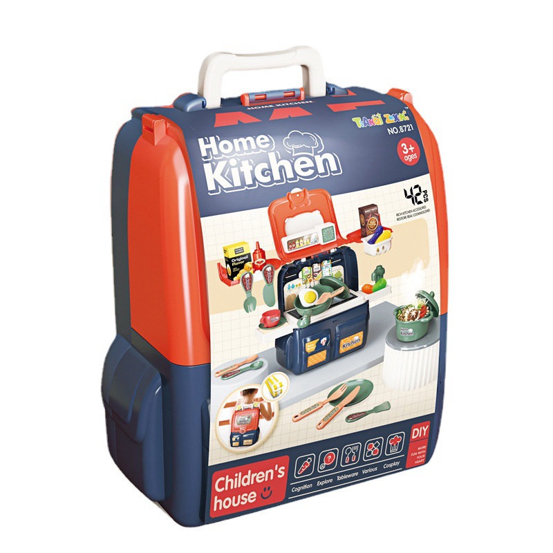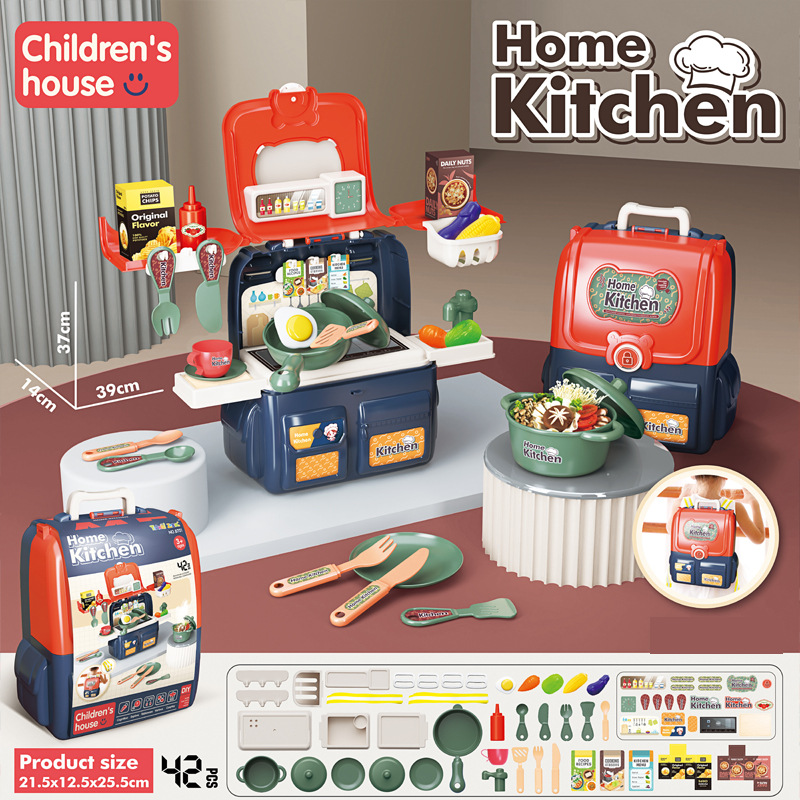 跨境儿童背包男女孩学生便携式书包餐具厨房煮饭锅餐台过家家玩具