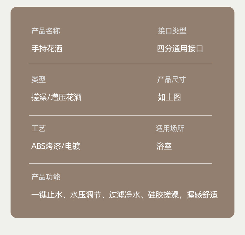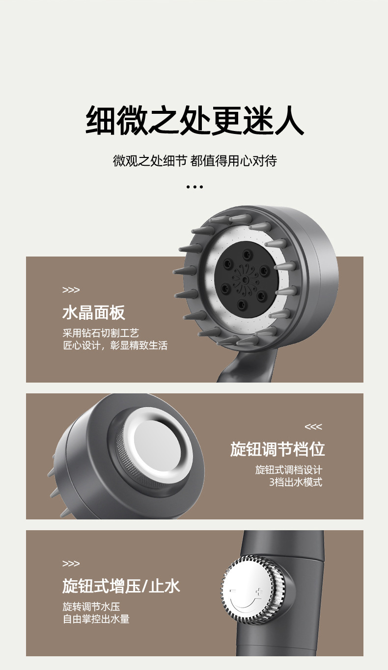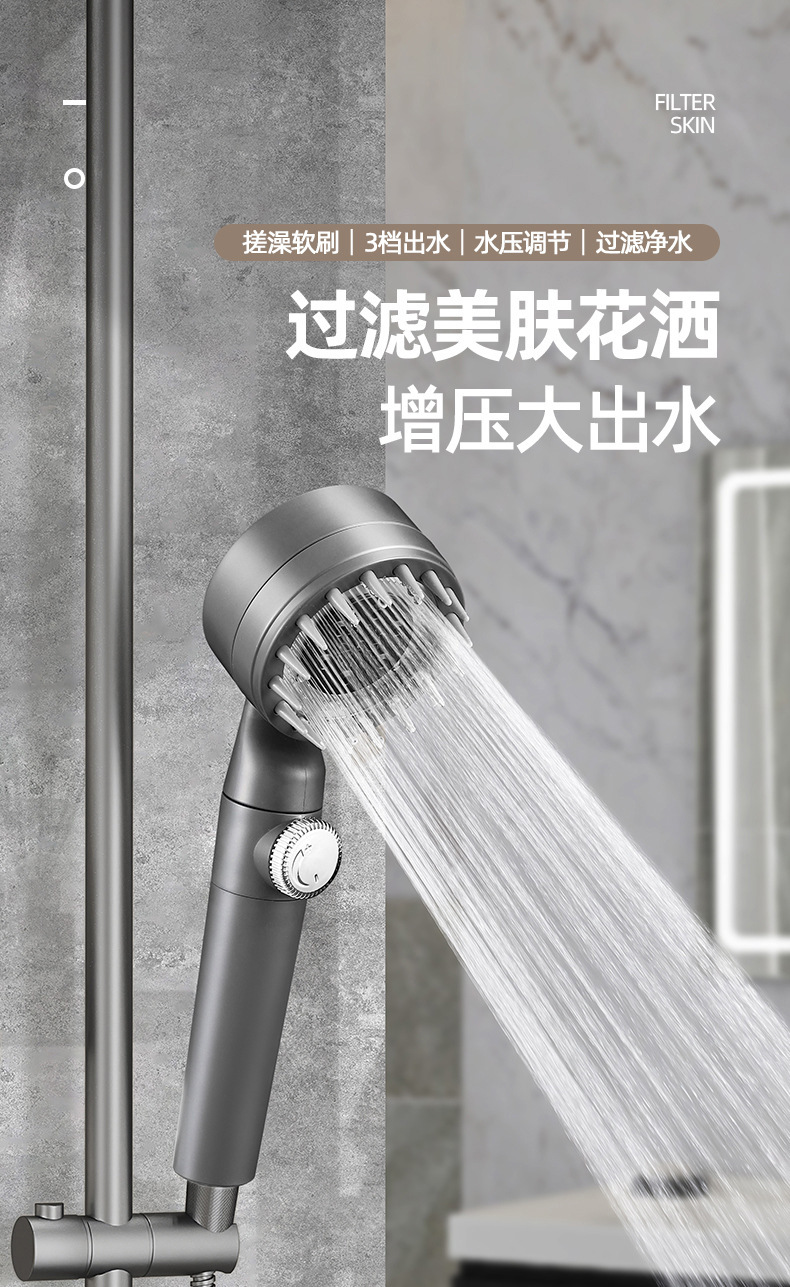 戴喷增压搓澡花洒手持淋浴花洒喷头硅胶搓澡淋雨套装调压止水花洒