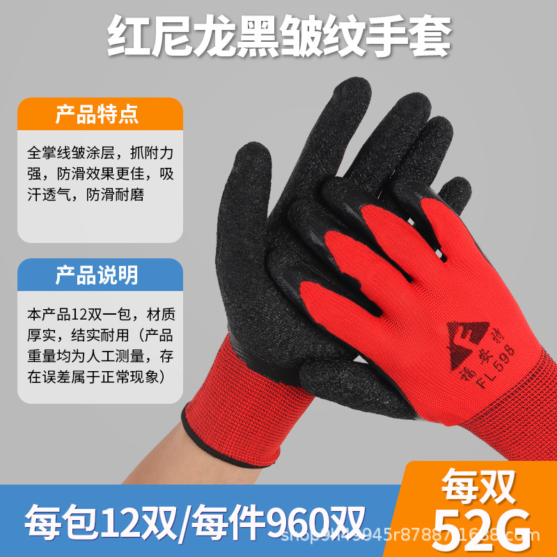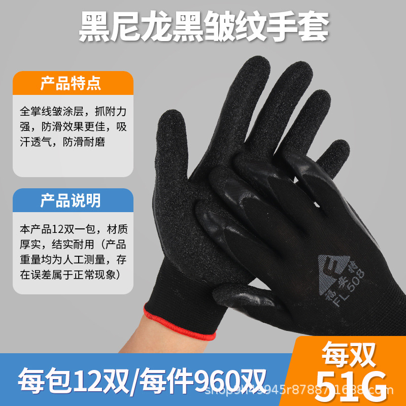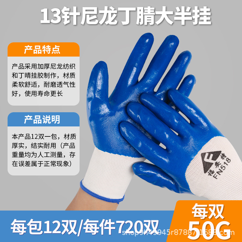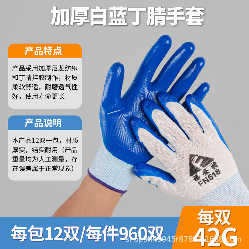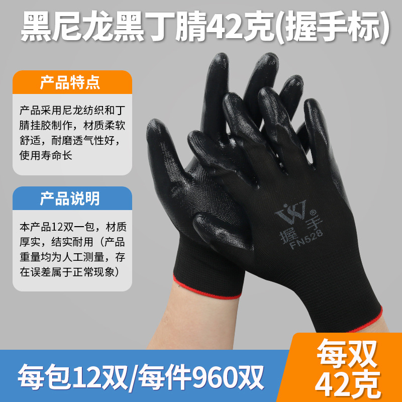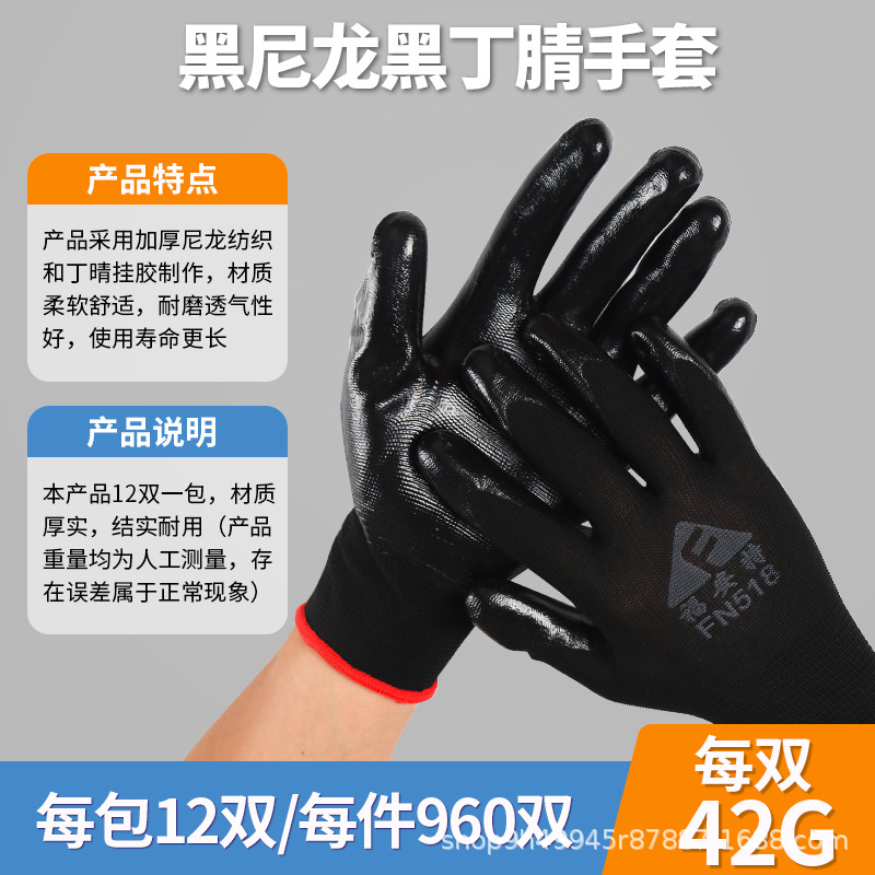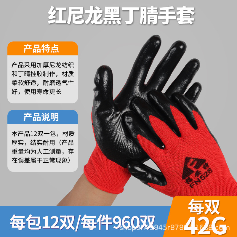 劳保手套丁腈丁晴浸胶手套干活加厚防滑耐磨尼龙挂胶防护手套批发