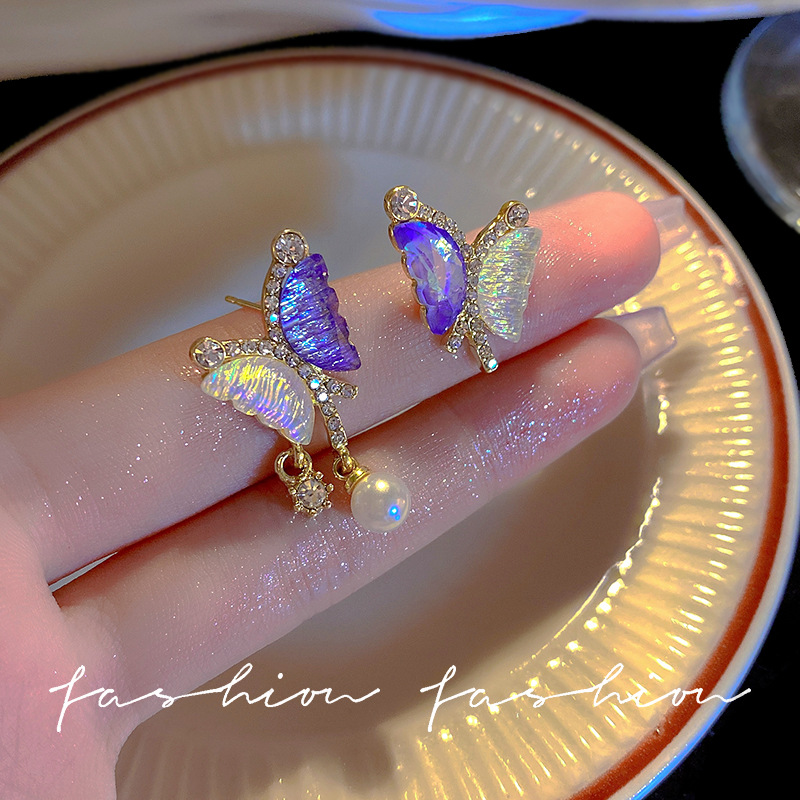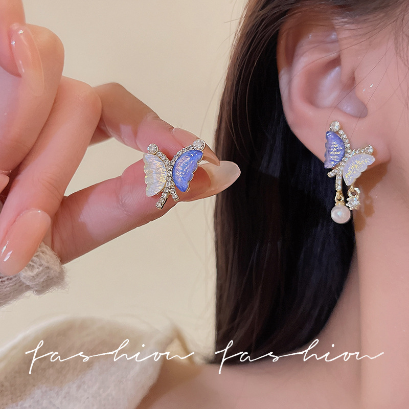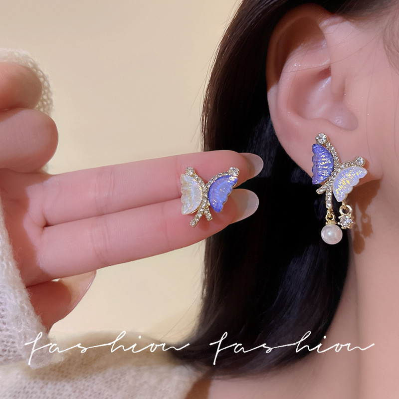 小众设计不对称珍珠蝴蝶耳环女ins潮高级感耳钉2023年新款耳饰品