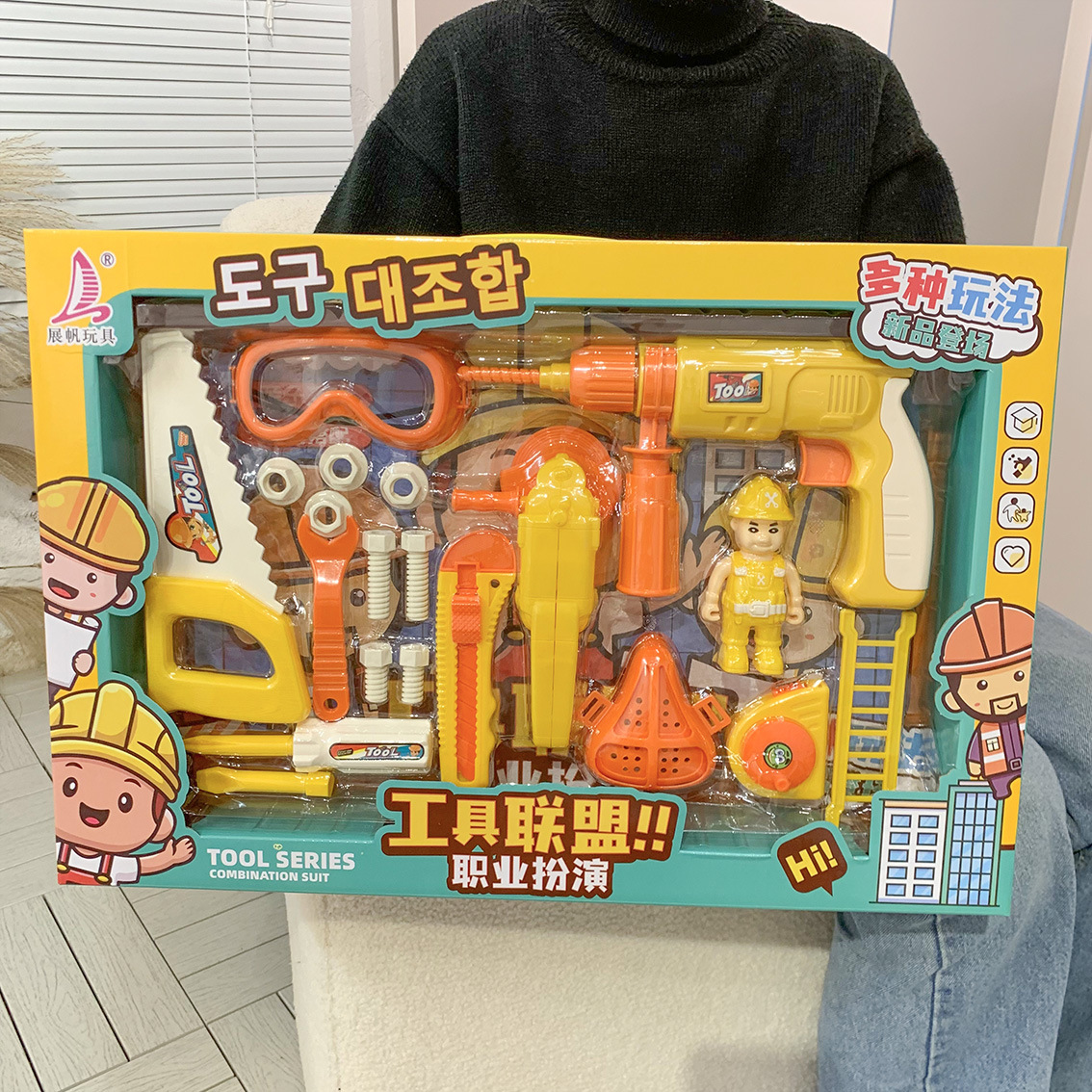 儿童男孩大号电动小电钻工具箱套装礼盒护目镜扳手过家家 玩具批