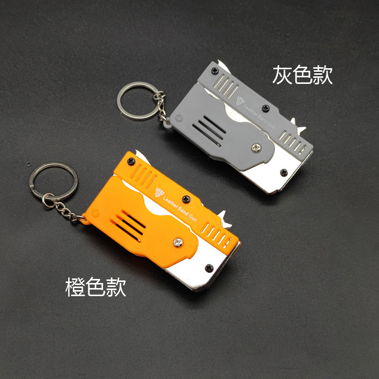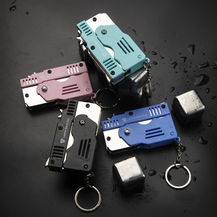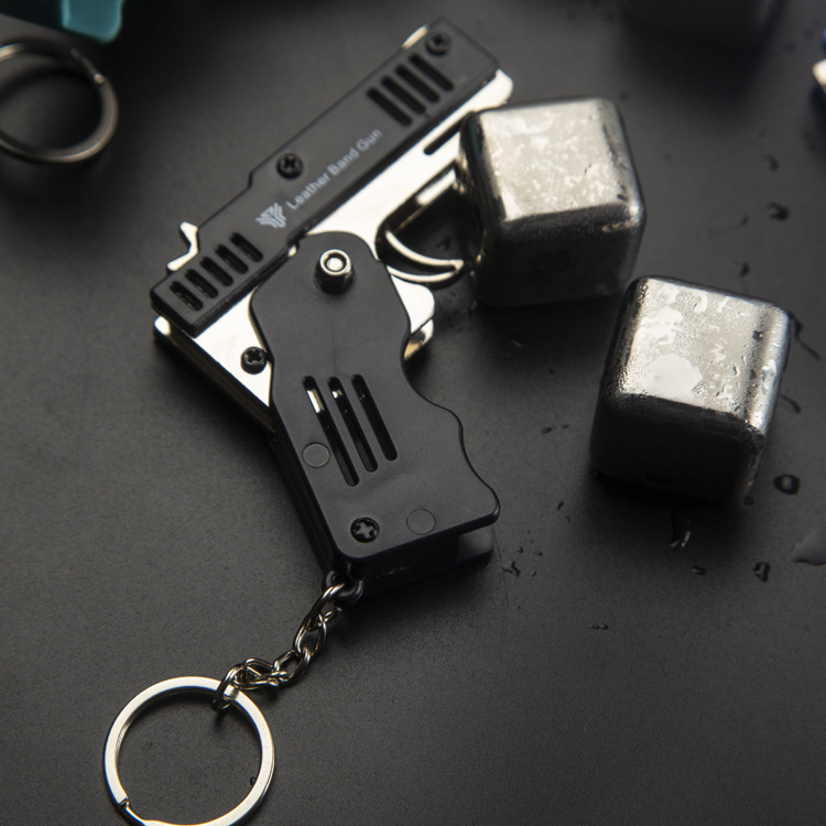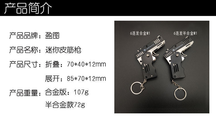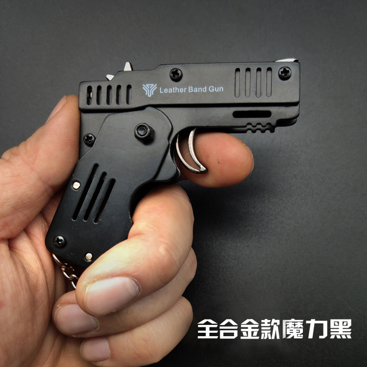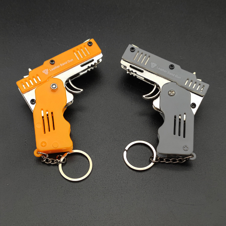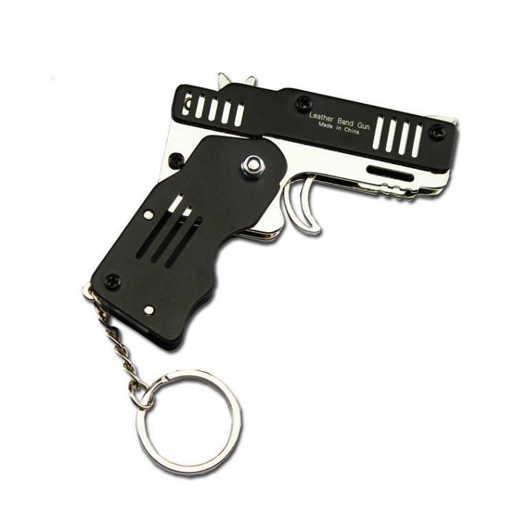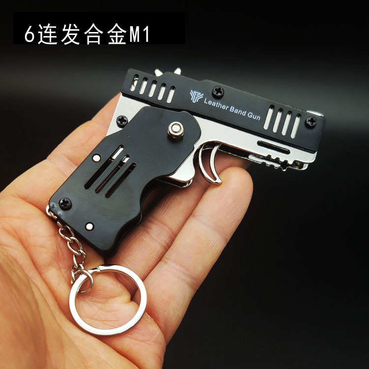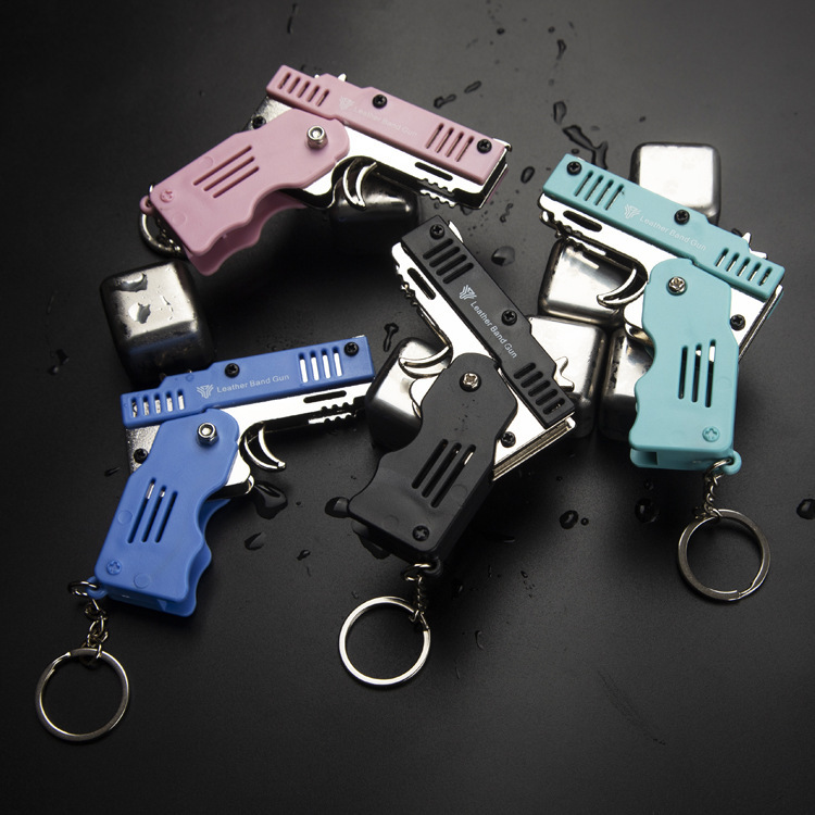折叠全金属迷你折叠钥匙扣皮筋枪儿童礼物六连发打皮筋玩具手枪