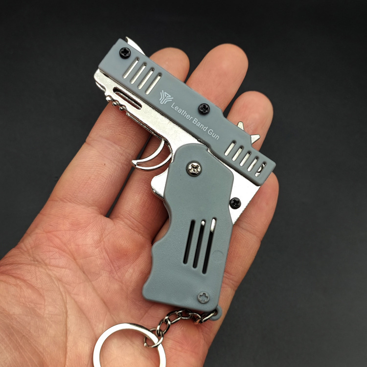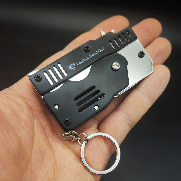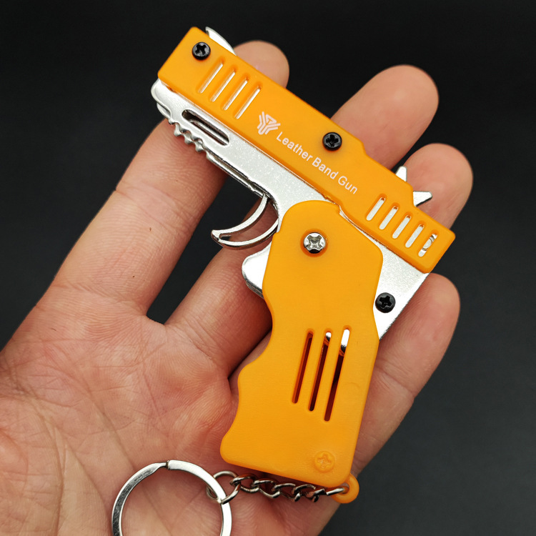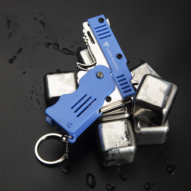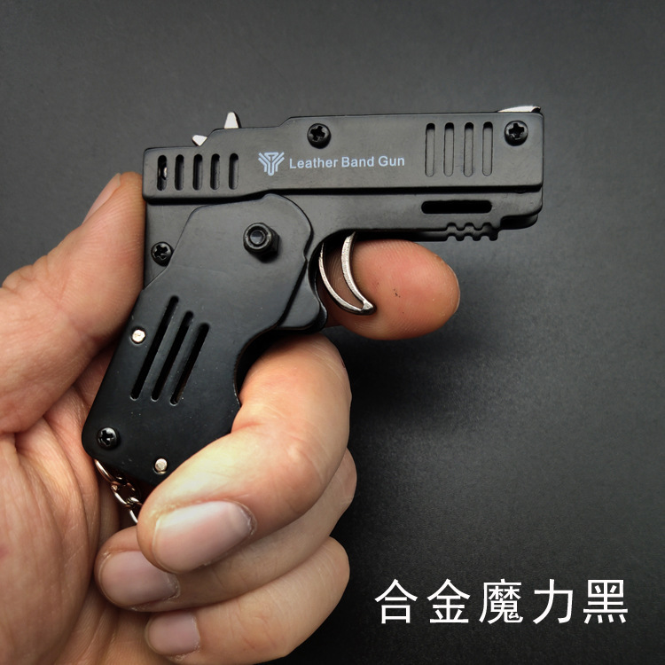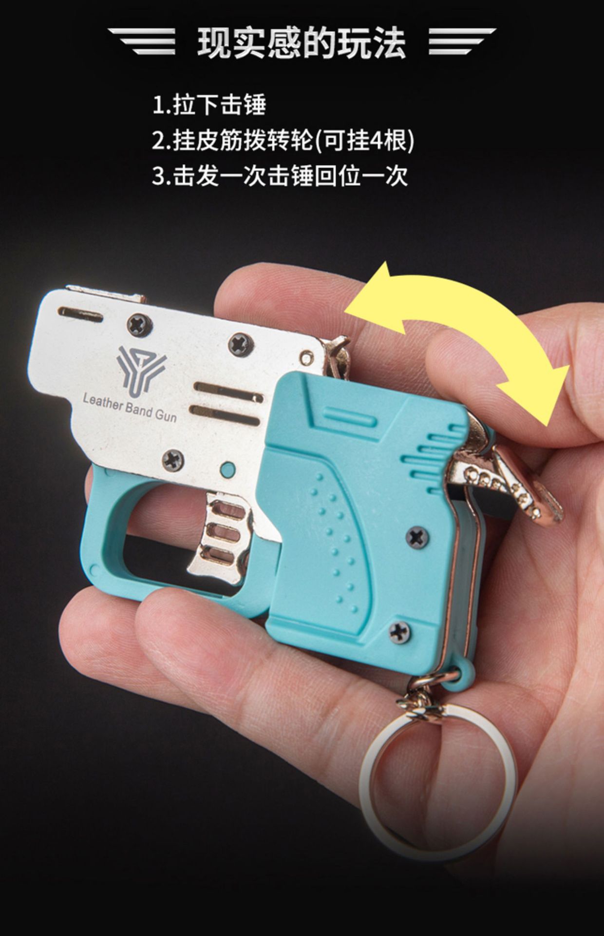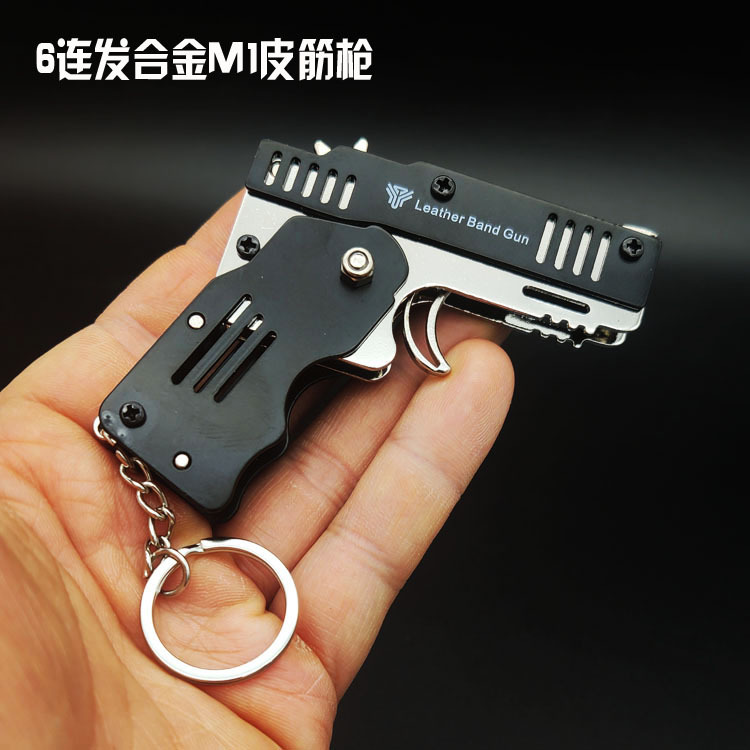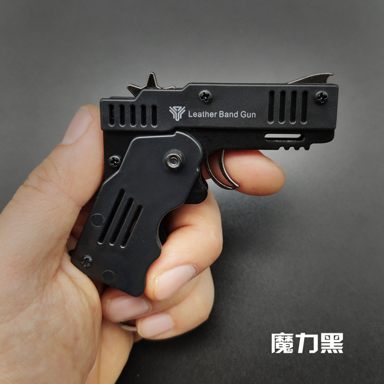 折叠全金属迷你折叠钥匙扣皮筋枪儿童礼物六连发打皮筋玩具手枪