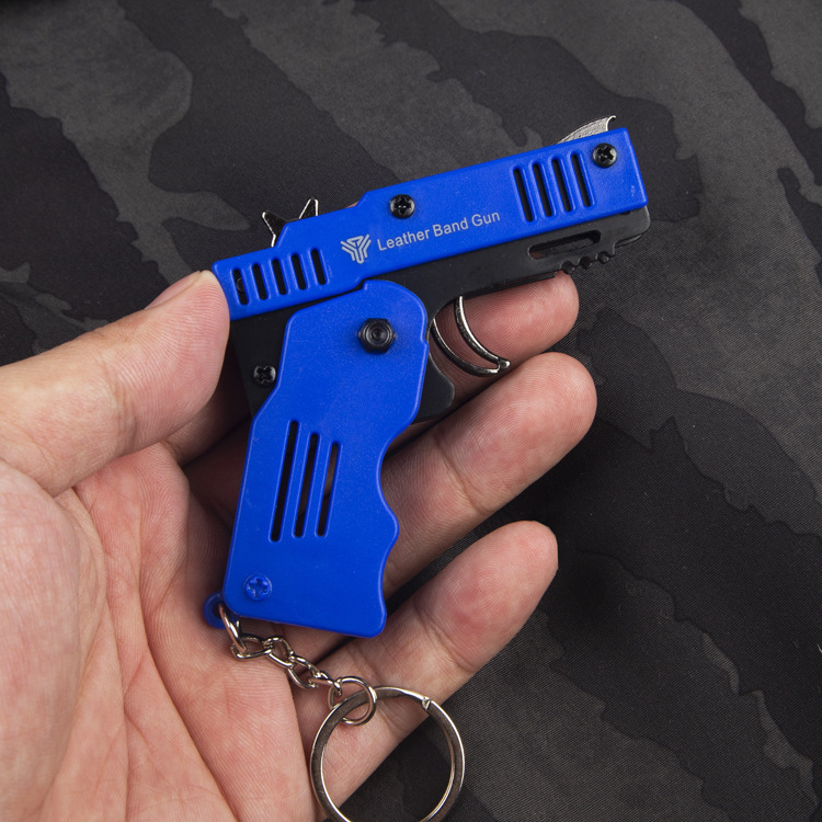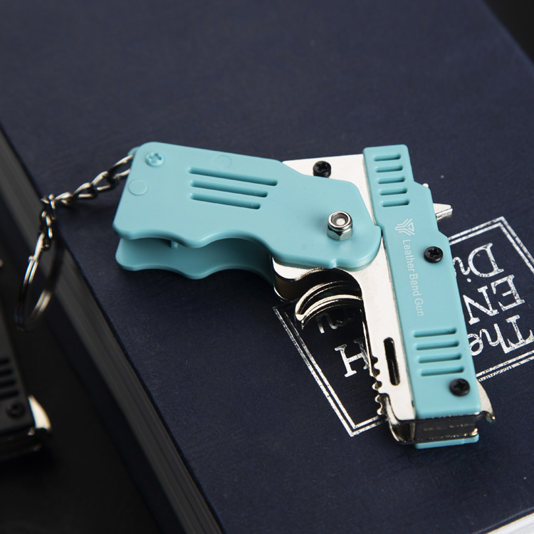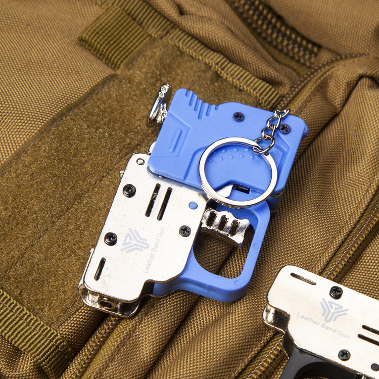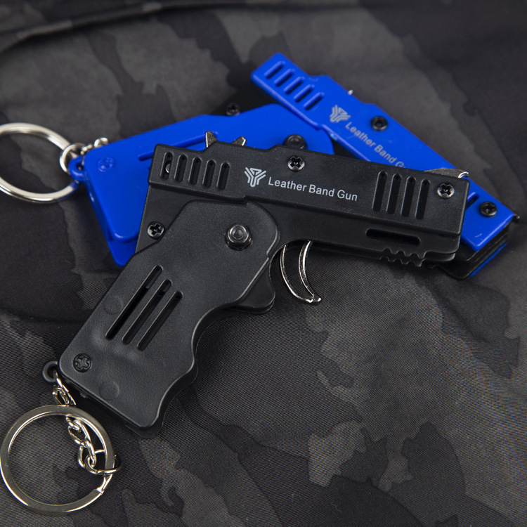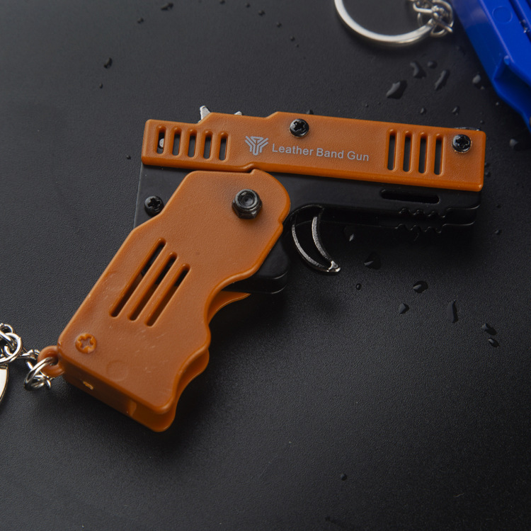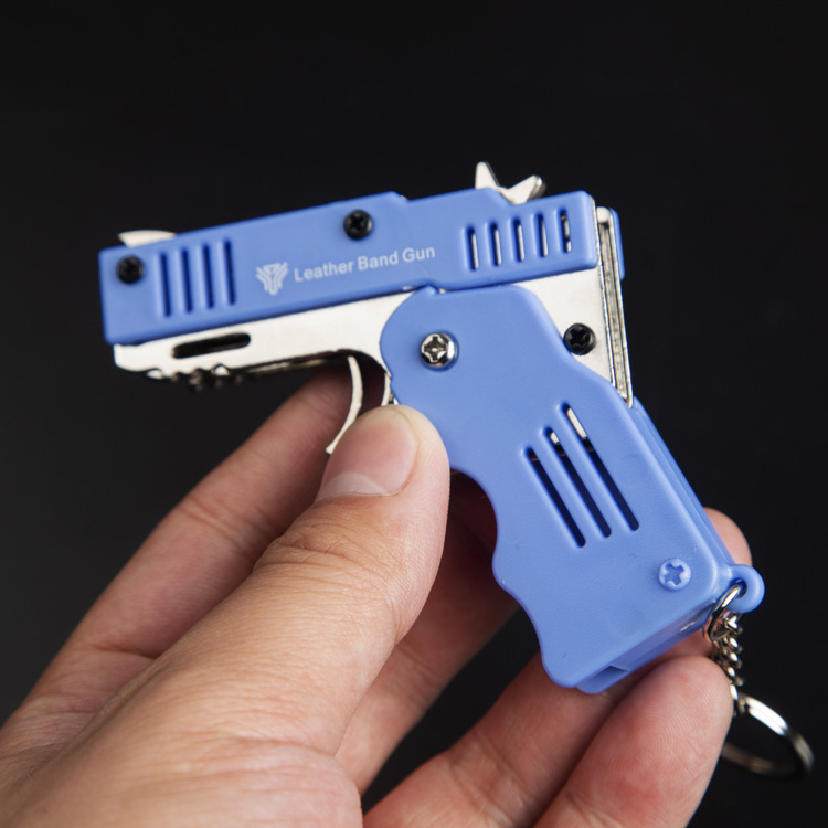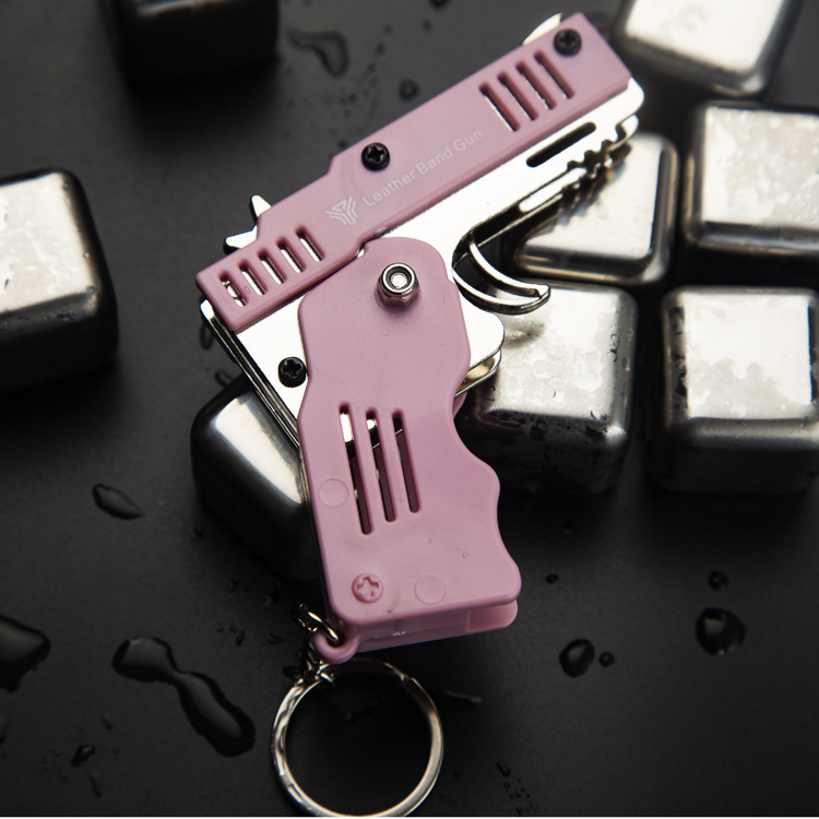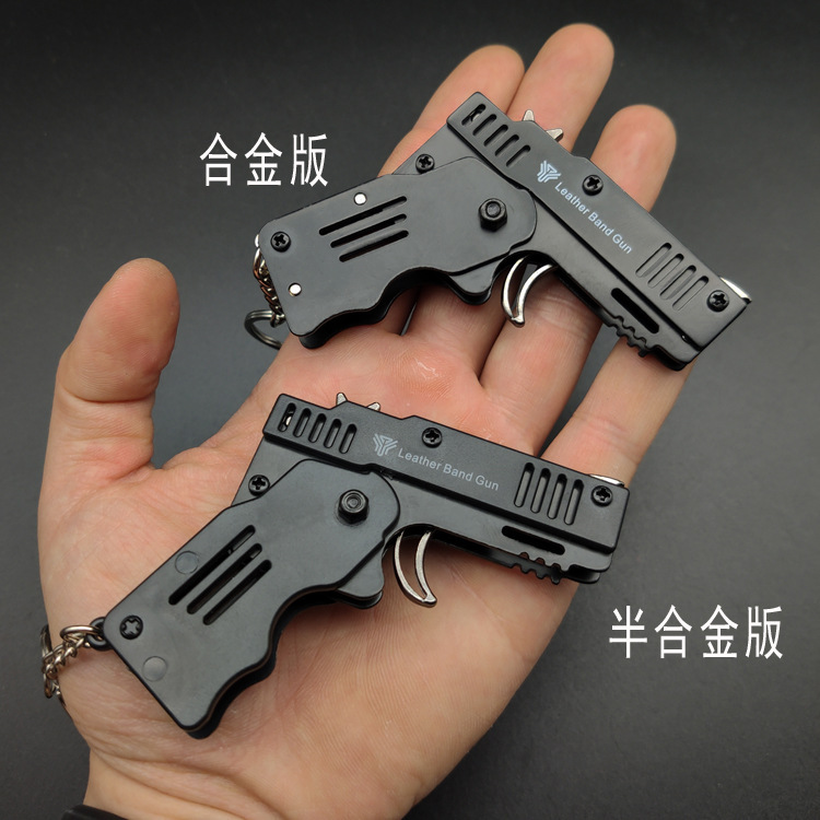 折叠全金属迷你折叠钥匙扣皮筋枪儿童礼物六连发打皮筋玩具手枪