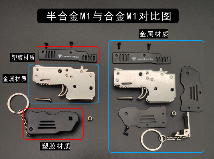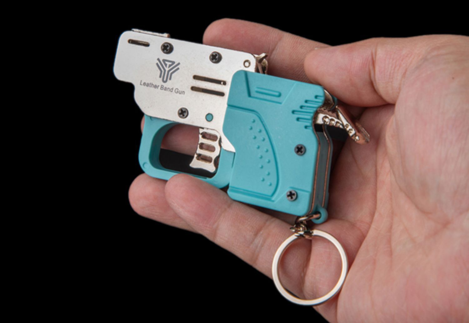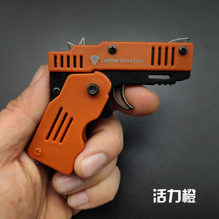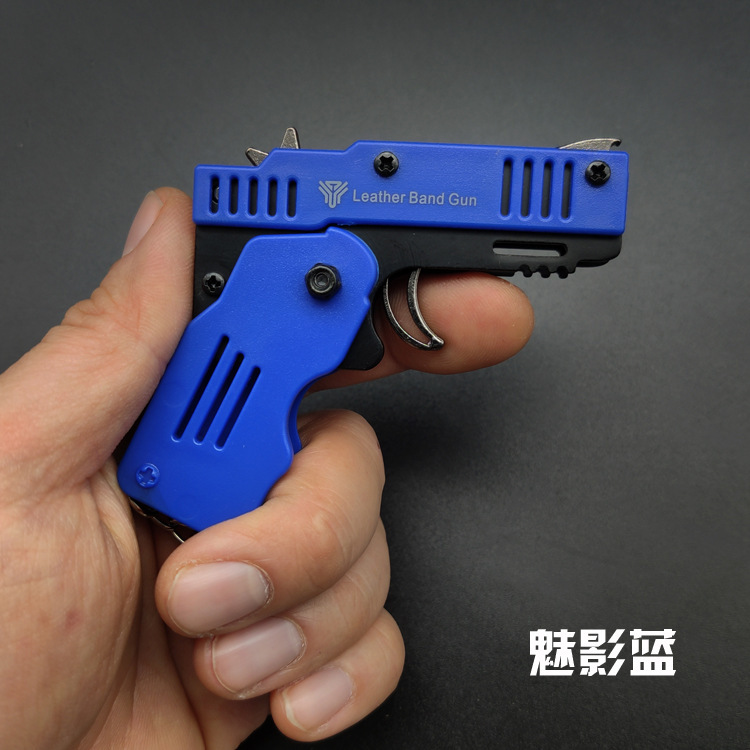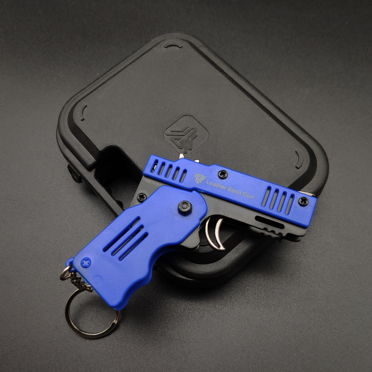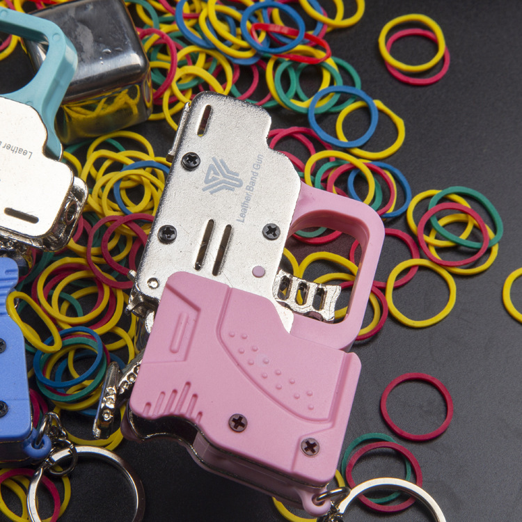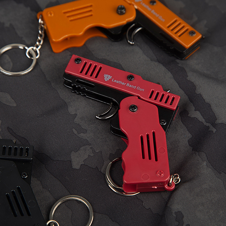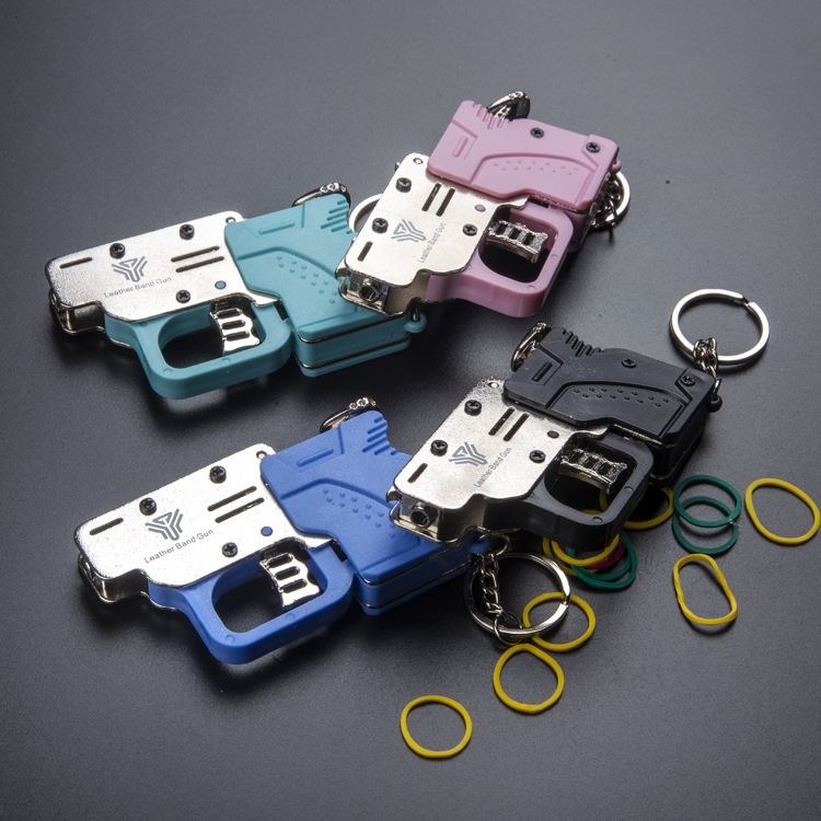 折叠全金属迷你折叠钥匙扣皮筋枪儿童礼物六连发打皮筋玩具手枪