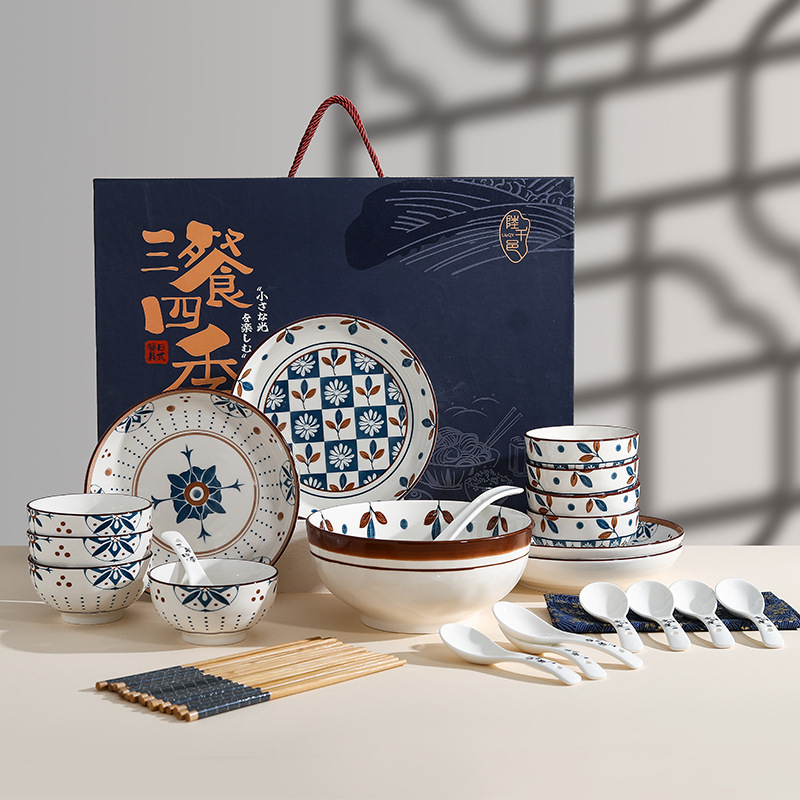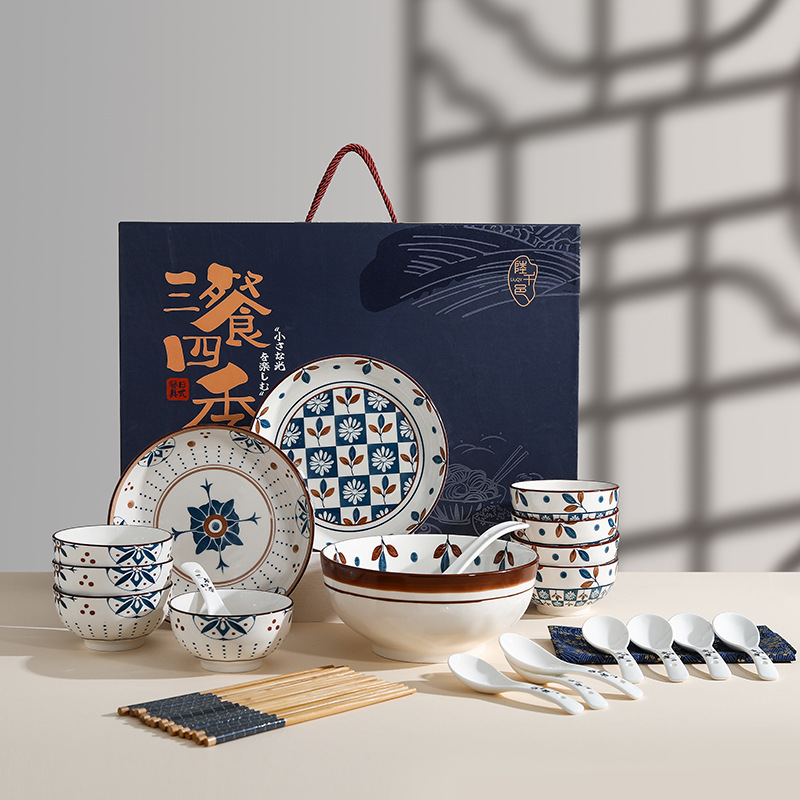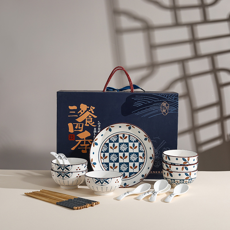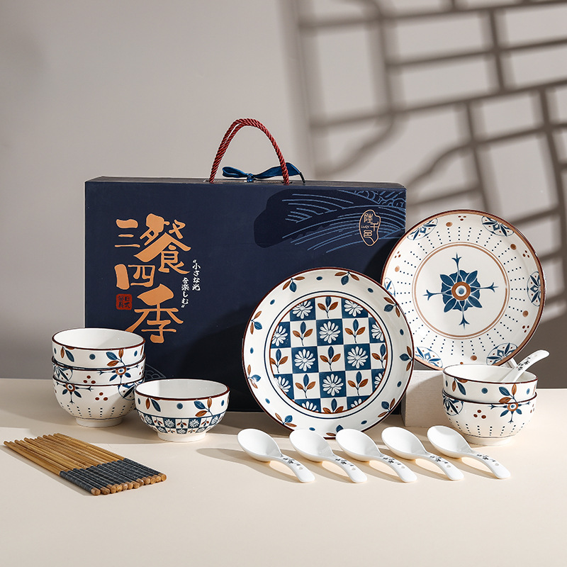 三餐四季陶瓷碗碟盘套装创意礼品开业活动伴手礼日式碗筷套装套碗