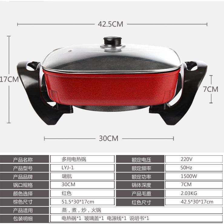 红双喜电煮锅大容量涮烤一体式多功能电烤盘家用电火锅批发3C认证