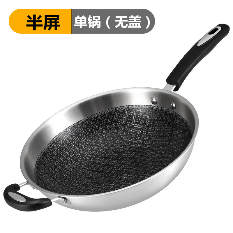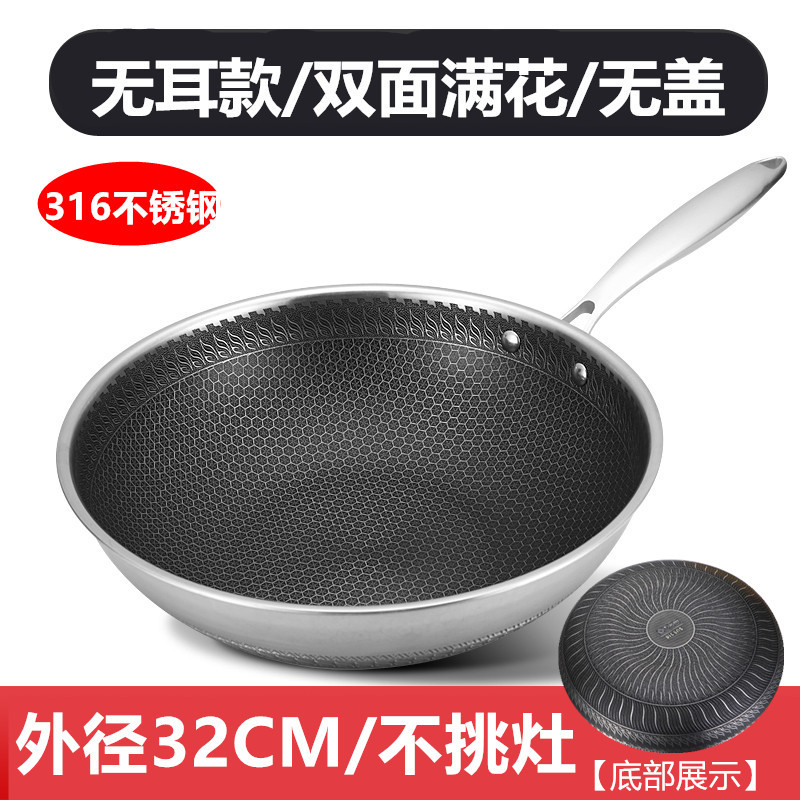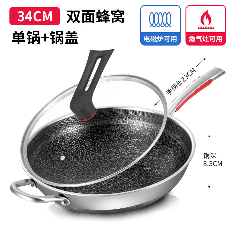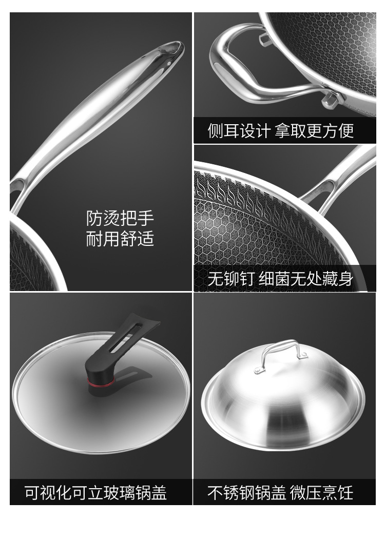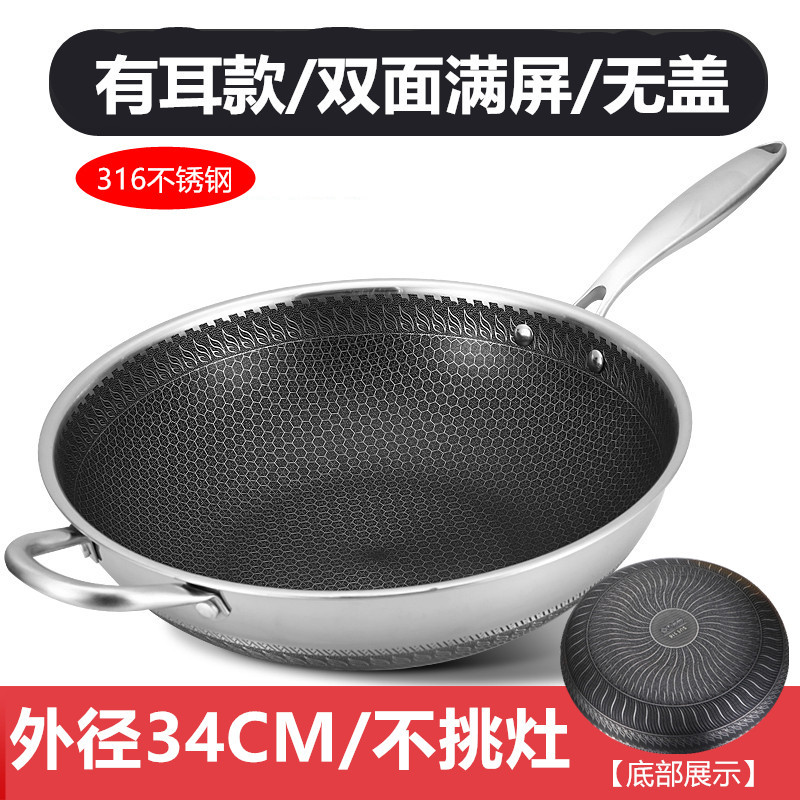316不锈钢双面炒锅少油烟蜂巢不粘炒菜锅家用燃气电磁炉厨具锅具