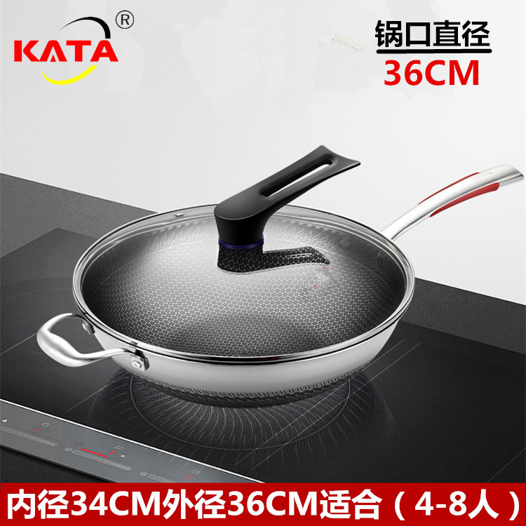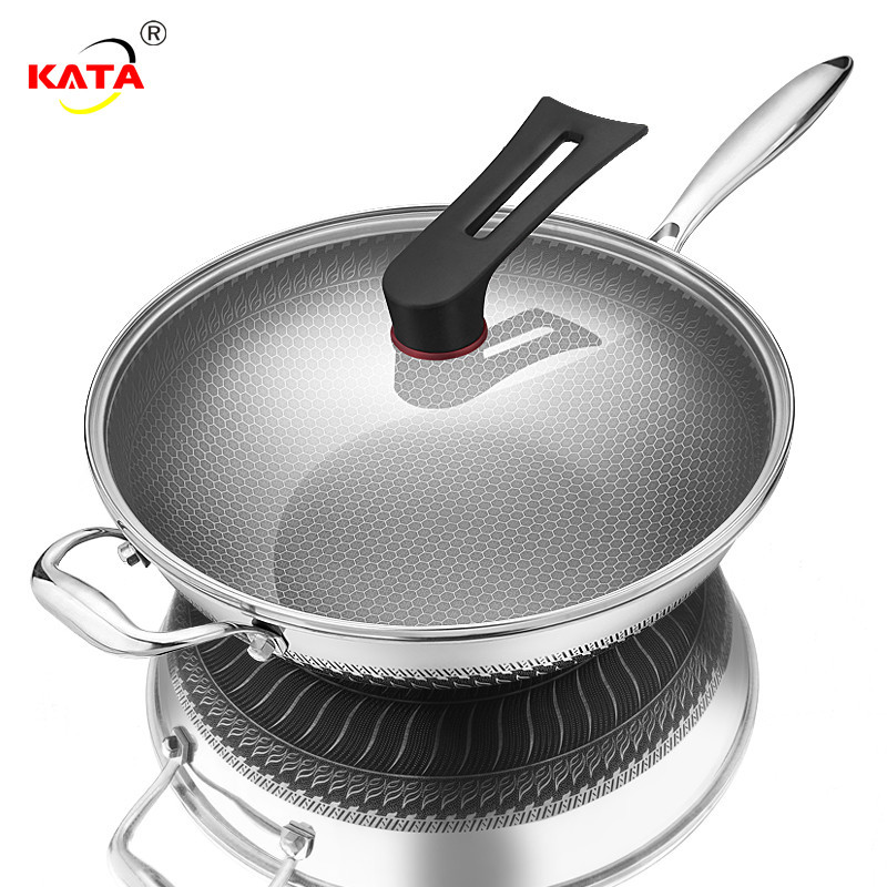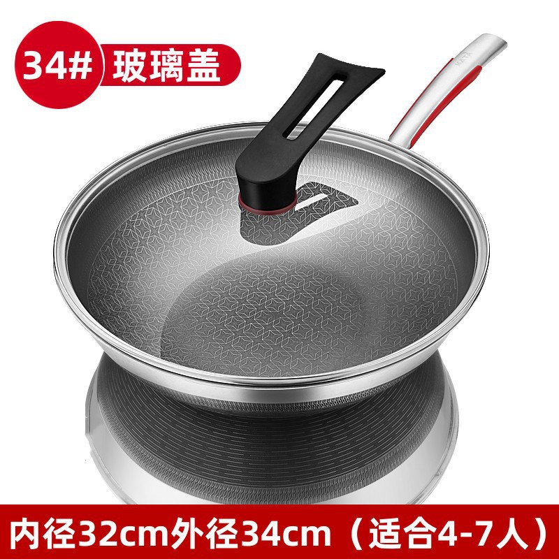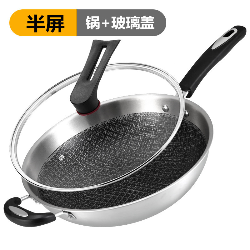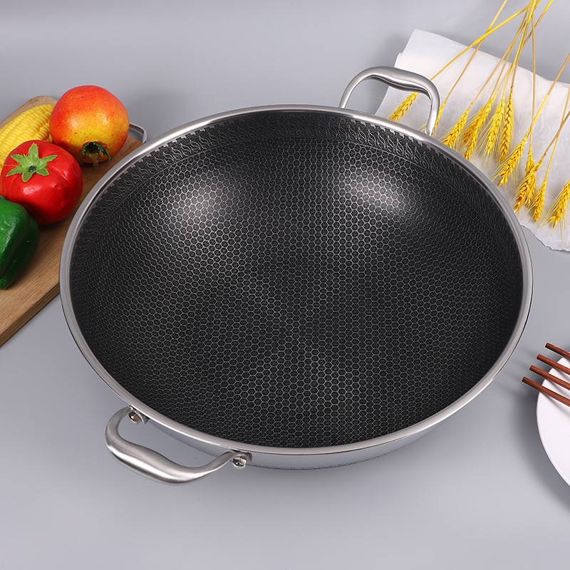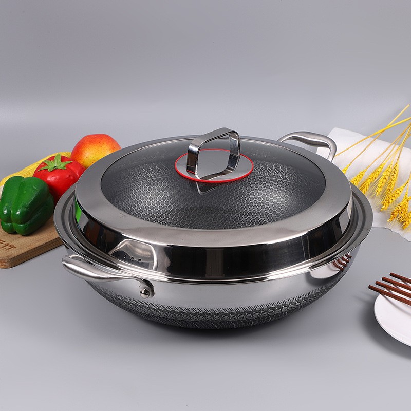 316不锈钢双面炒锅少油烟蜂巢不粘炒菜锅家用燃气电磁炉厨具锅具