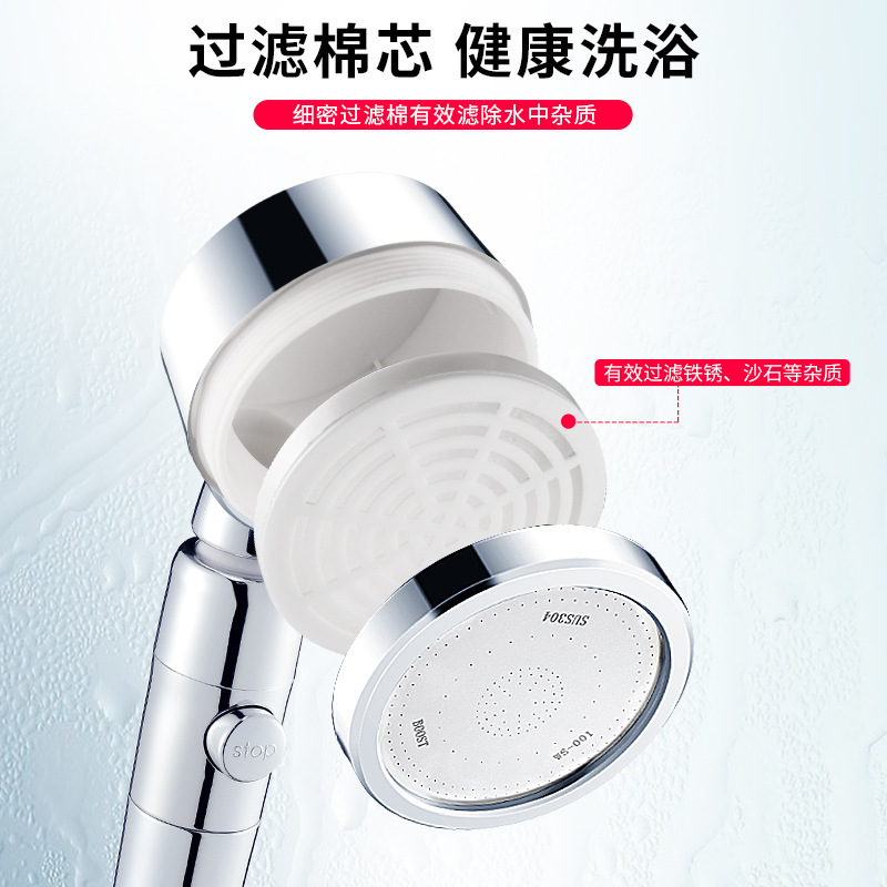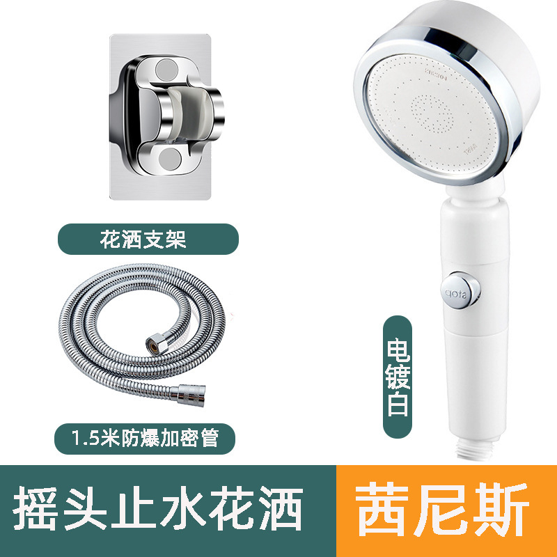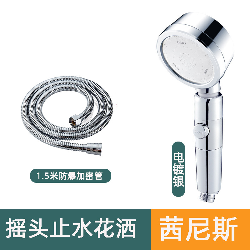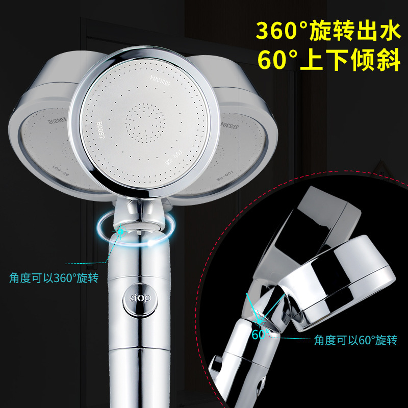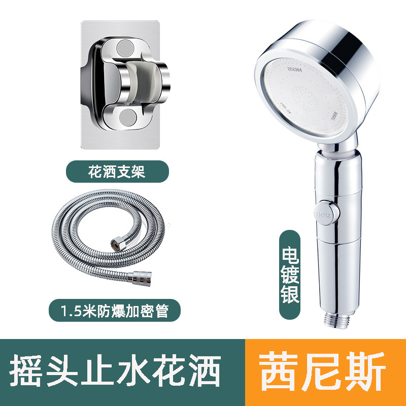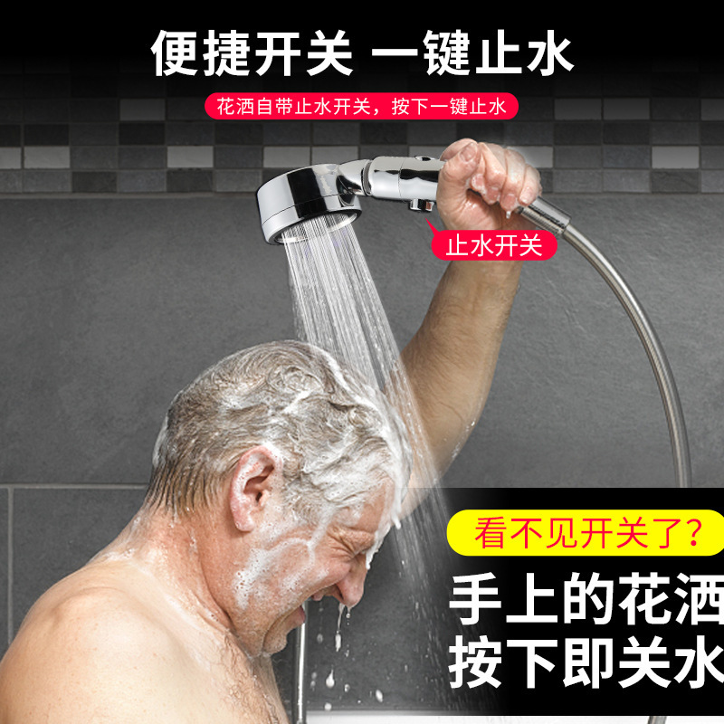 沃尔德一键止水电镀增压花洒负离子增压节水花洒转向淋浴手喷厂家