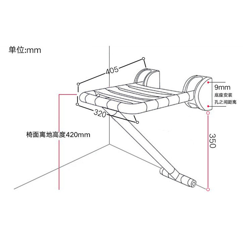 沃尔德浴室折叠座椅淋浴凳沐浴老人卫生间无障碍洗澡壁椅墙壁坐凳