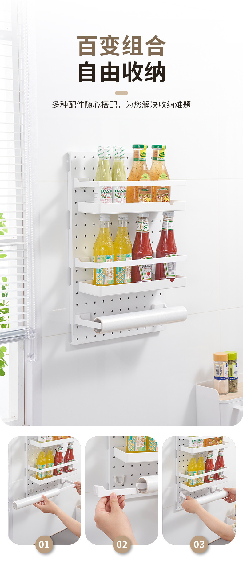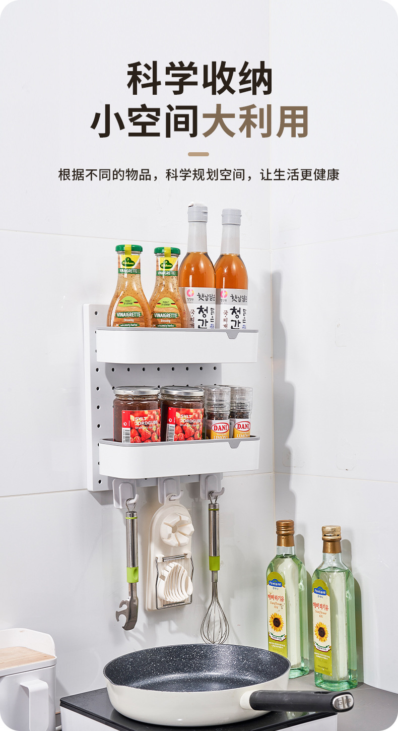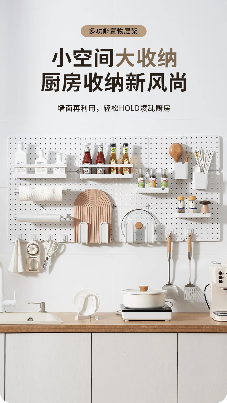 厂家直销洞洞板置物架厨房网红收纳神器墙上免打孔壁挂多功能层架
