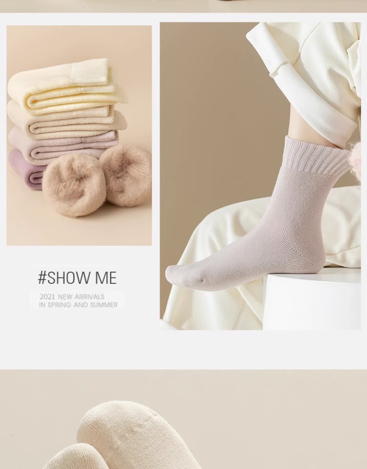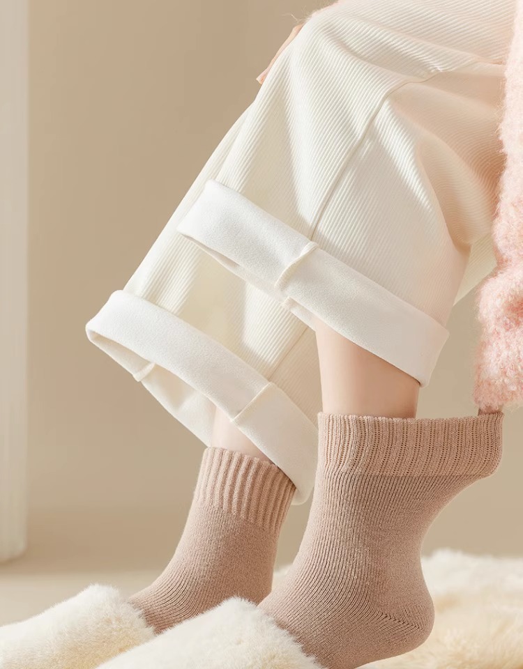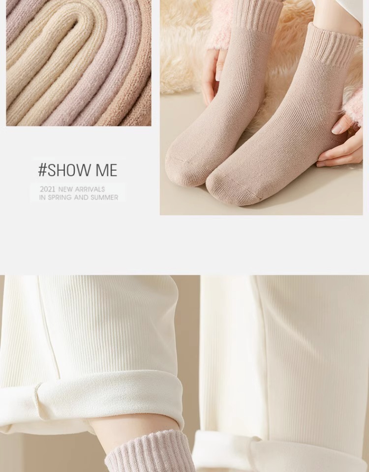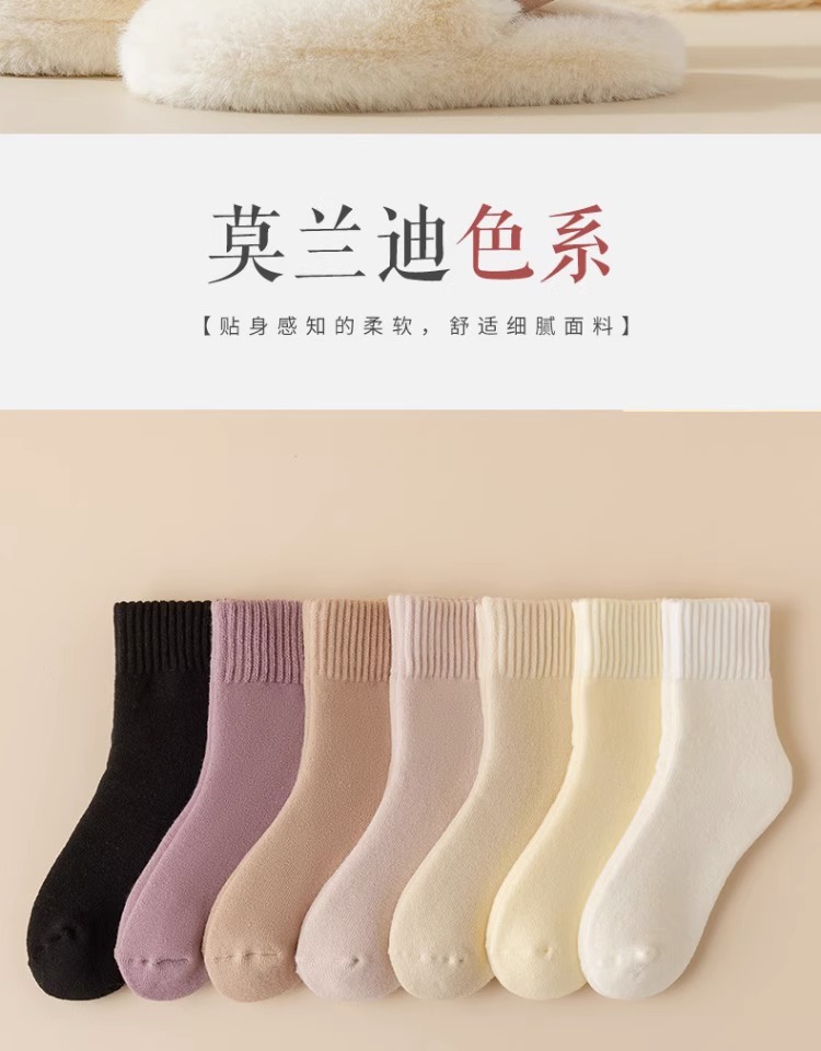 袜子女秋冬季加厚月子袜毛巾地板袜中筒拉绒毛圈袜冬天加绒睡眠袜