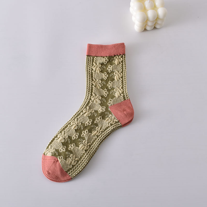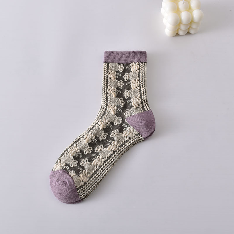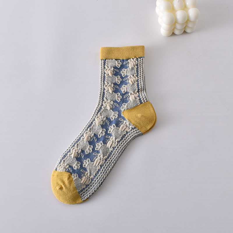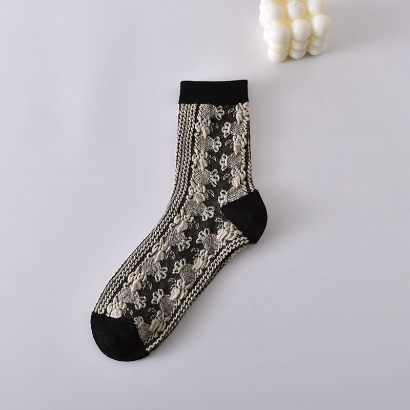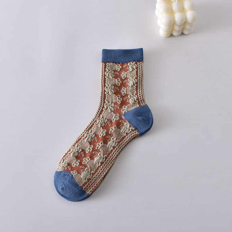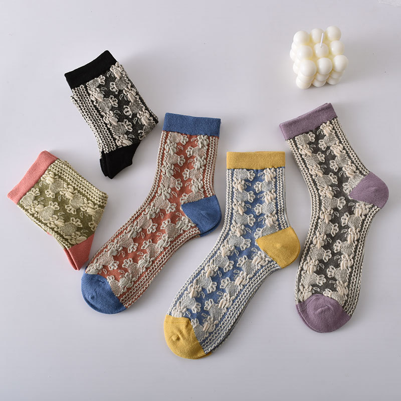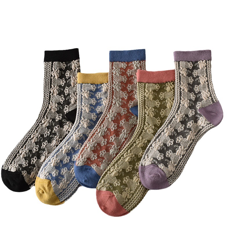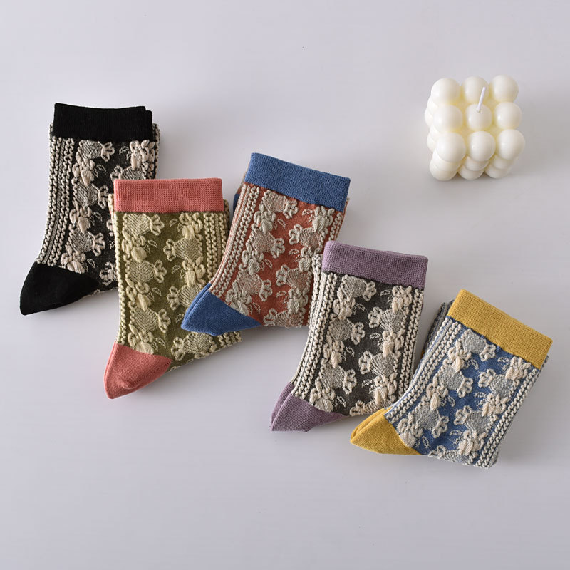 中筒袜子女立体浮雕复古棉袜秋冬季新款ins潮百搭国潮宫廷风透气