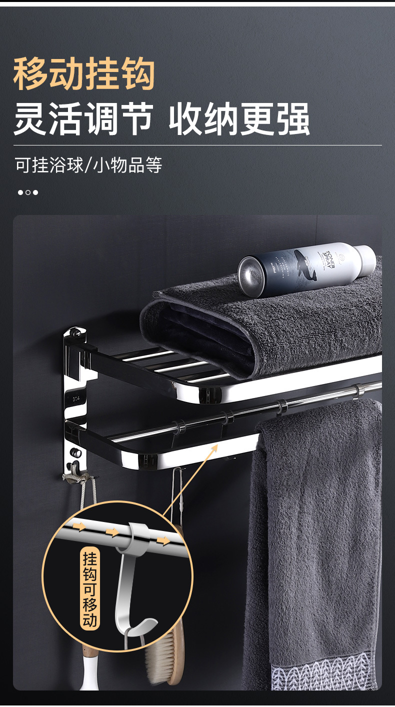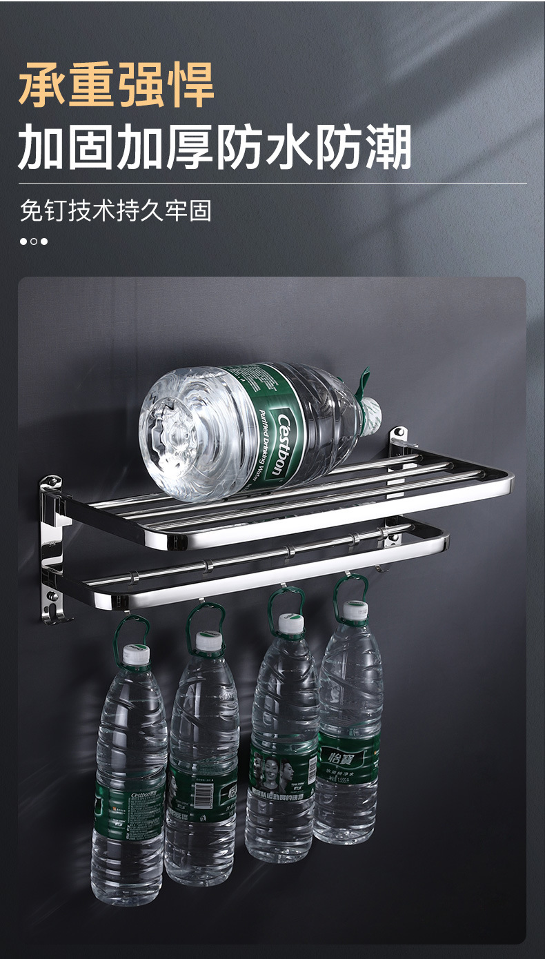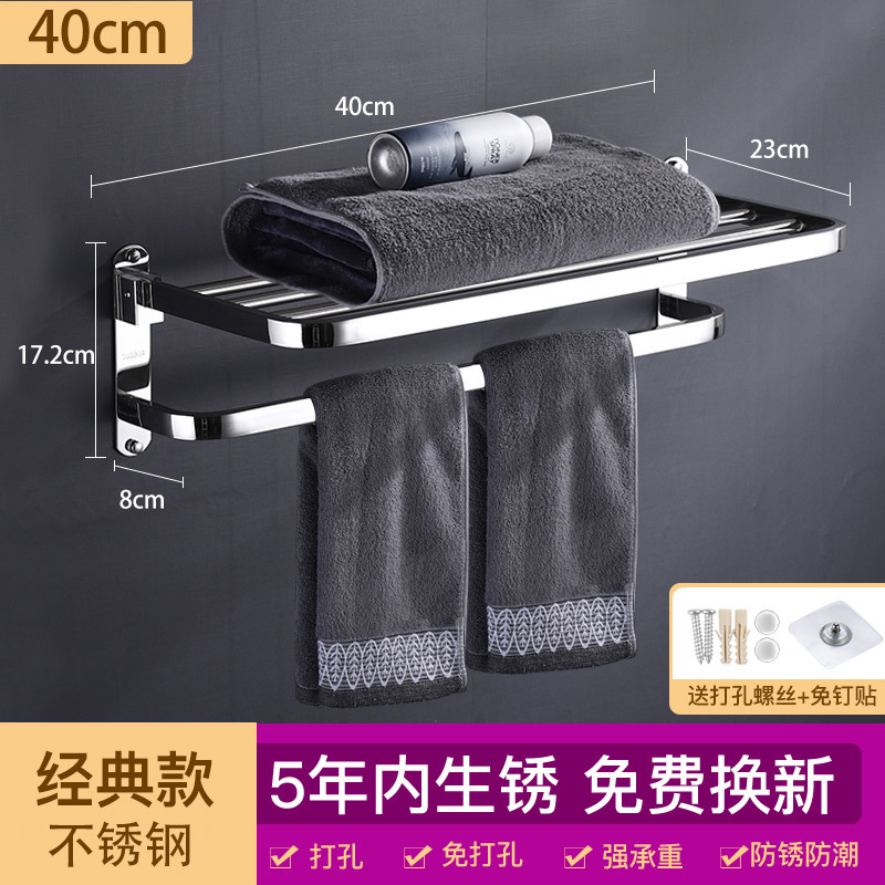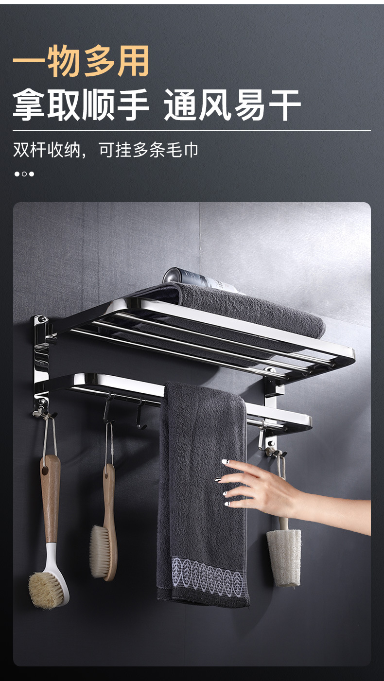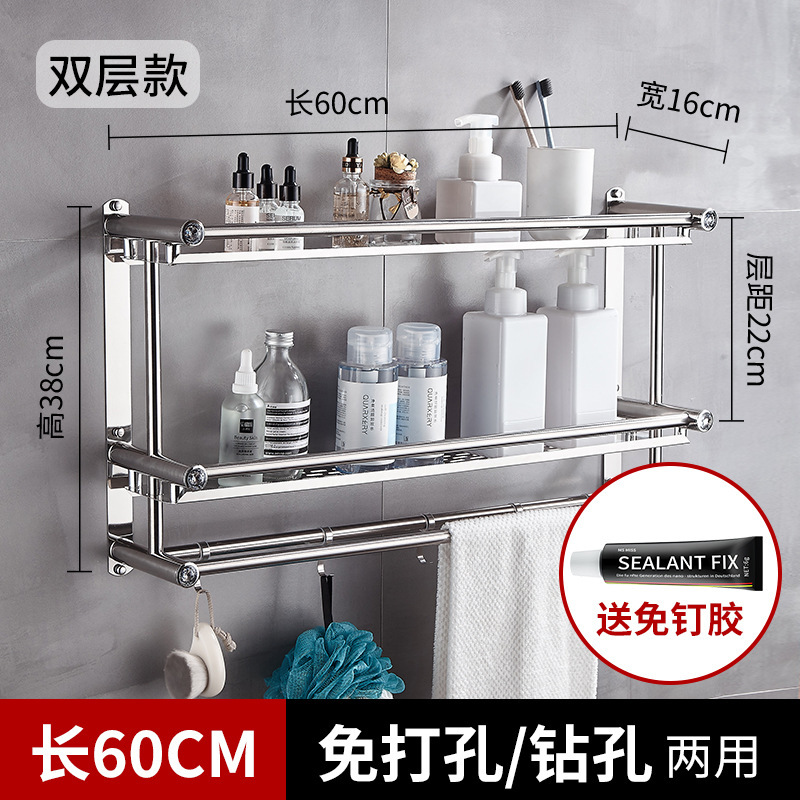 浴室毛巾架不锈钢免打孔置物架卫生间洗漱台壁挂式浴巾收纳架子