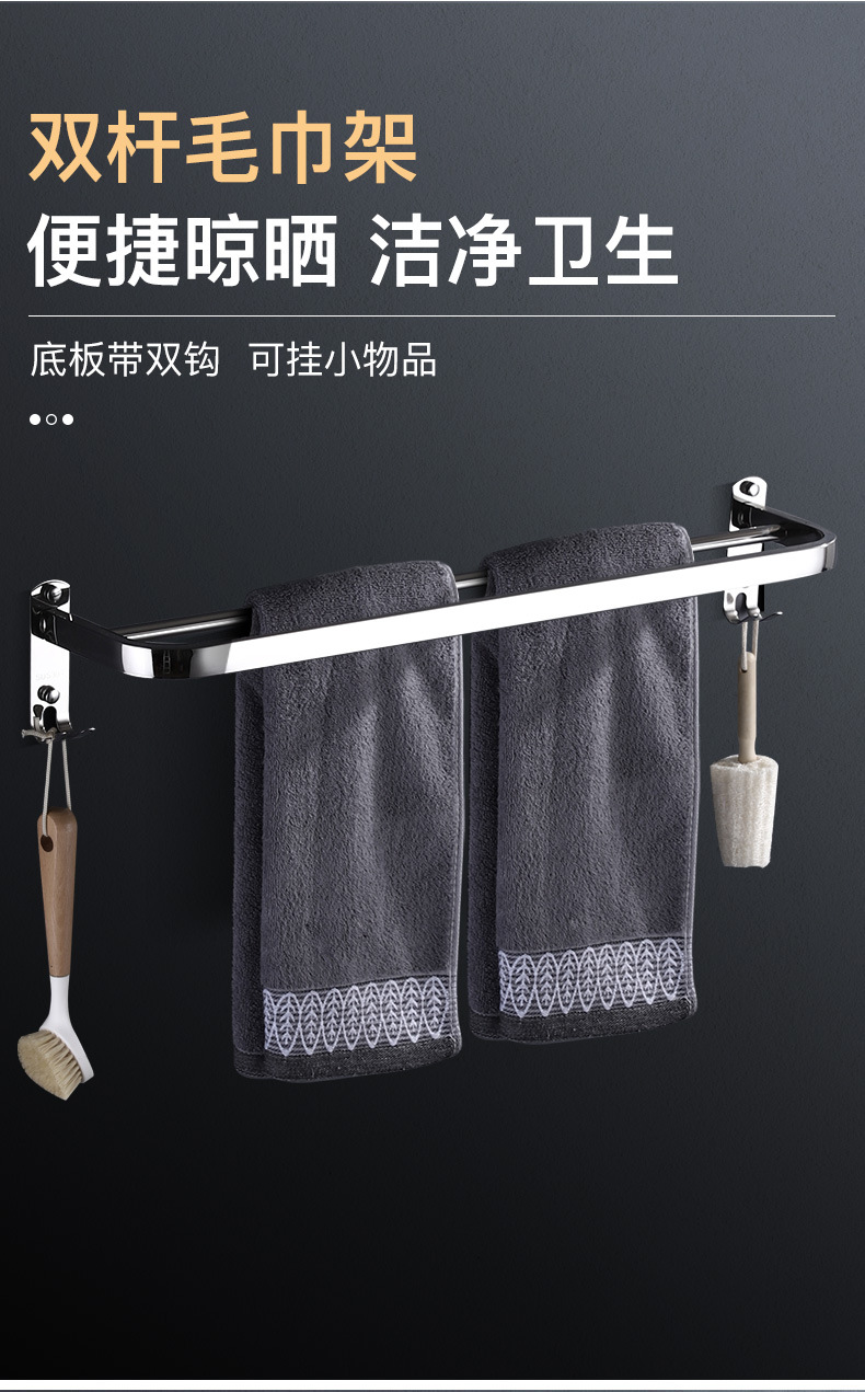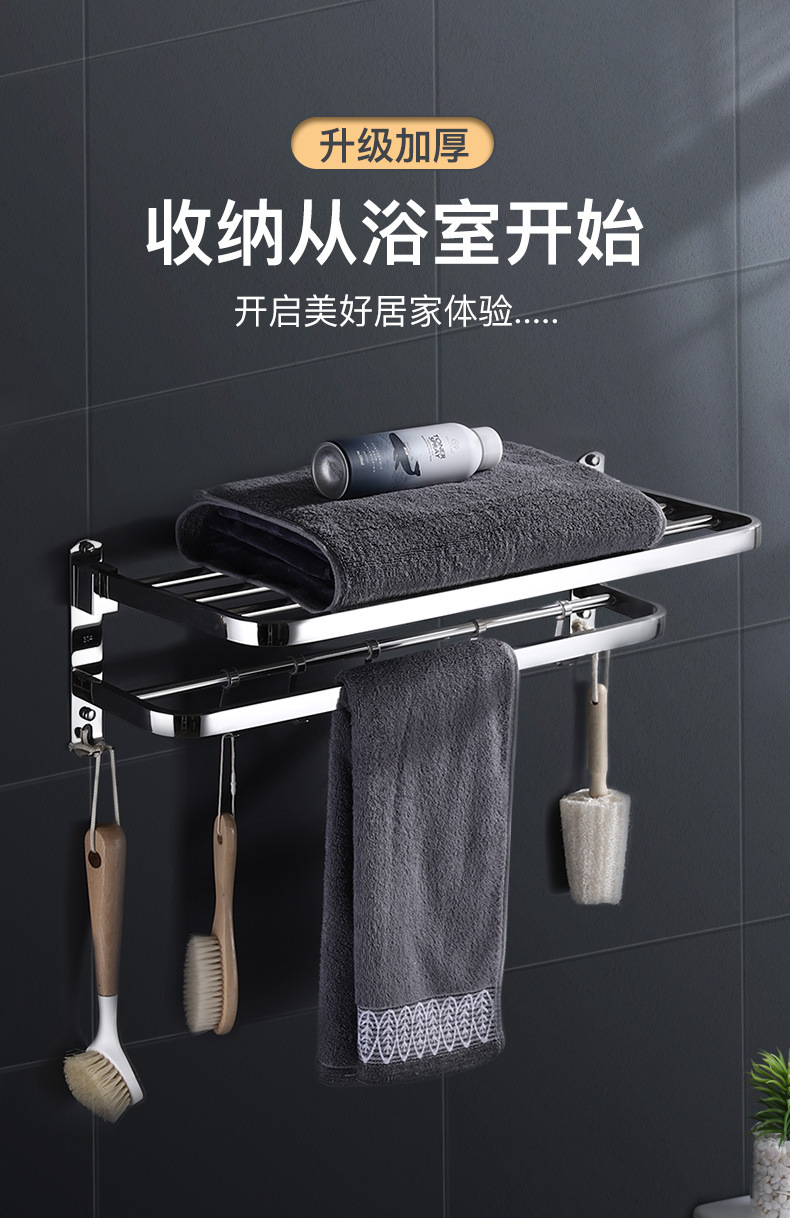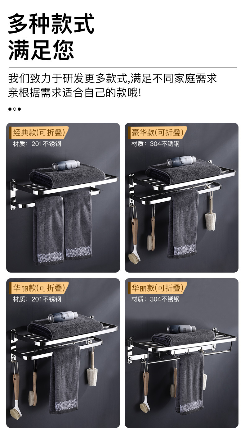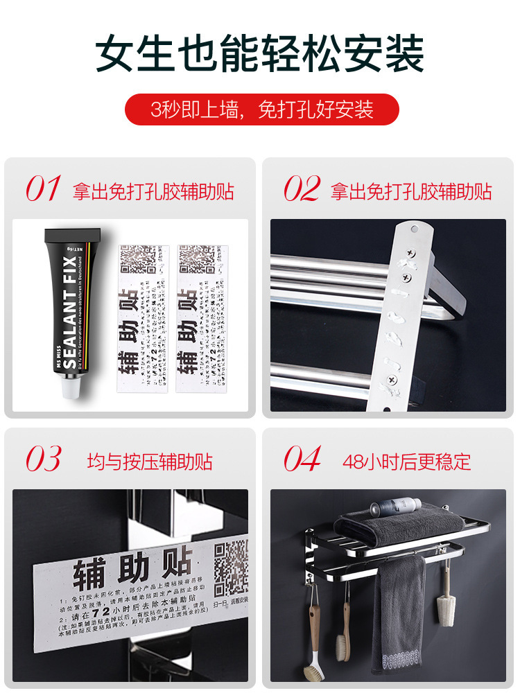 浴室毛巾架不锈钢免打孔置物架卫生间洗漱台壁挂式浴巾收纳架子