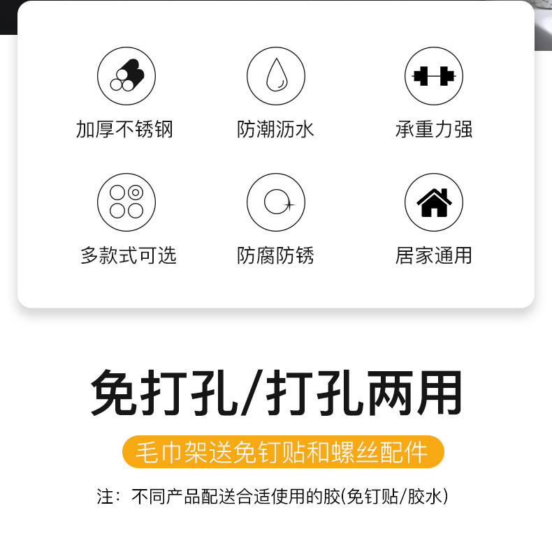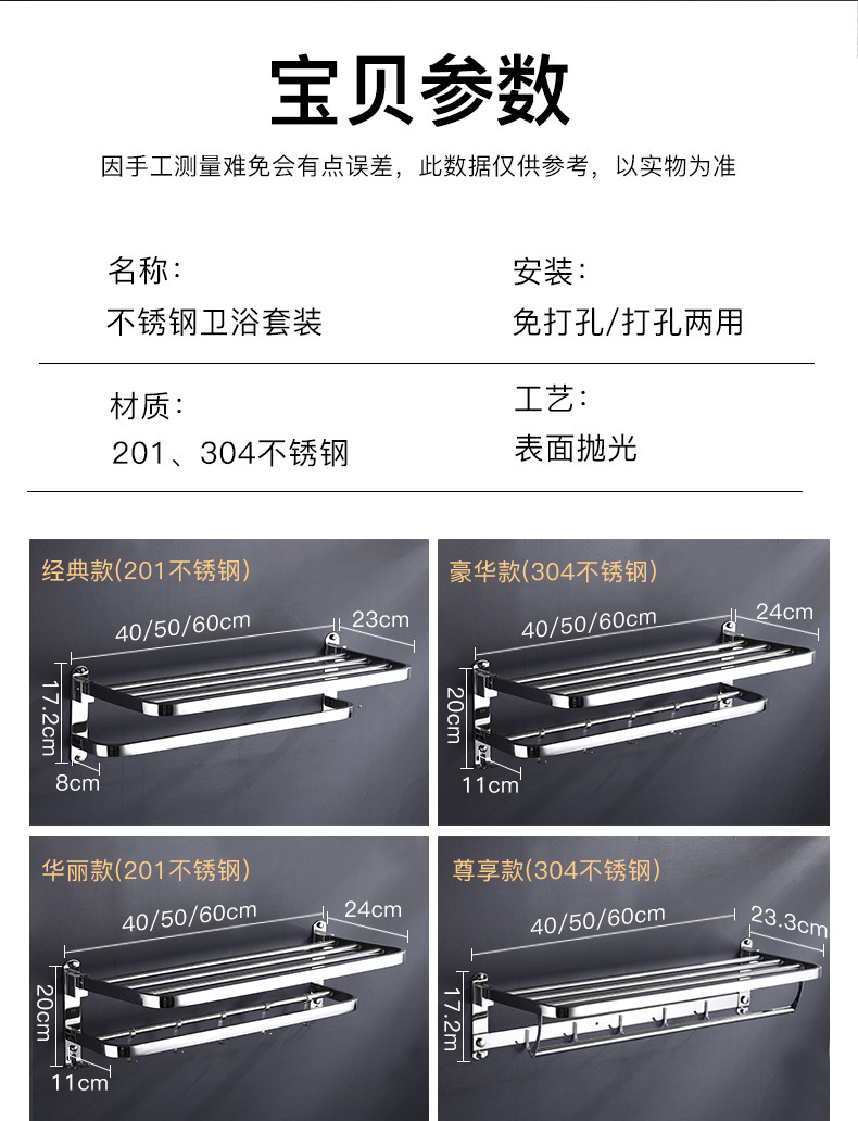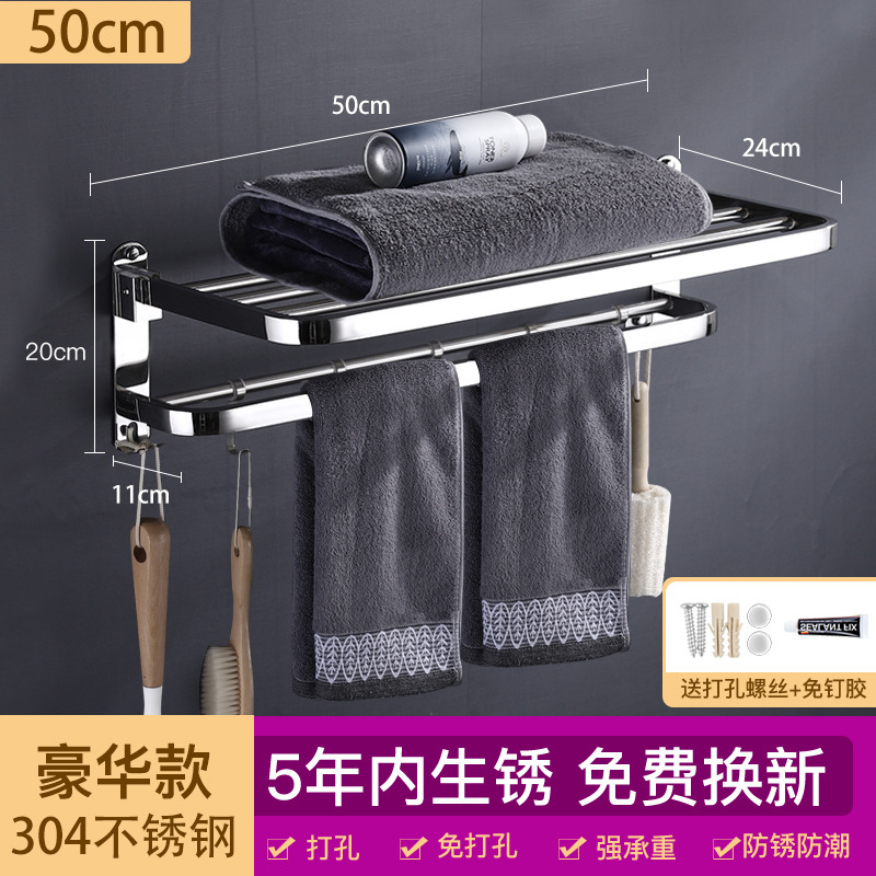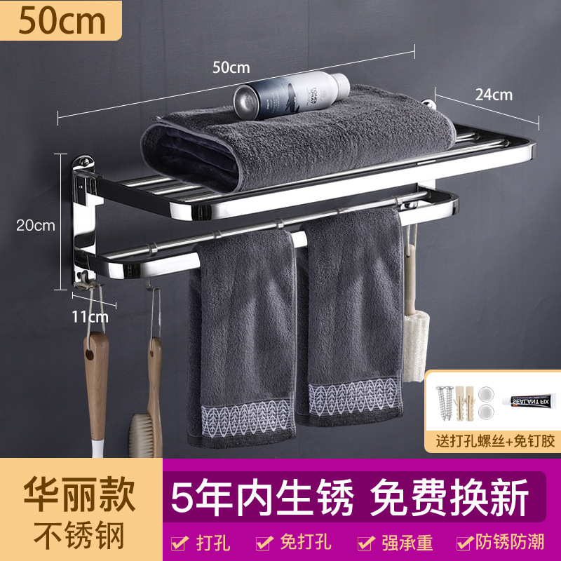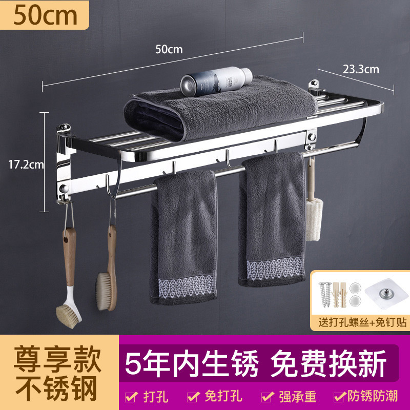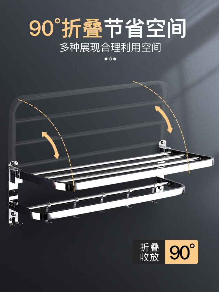 浴室毛巾架不锈钢免打孔置物架卫生间洗漱台壁挂式浴巾收纳架子