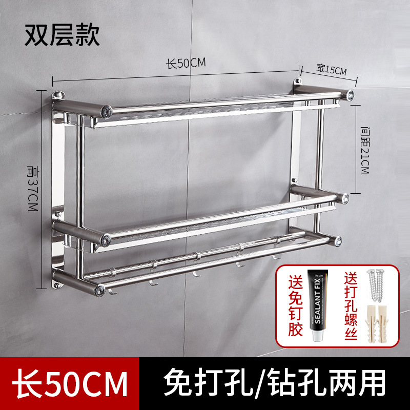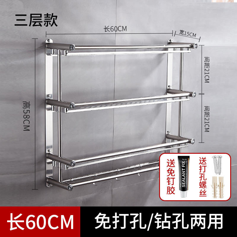 不锈钢浴室免打孔浴巾架毛巾架多层卫生间置物架省空间收纳储物架