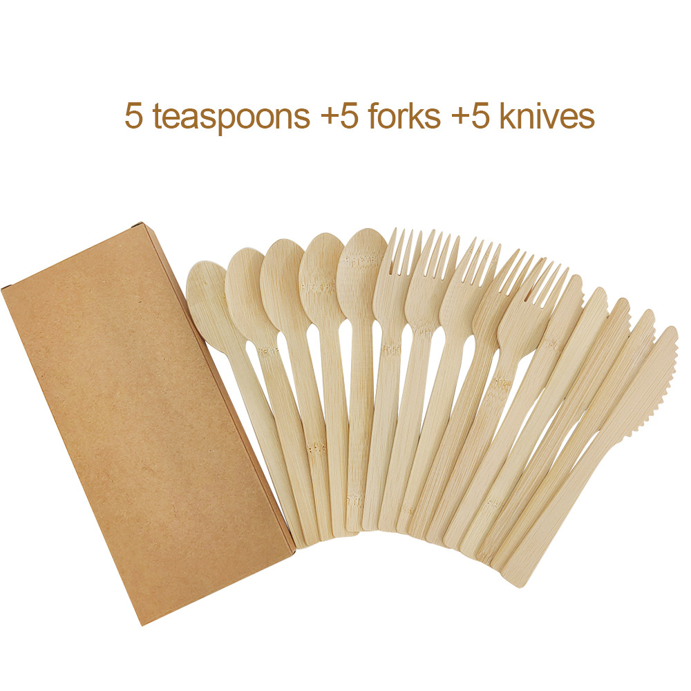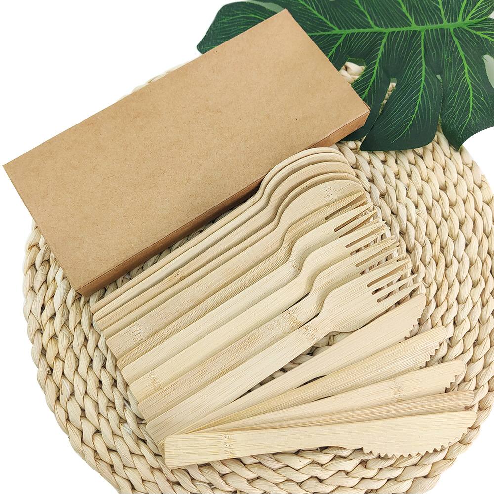 一次性竹制刀叉勺 可定餐具包 可降解竹刀叉勺套装