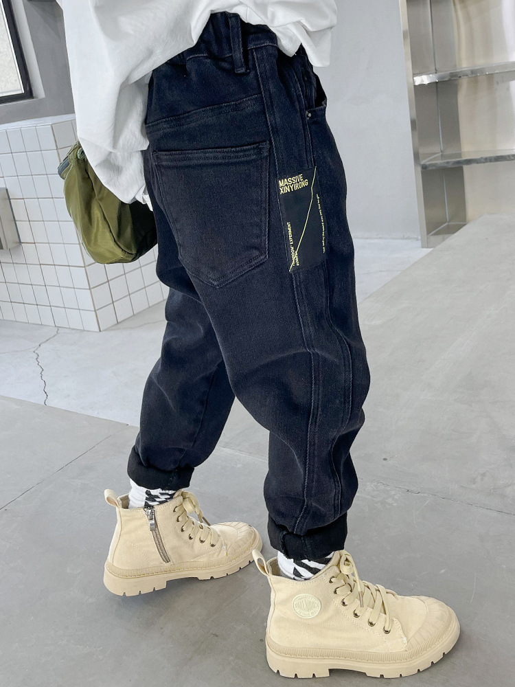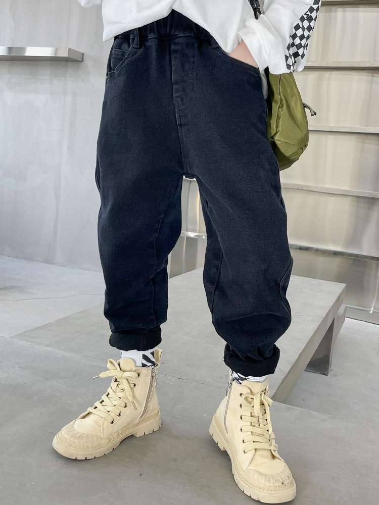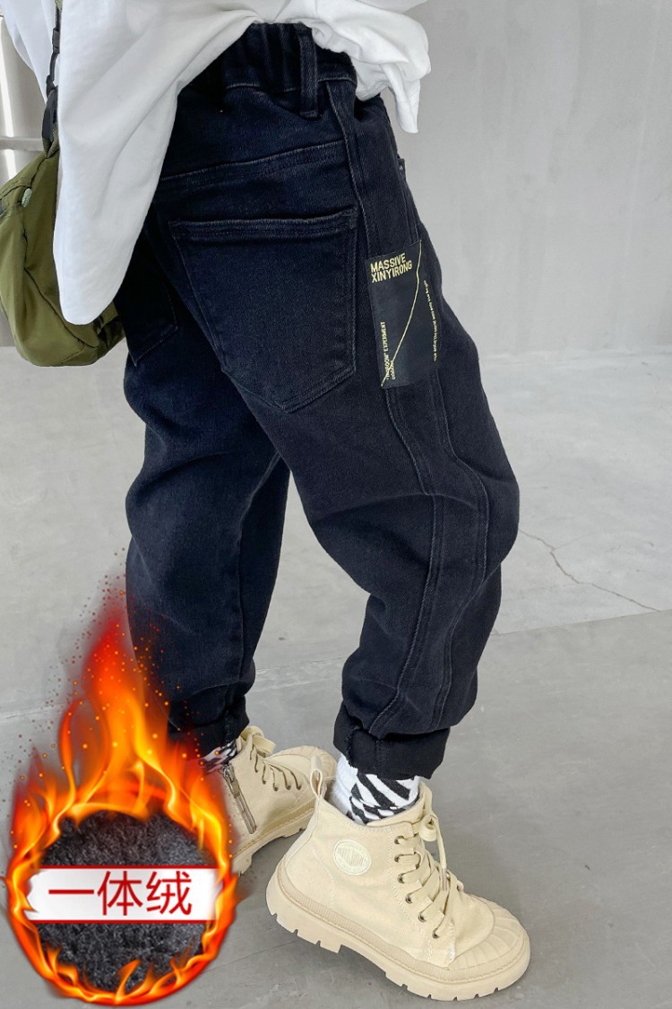 童装加绒加厚长裤休闲一体绒儿童宽松裤子男童中大童冬款牛仔裤