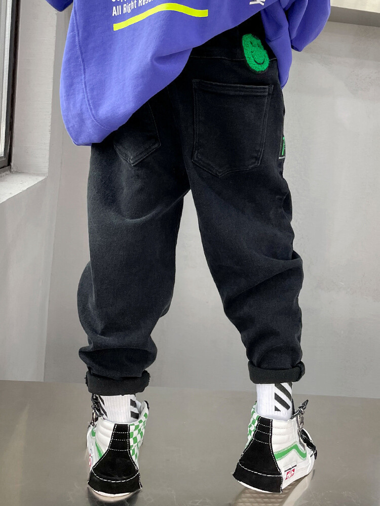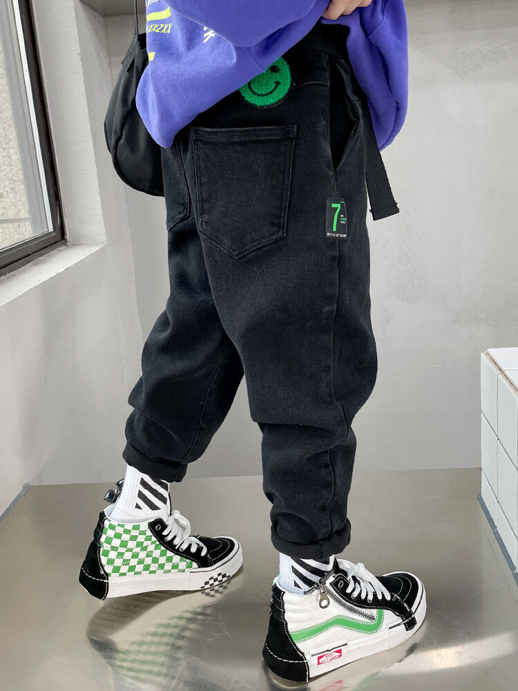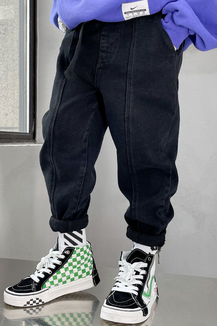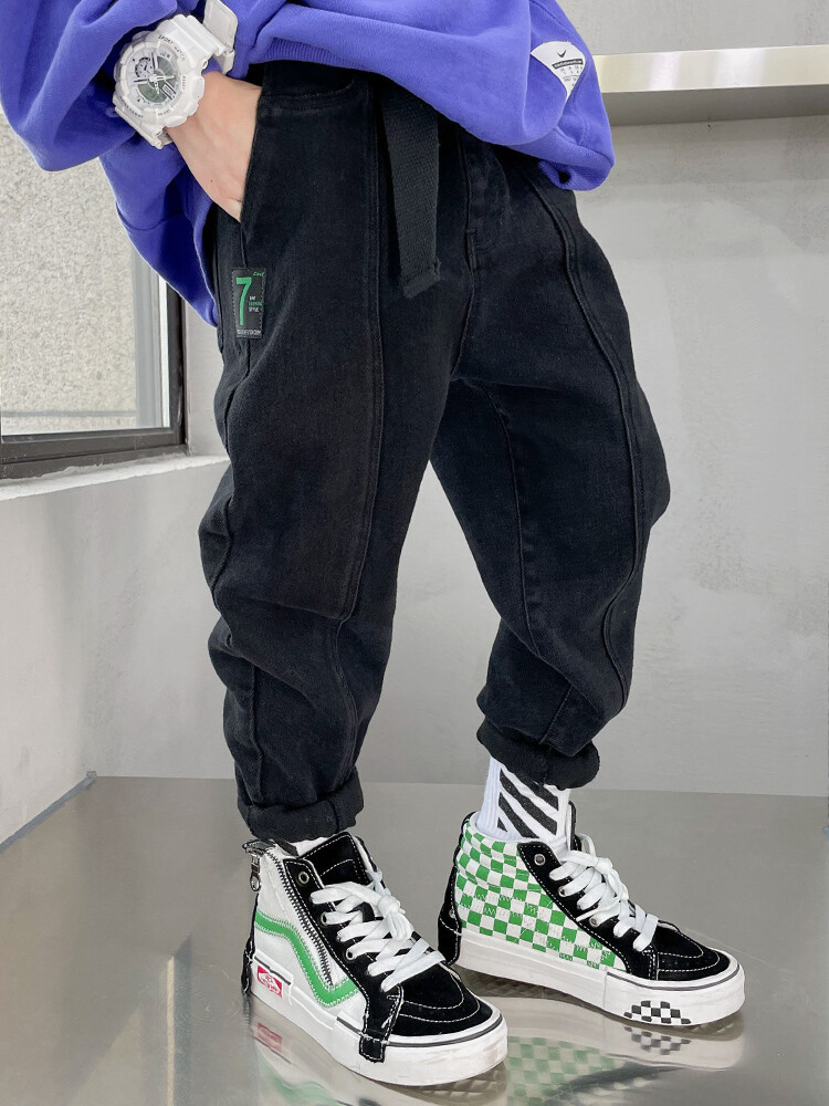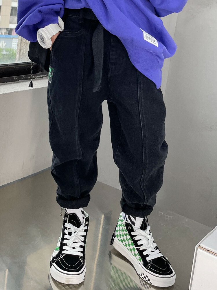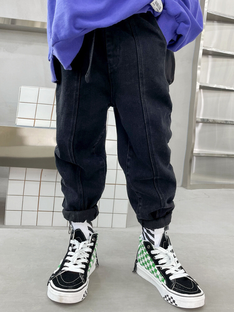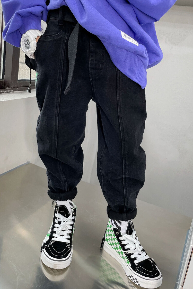 童装新款一体绒牛仔裤中大童长裤冬季黑色加绒加厚牛仔男童裤子潮