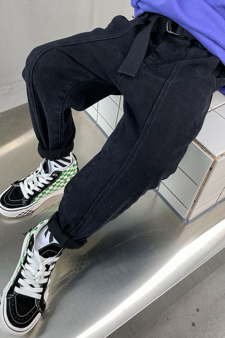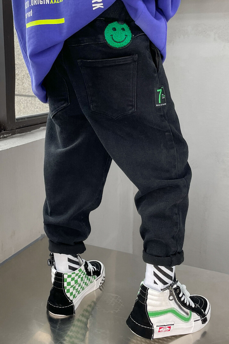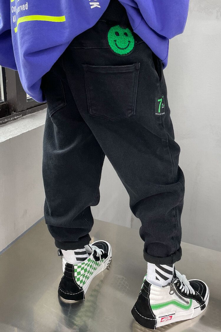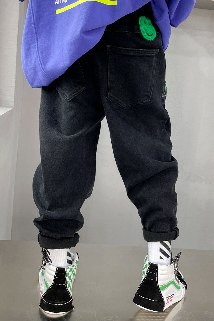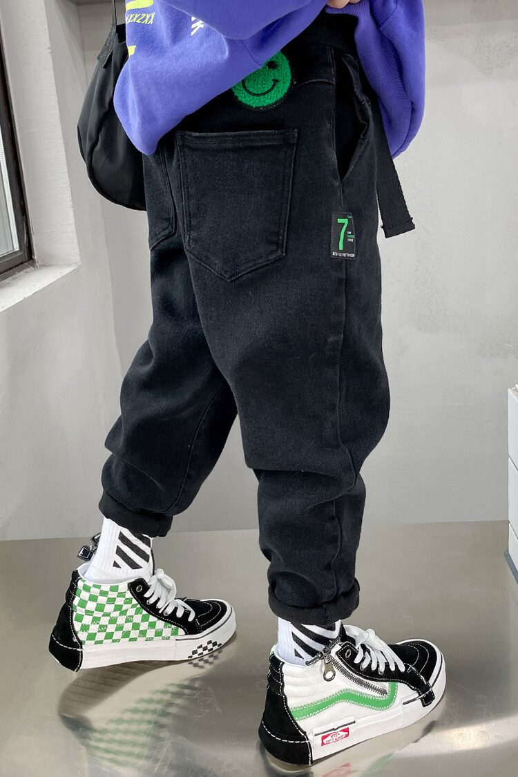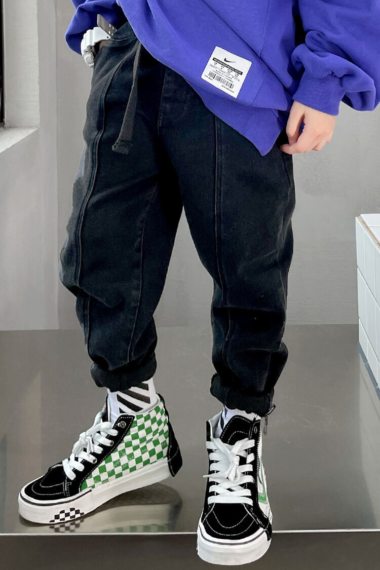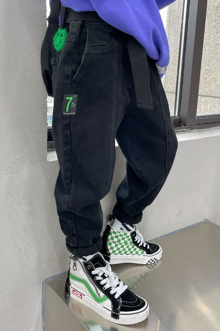 童装新款一体绒牛仔裤中大童长裤冬季黑色加绒加厚牛仔男童裤子潮