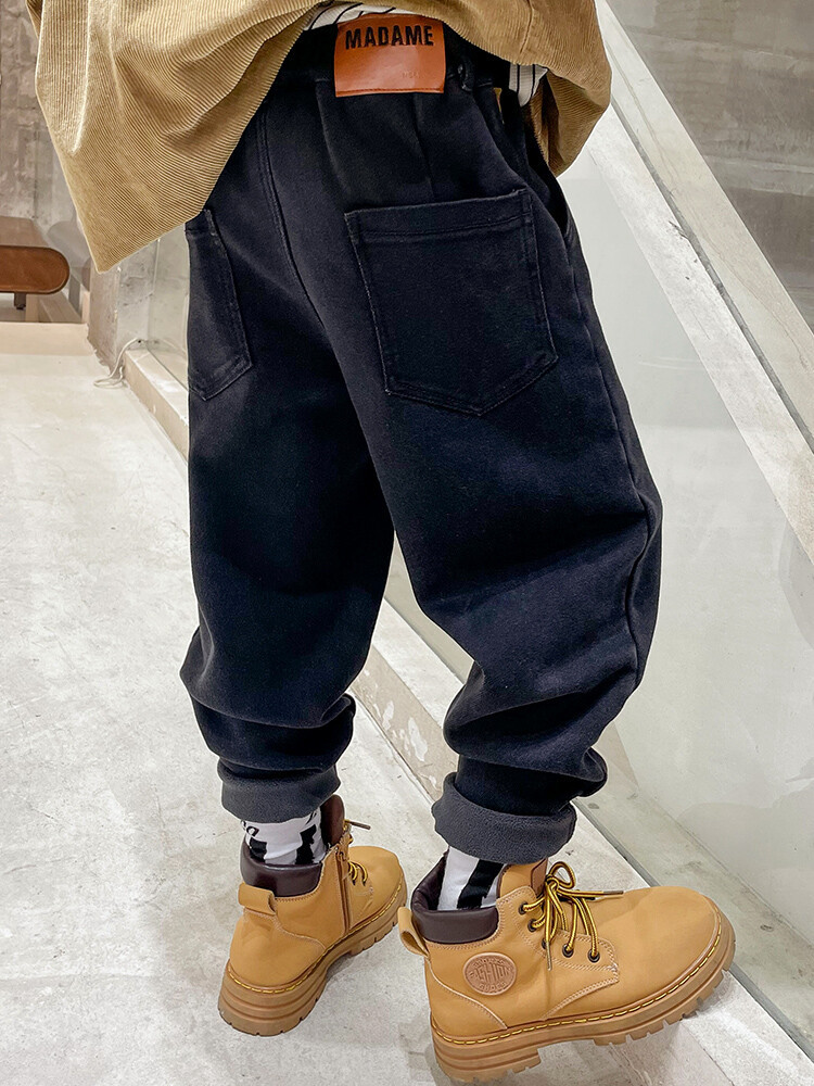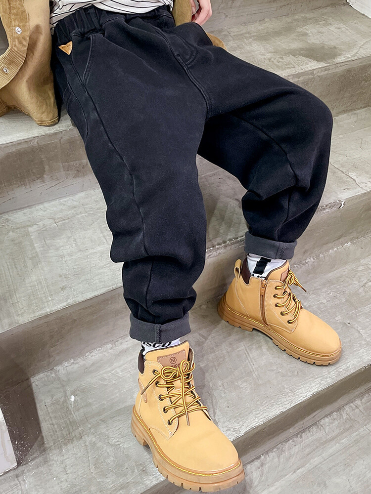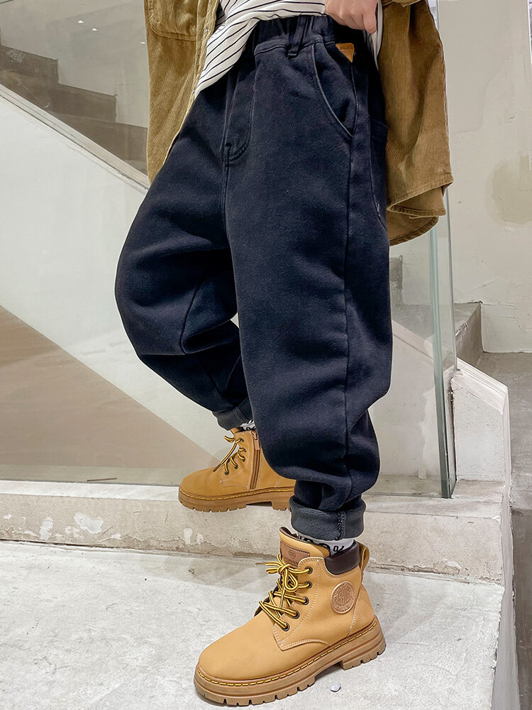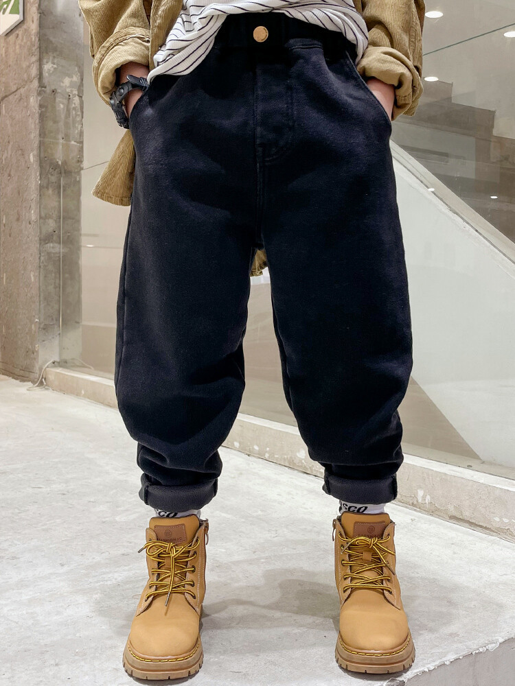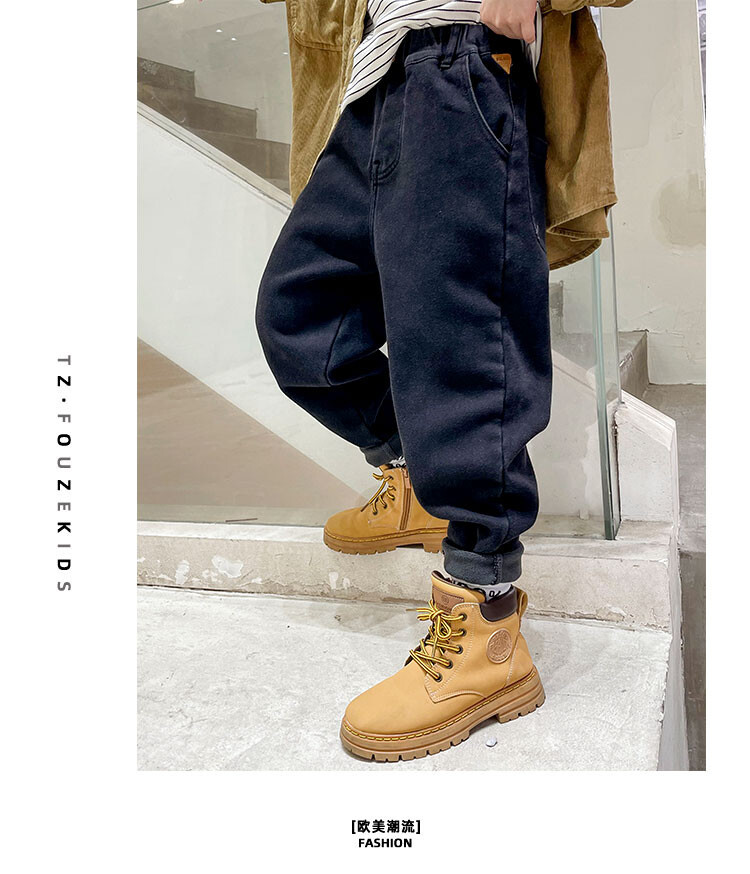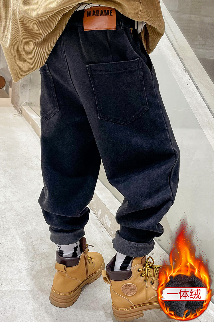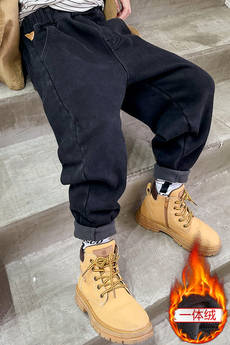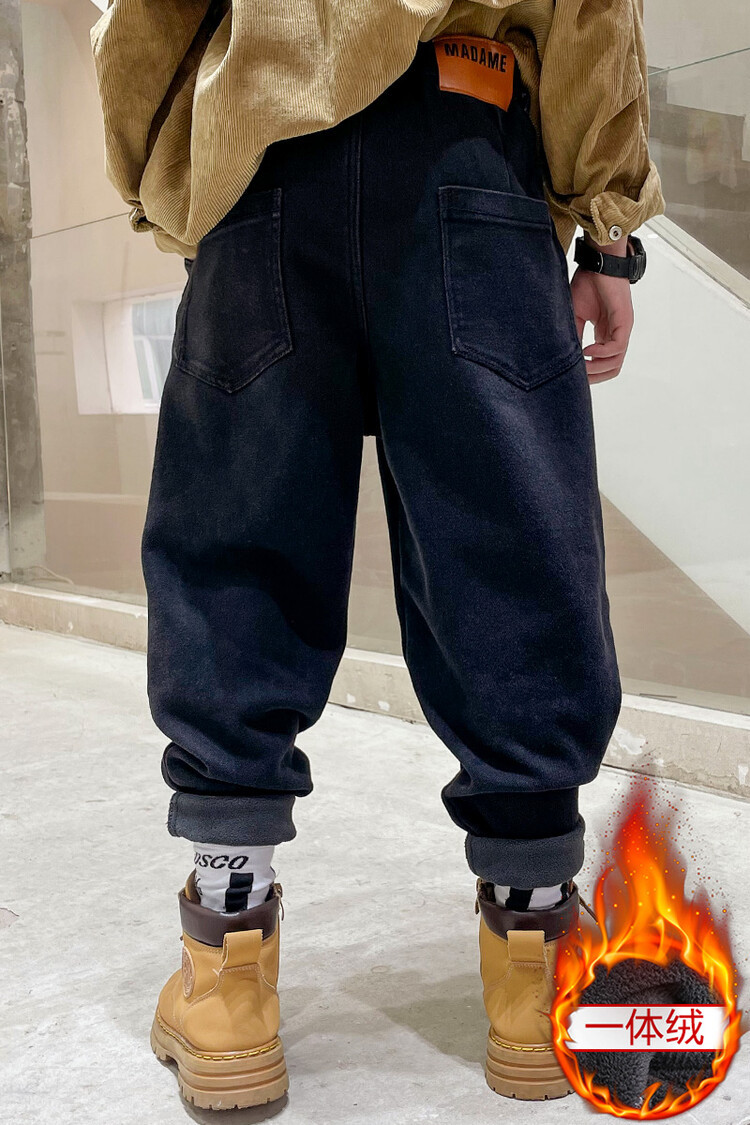 童装牛仔裤加绒加厚中大童男童新款一体绒儿童宽松裤子冬款牛仔裤