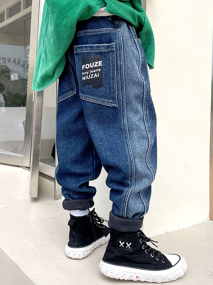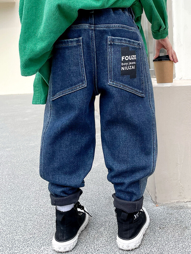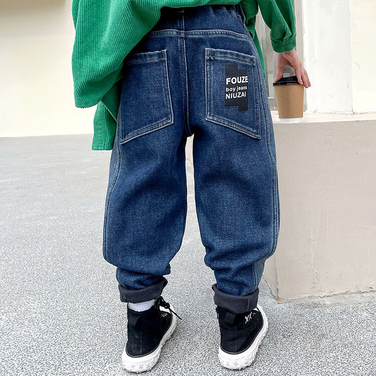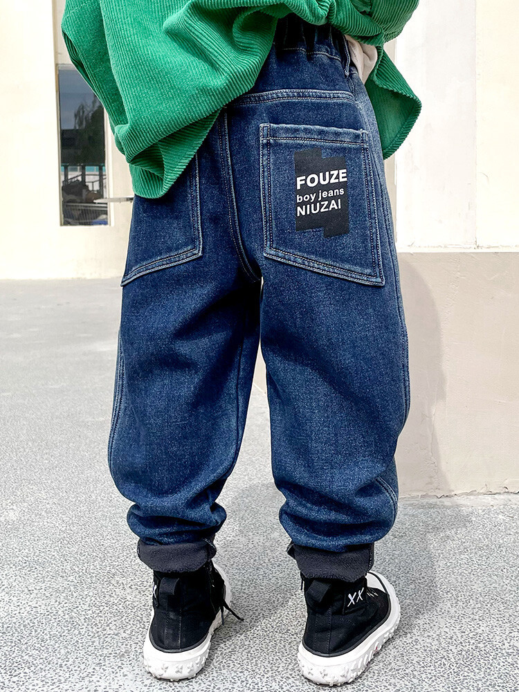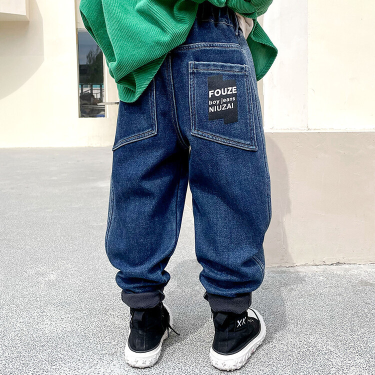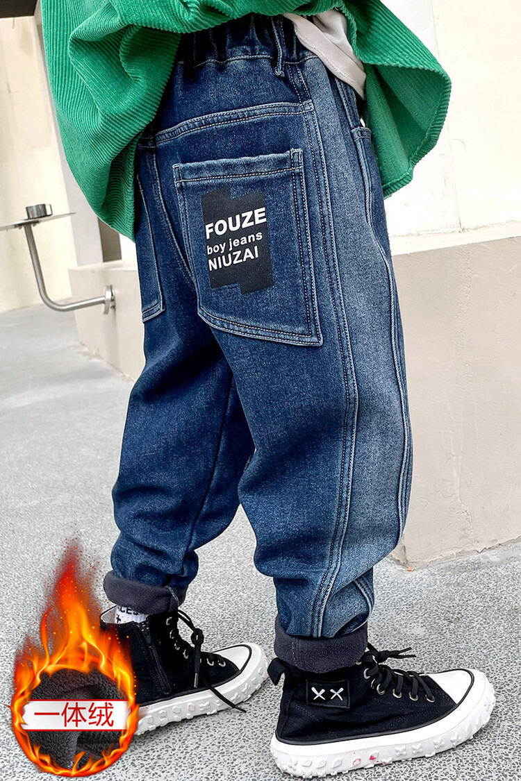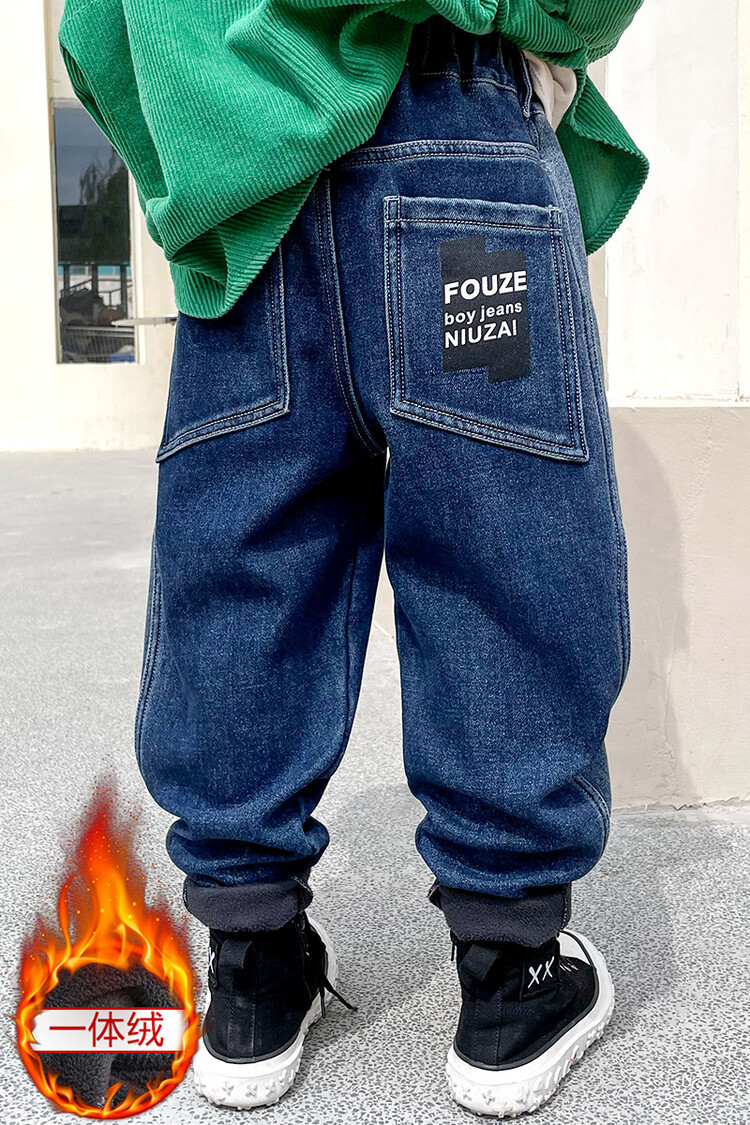 童装加绒加厚长裤休闲一体绒儿童宽松裤子男童中大童冬款牛仔裤潮