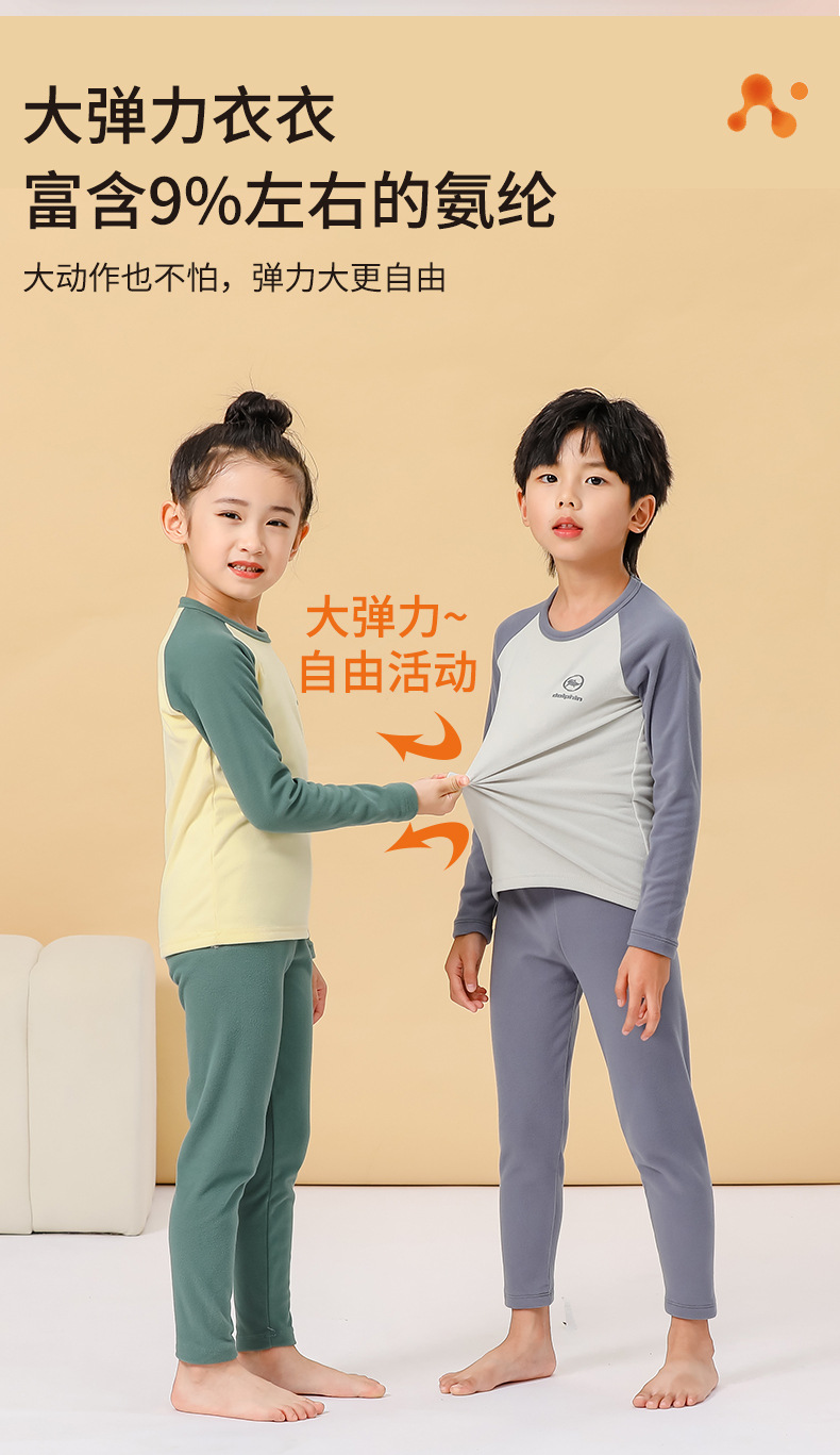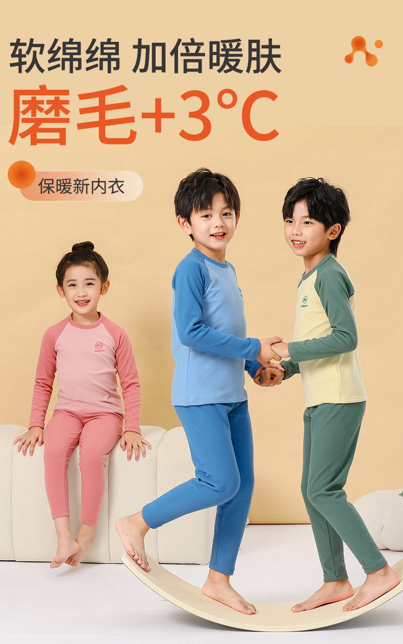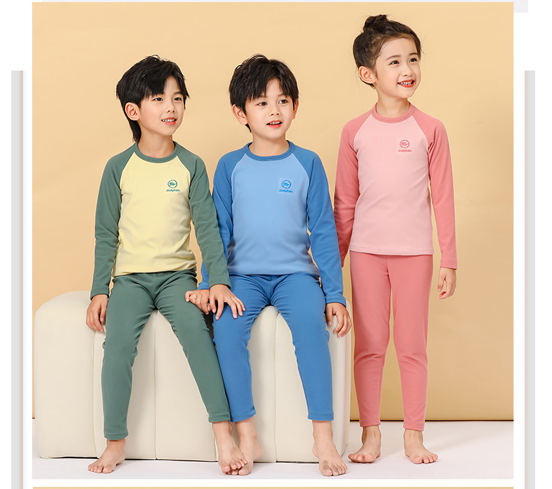 儿童内衣套装双面磨毛秋冬新款男女童保暖秋衣秋裤中大童暖绒打底
