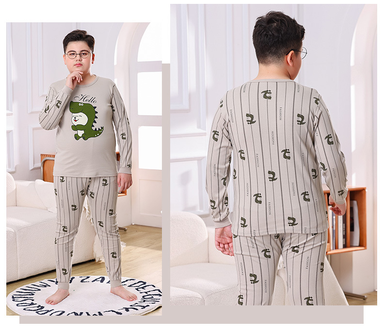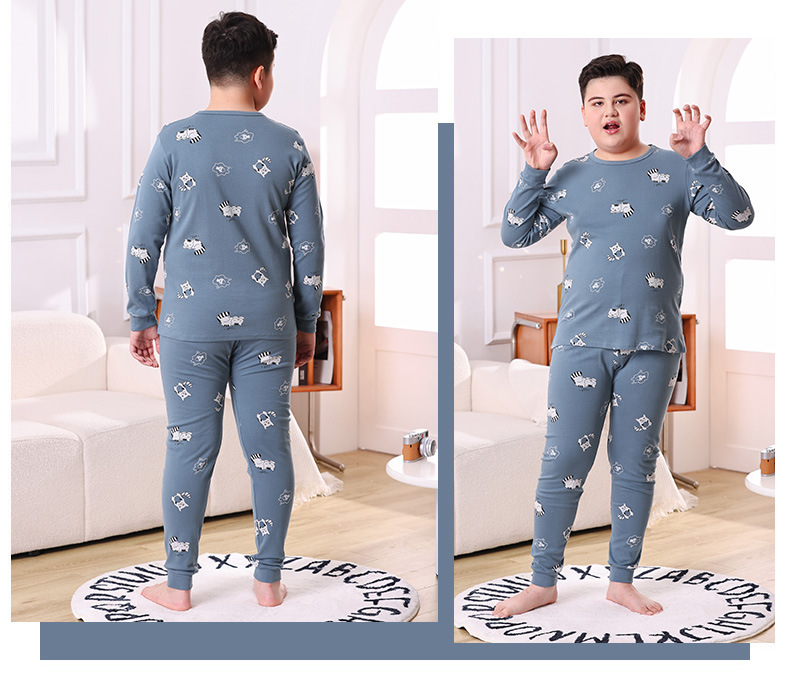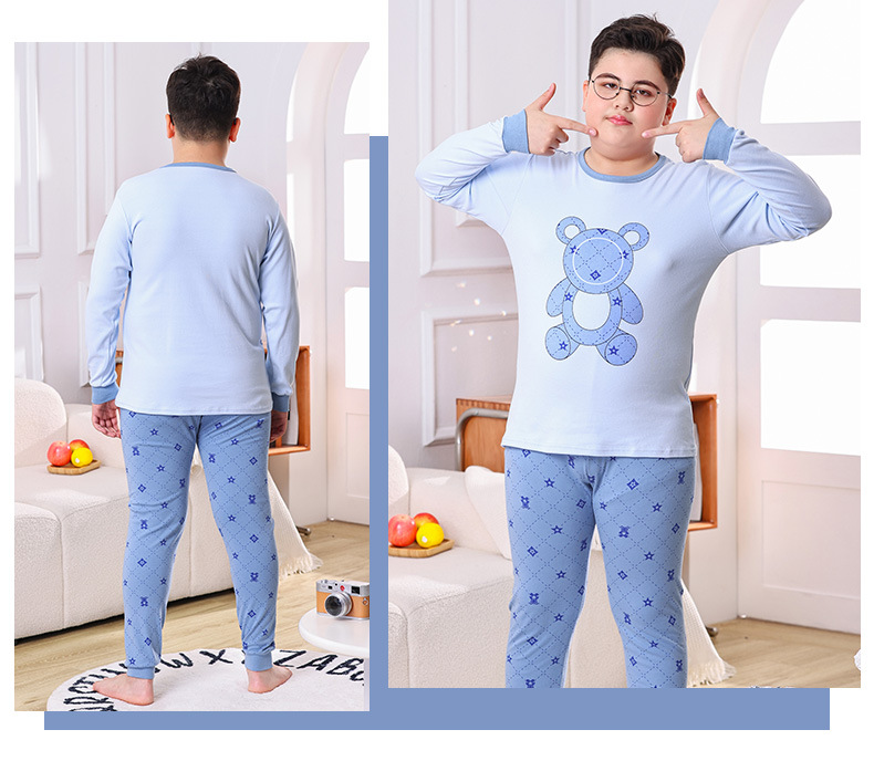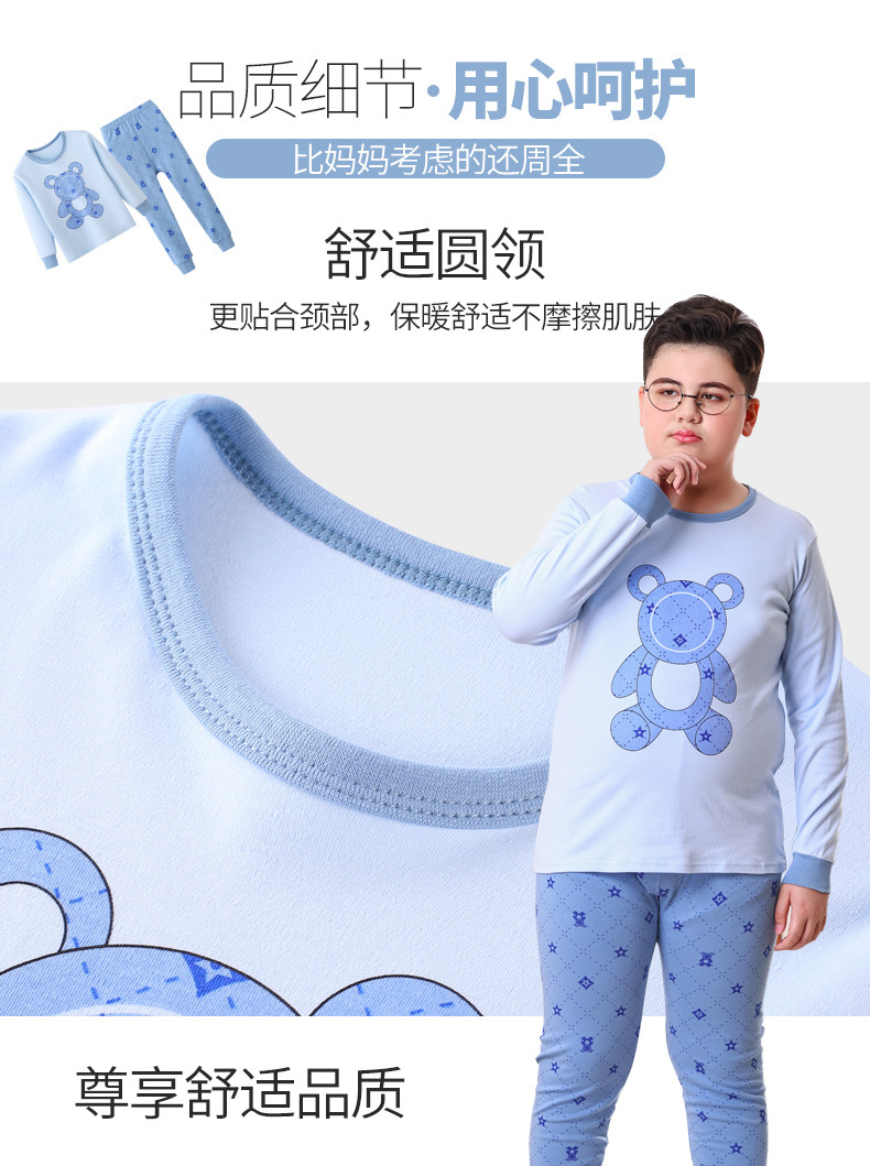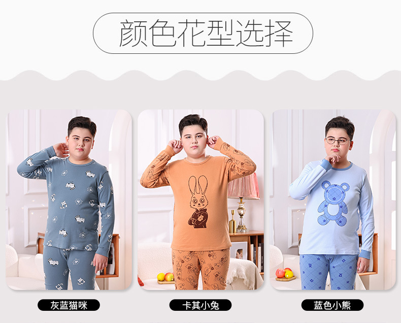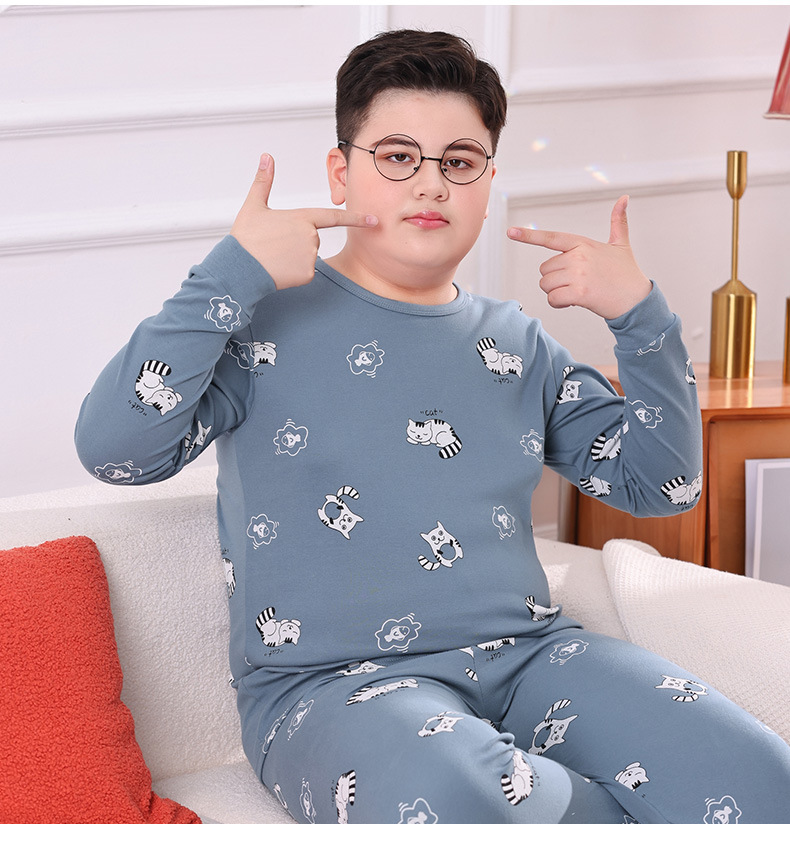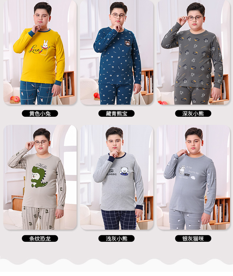 胖童秋衣秋裤套装棉儿童胖男孩子中大童内衣加肥加大宽松版春秋款
