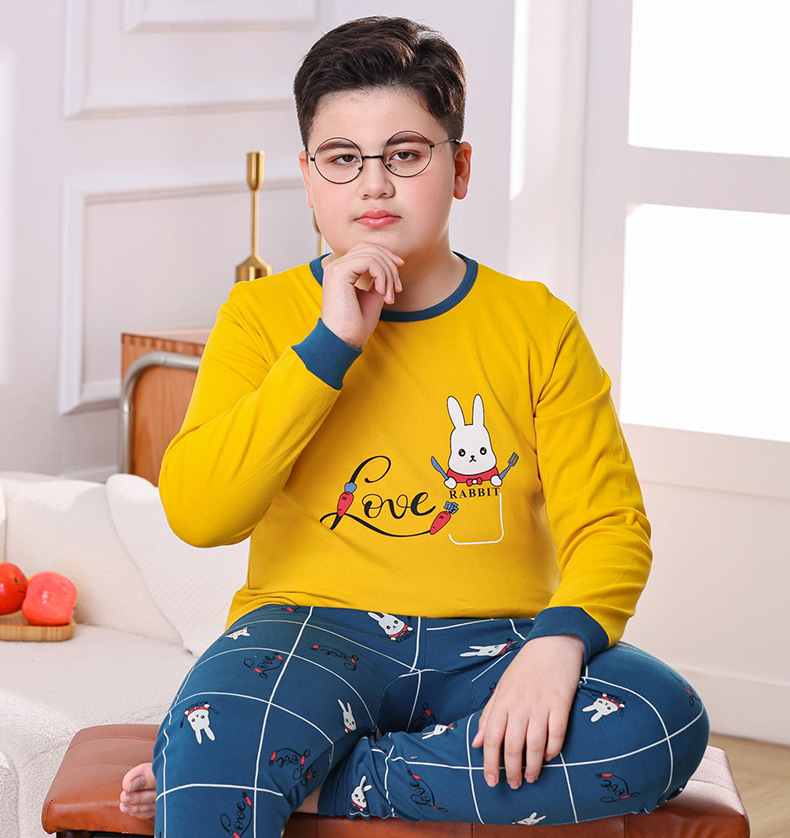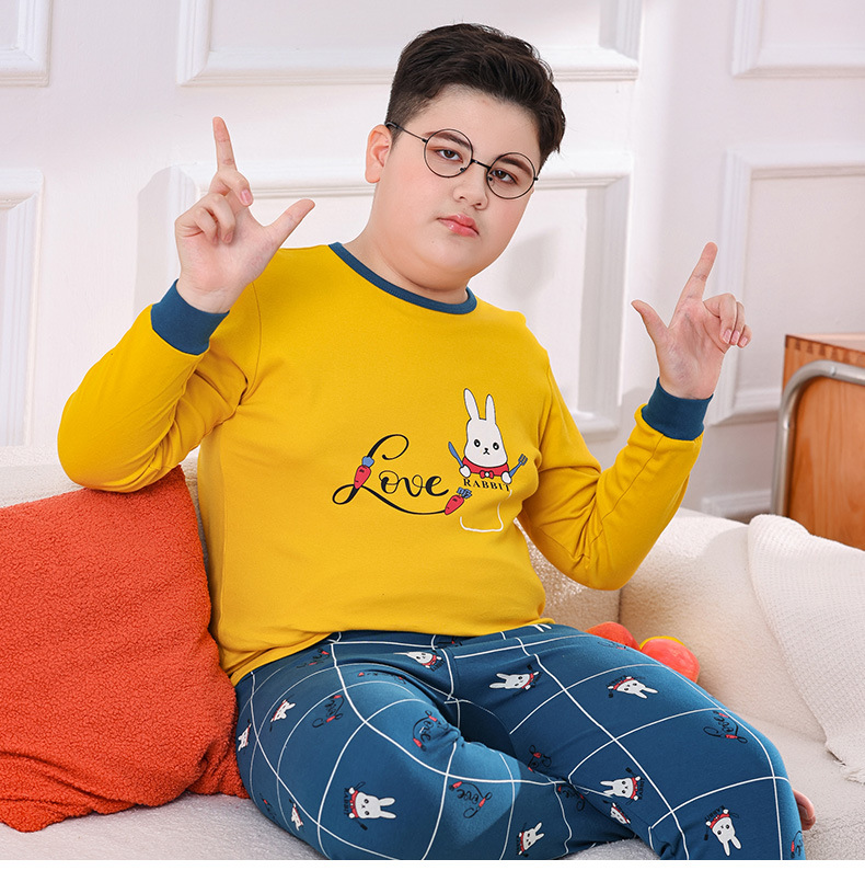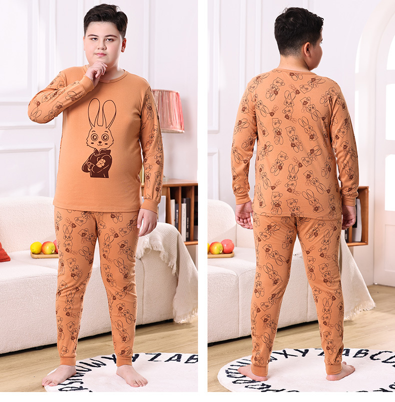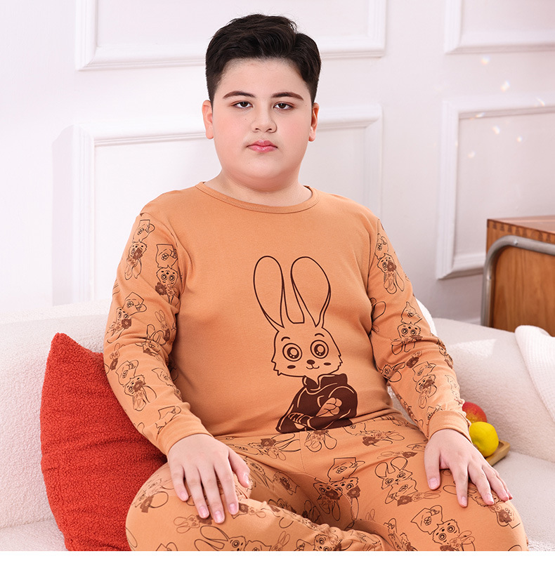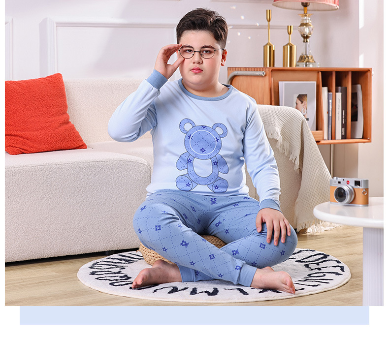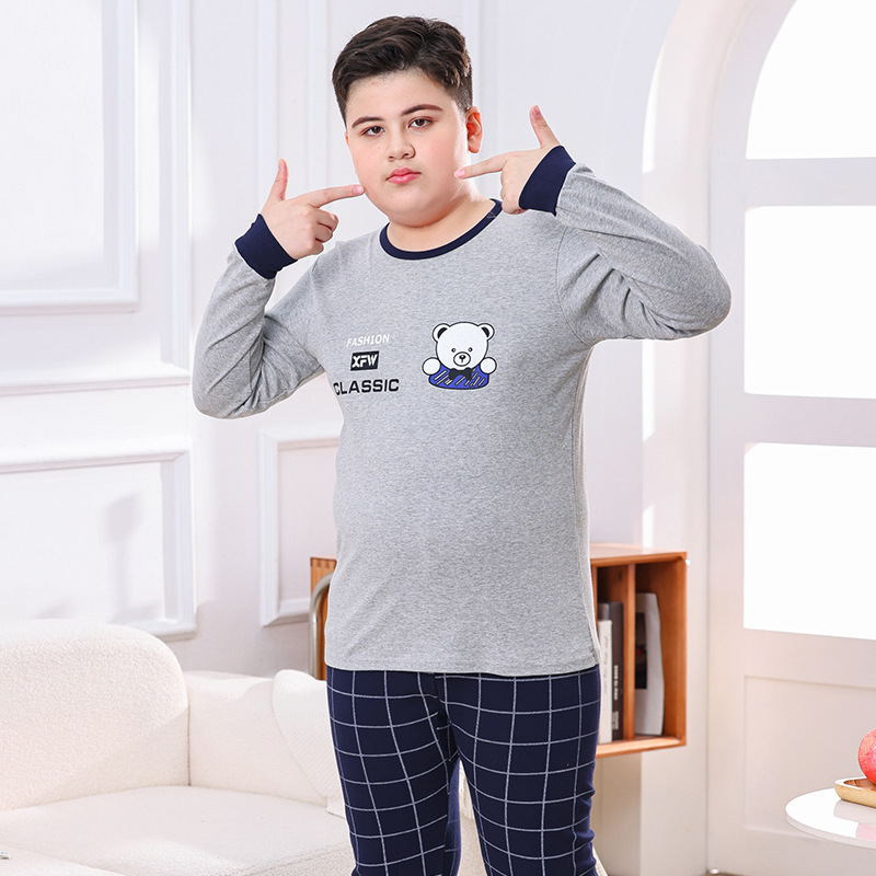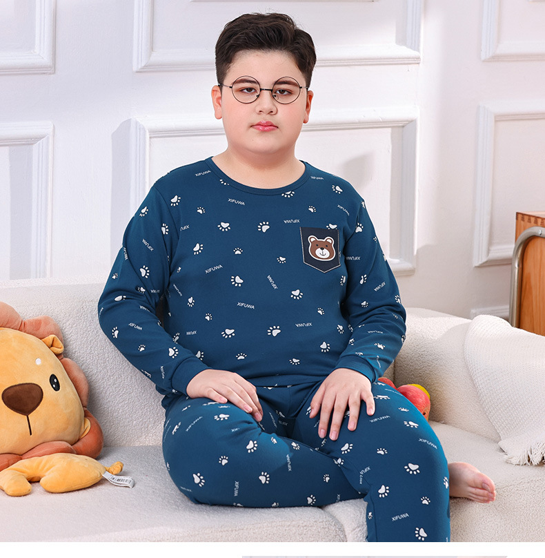胖童秋衣秋裤套装棉儿童胖男孩子中大童内衣加肥加大宽松版春秋款