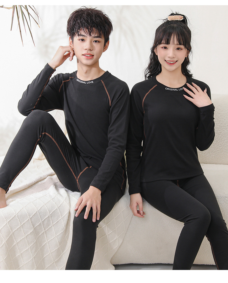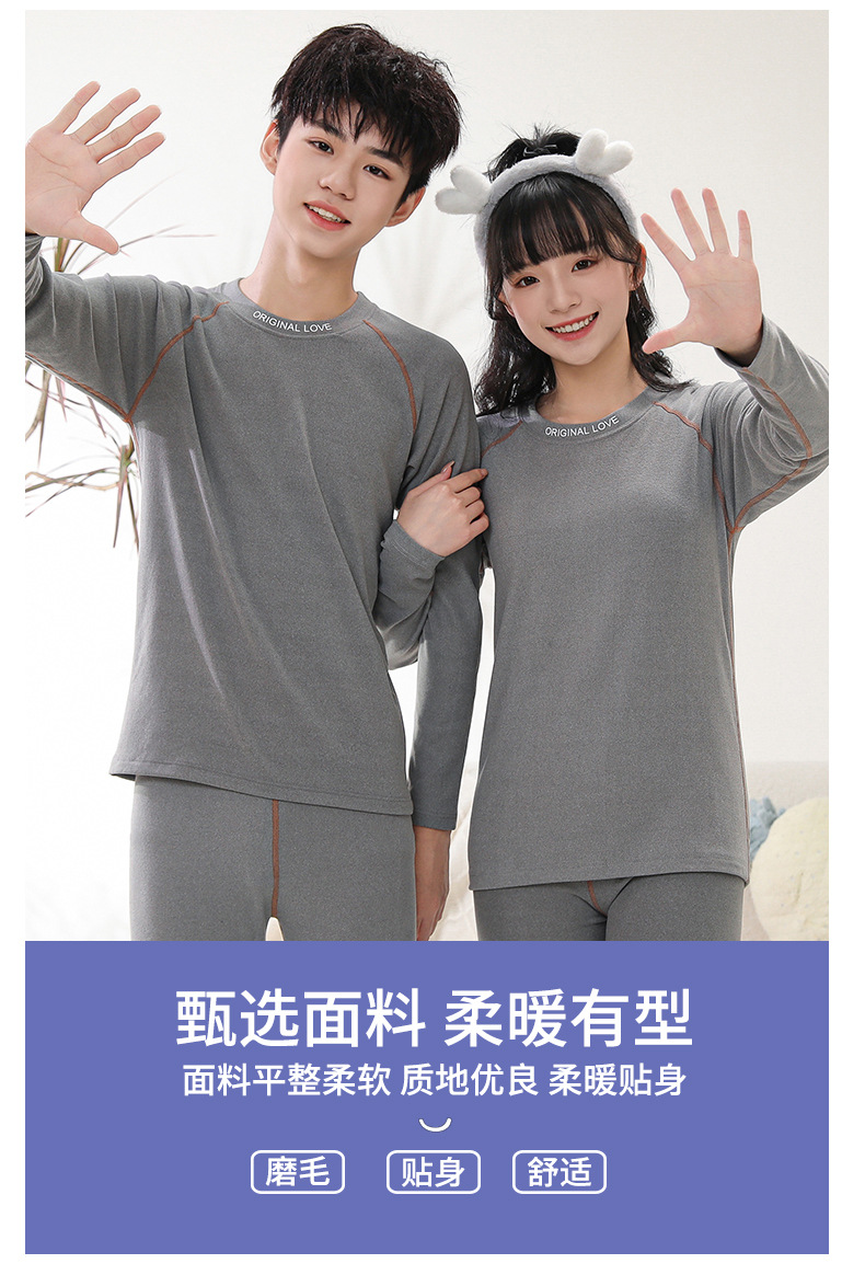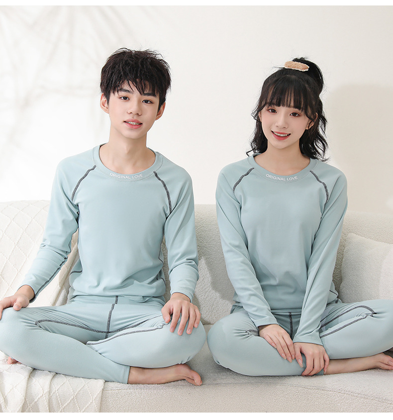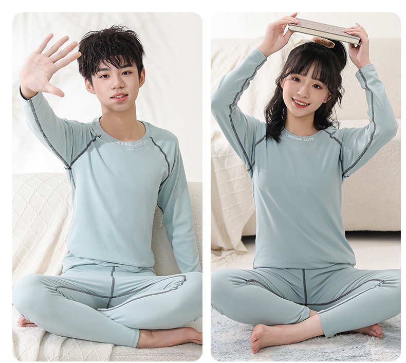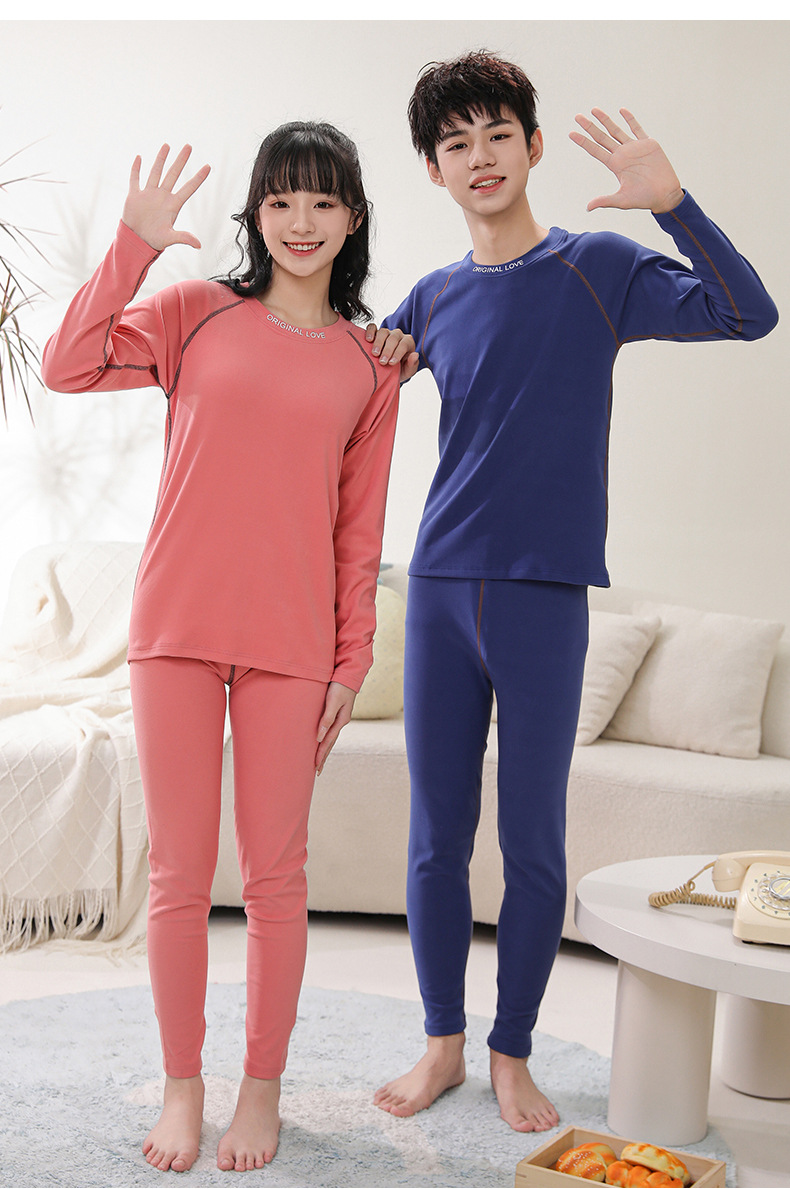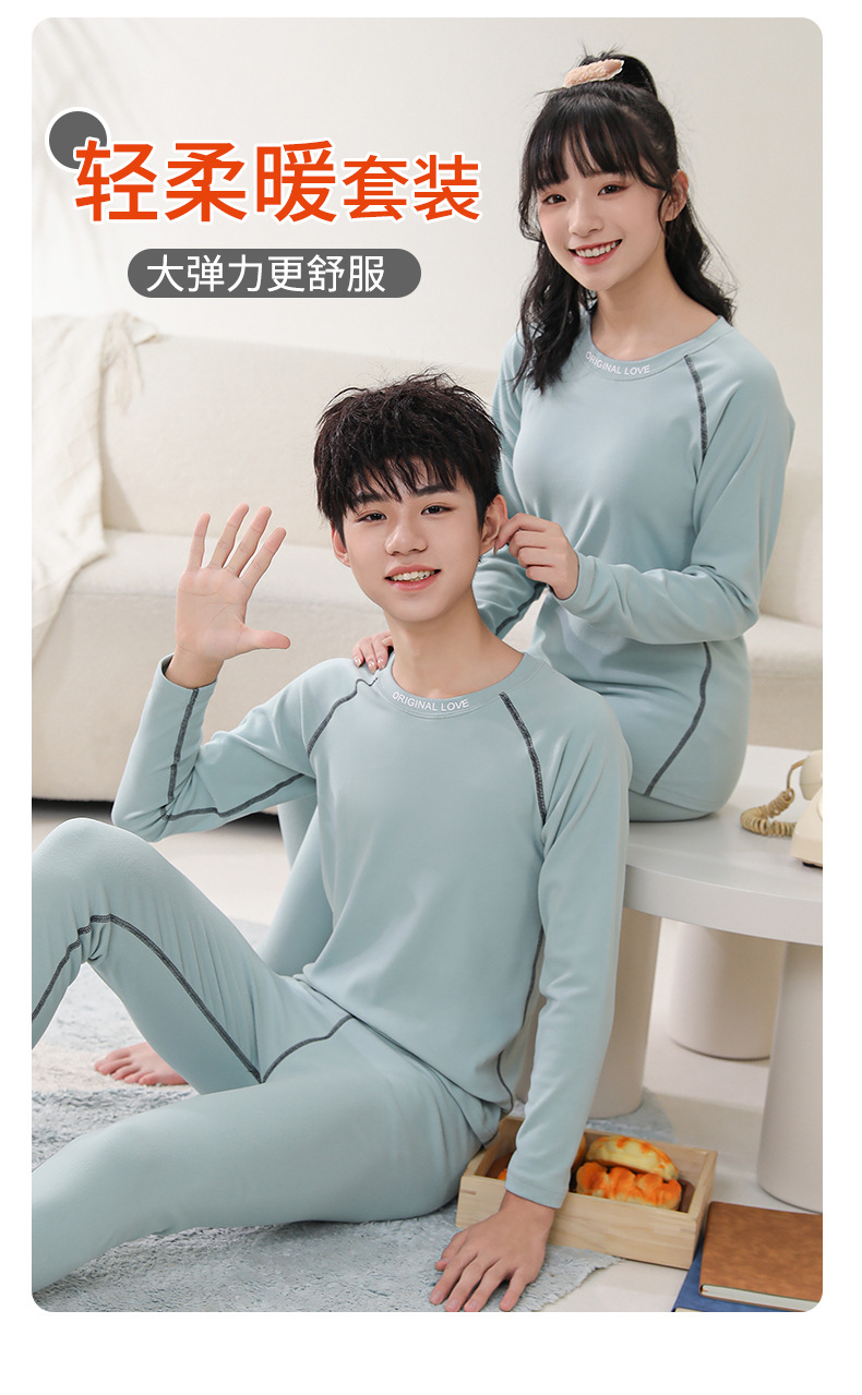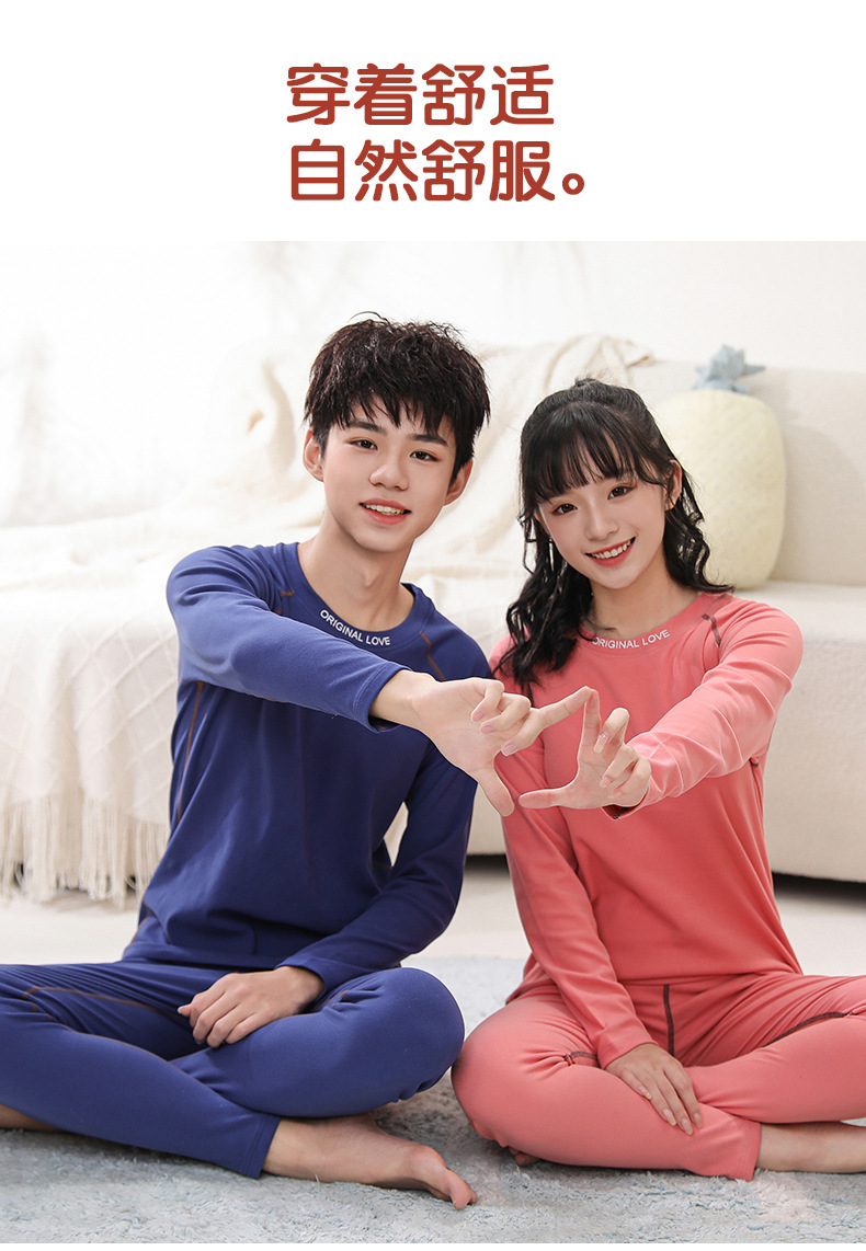 秋冬季青少年保暖内衣套装双面磨毛儿童秋衣秋裤洋气男女童打底衫
