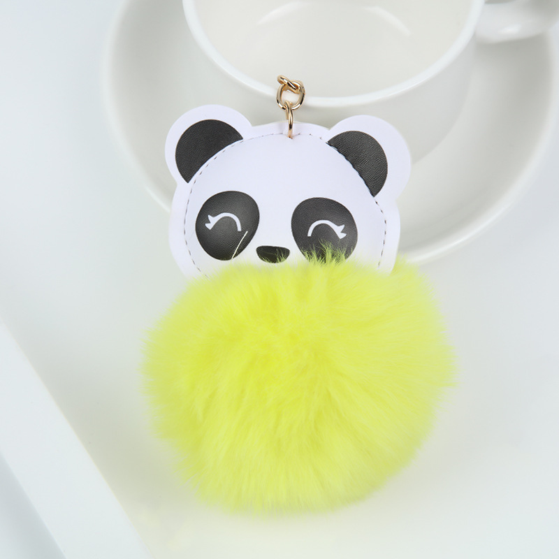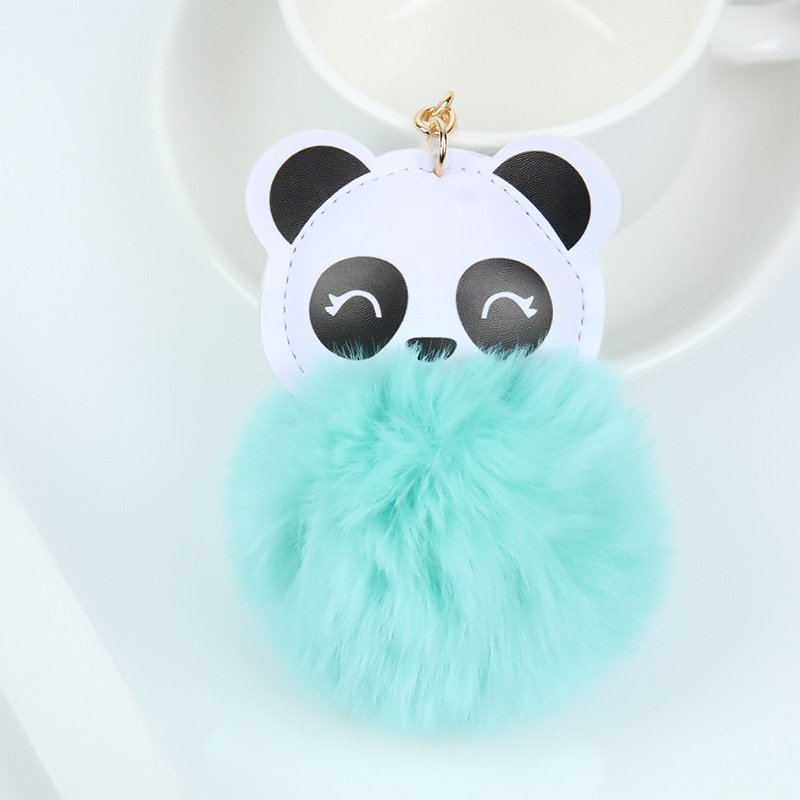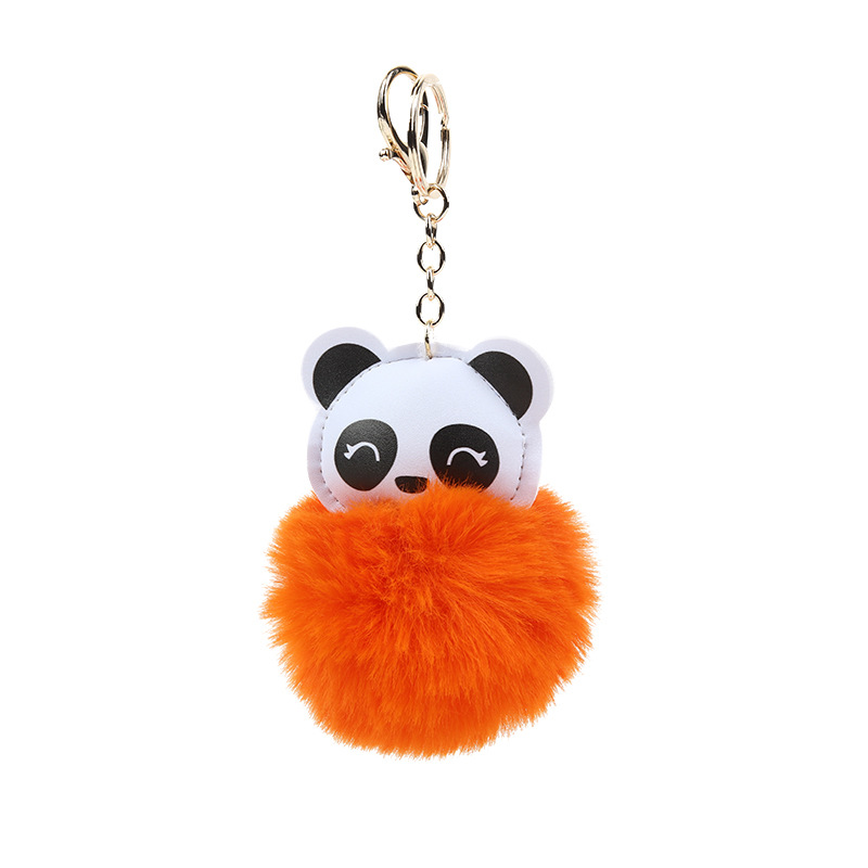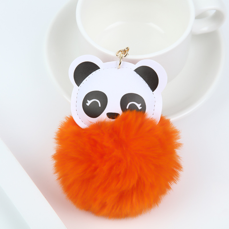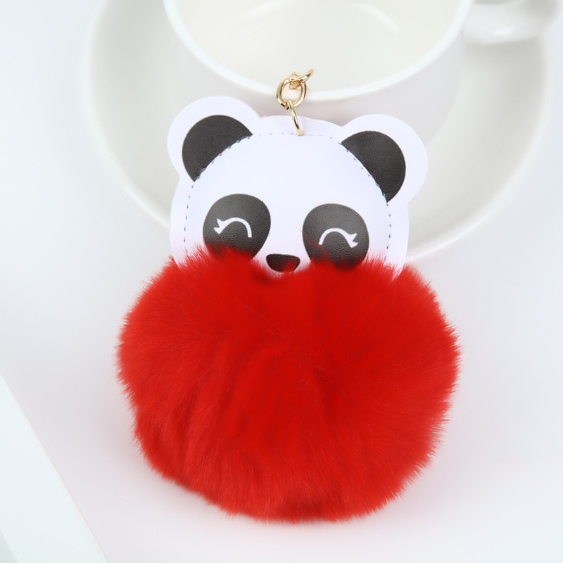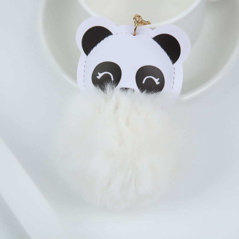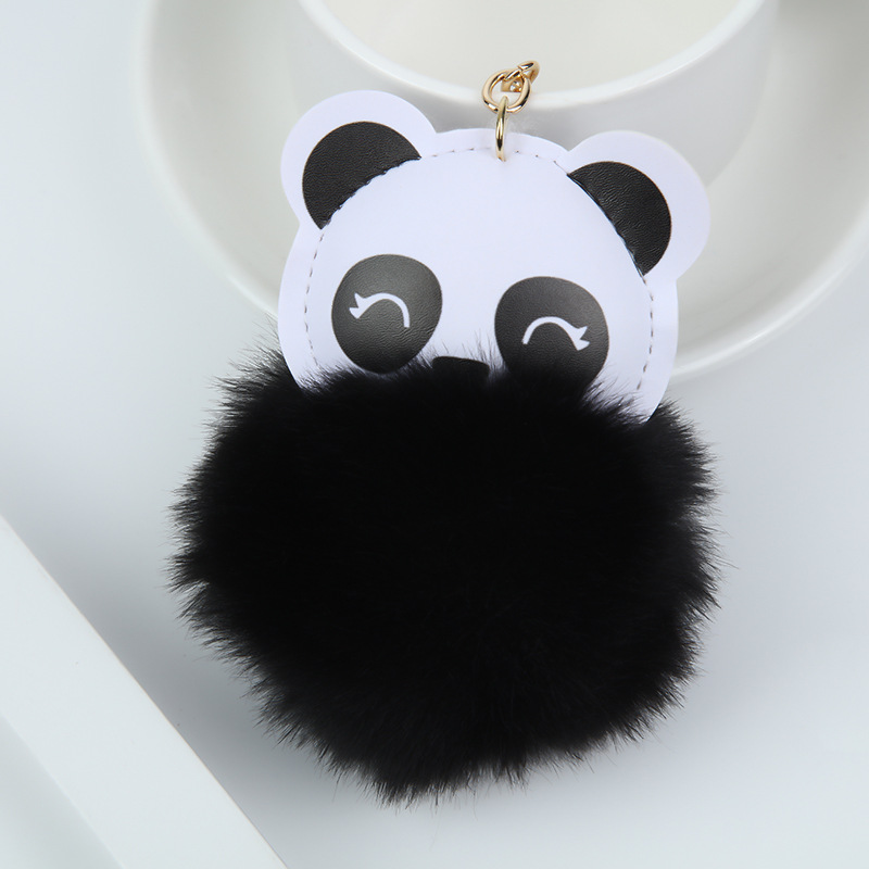 可爱熊猫毛球钥匙扣女式毛绒包包挂件汽车钥匙扣卡通毛球挂坠批发