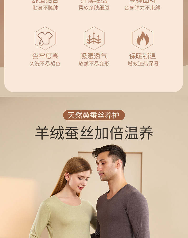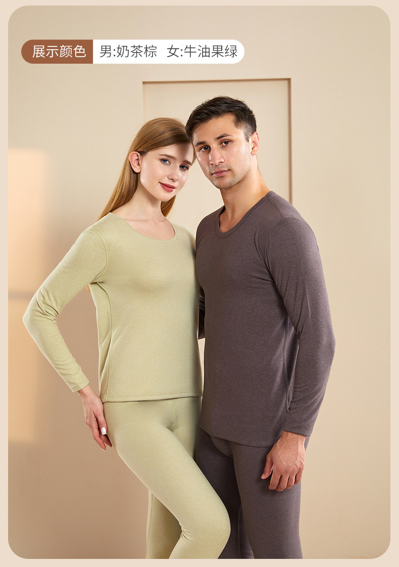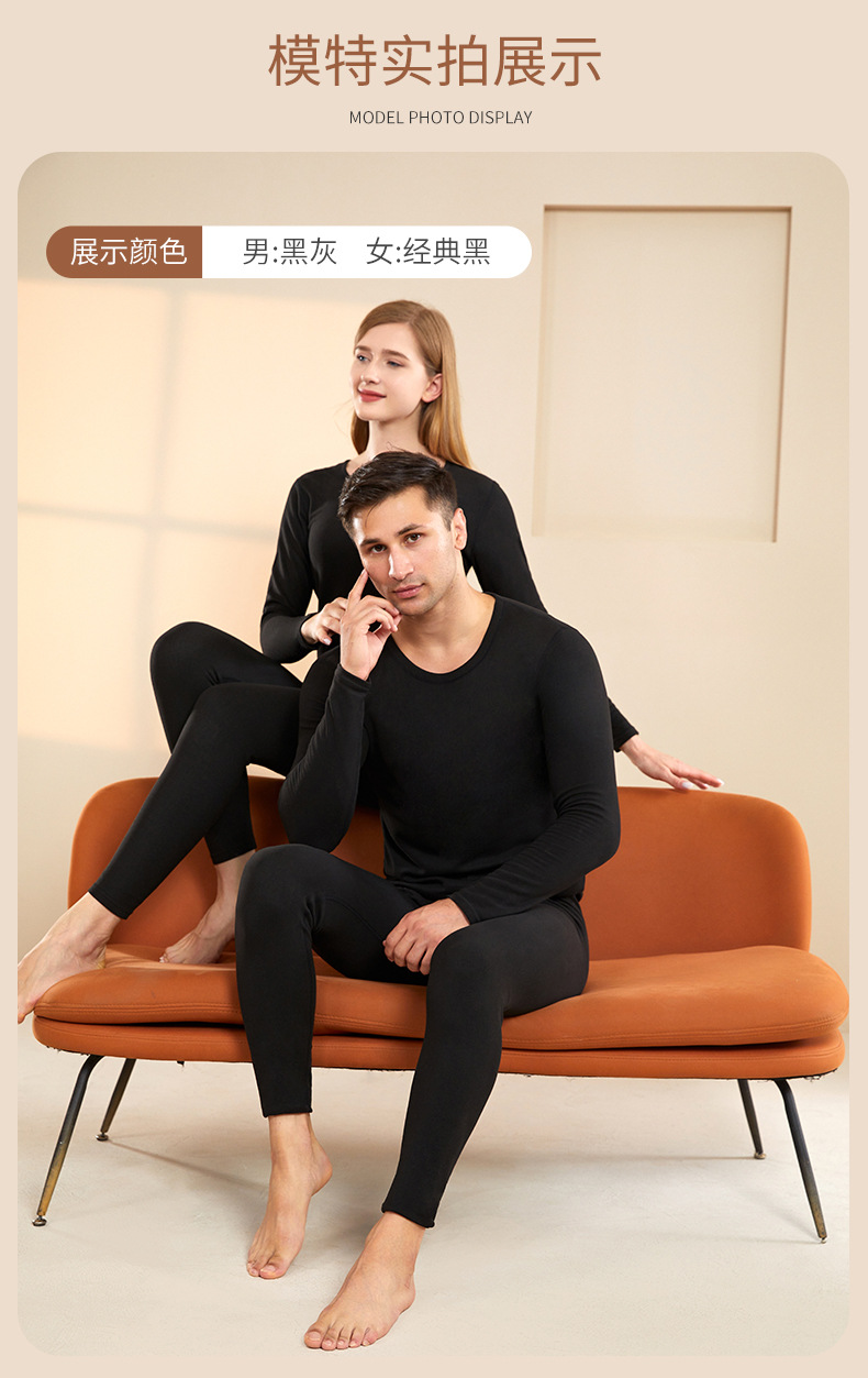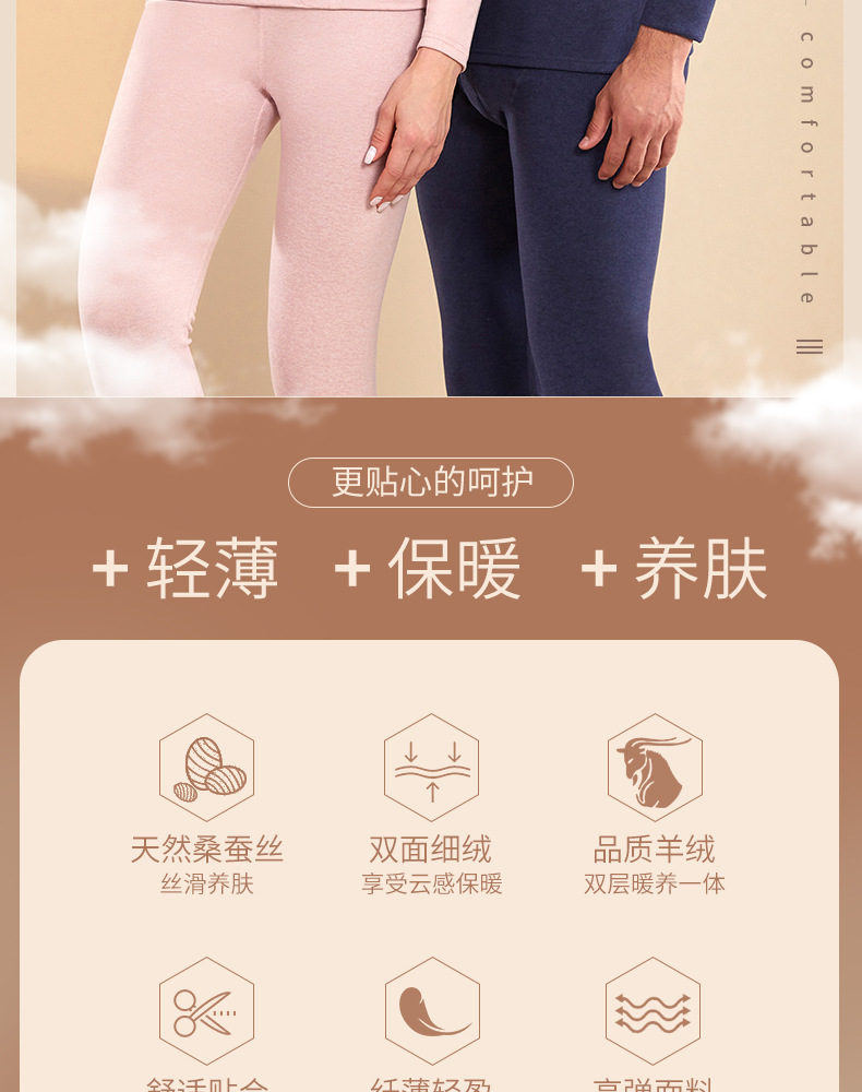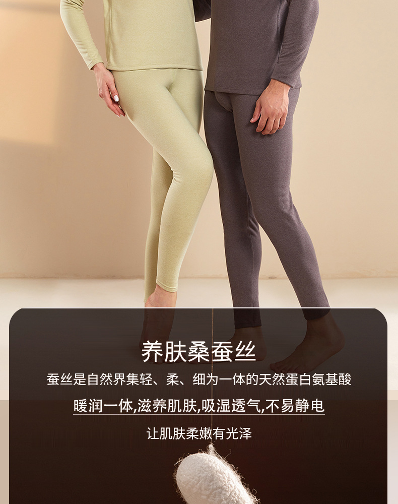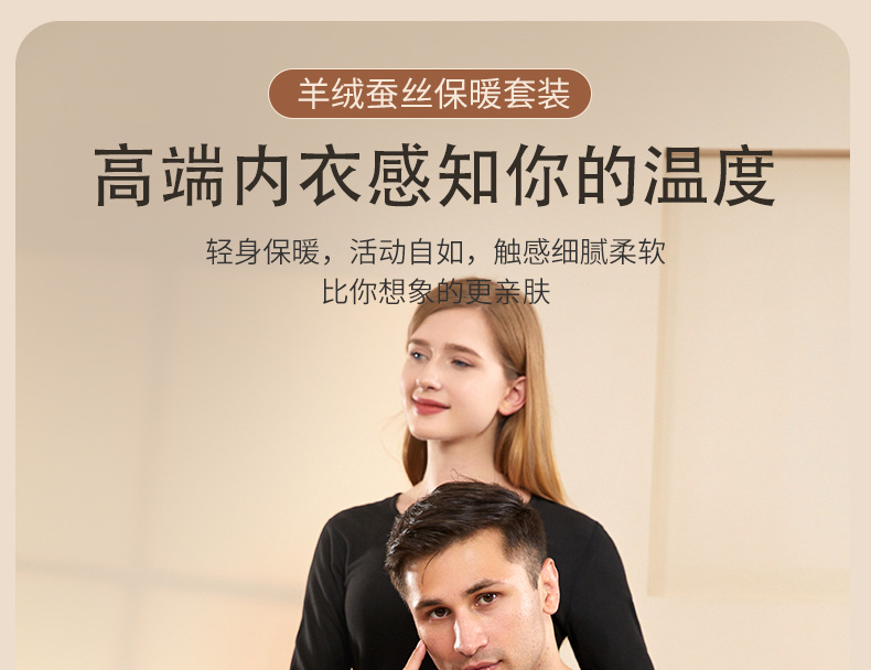 保暖内衣男女士双面磨毛情侣羊绒桑蚕丝打底衫秋衣秋裤套装秋冬款