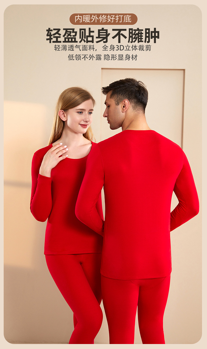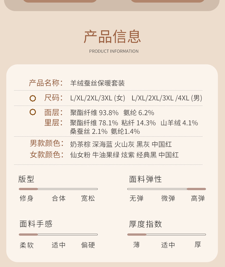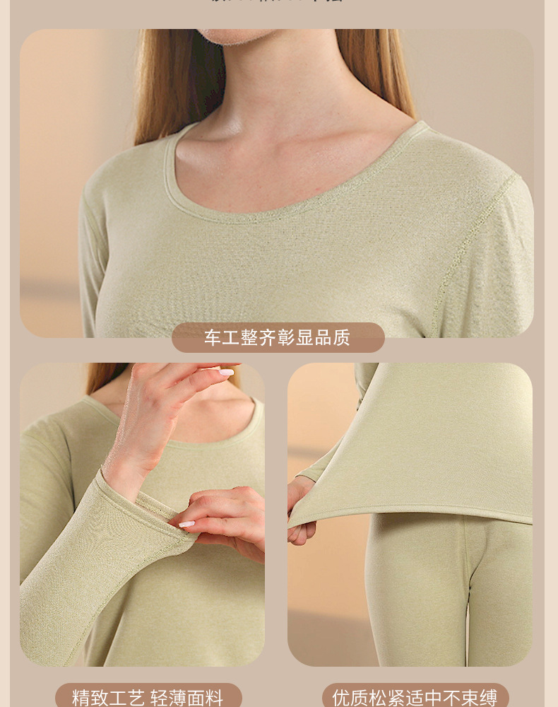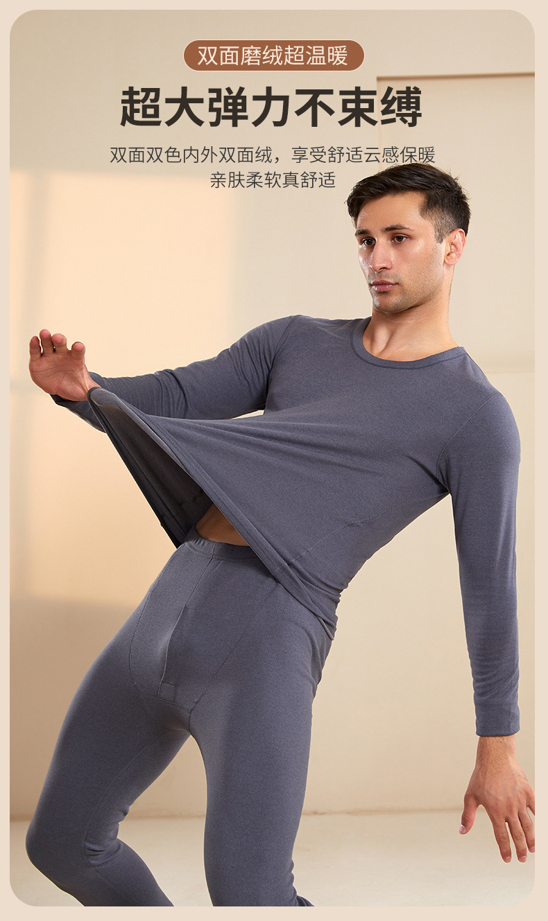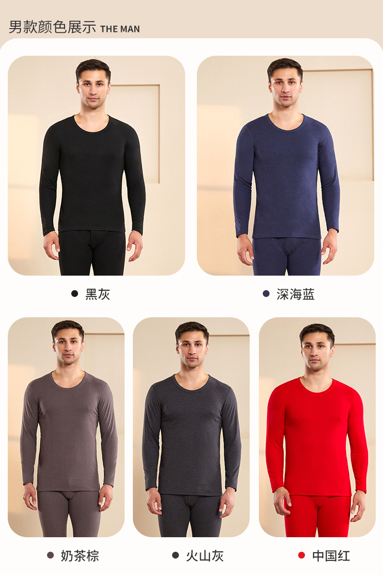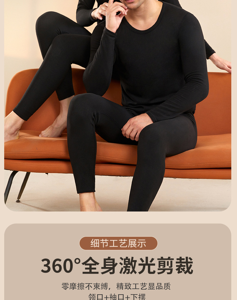 保暖内衣男女士双面磨毛情侣羊绒桑蚕丝打底衫秋衣秋裤套装秋冬款